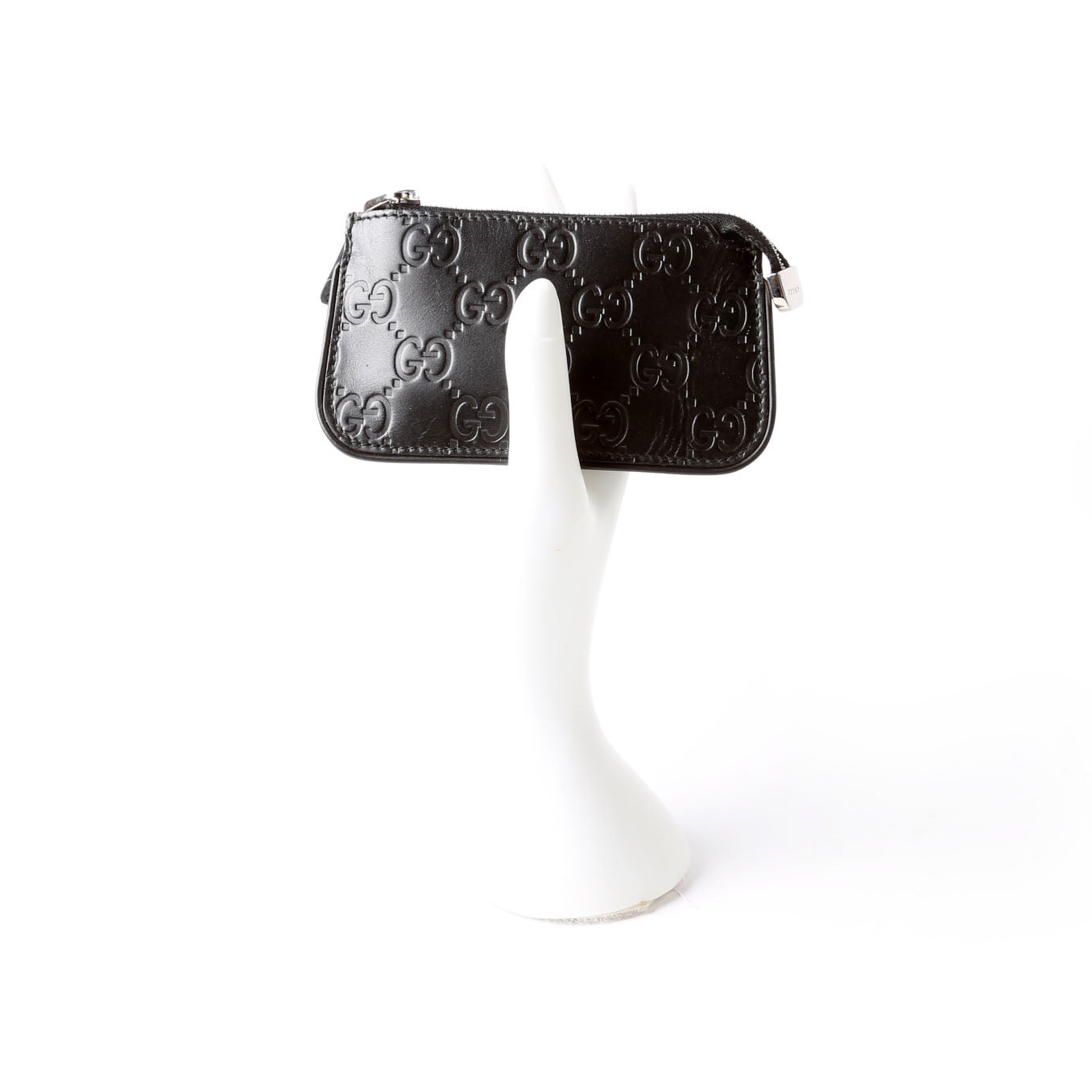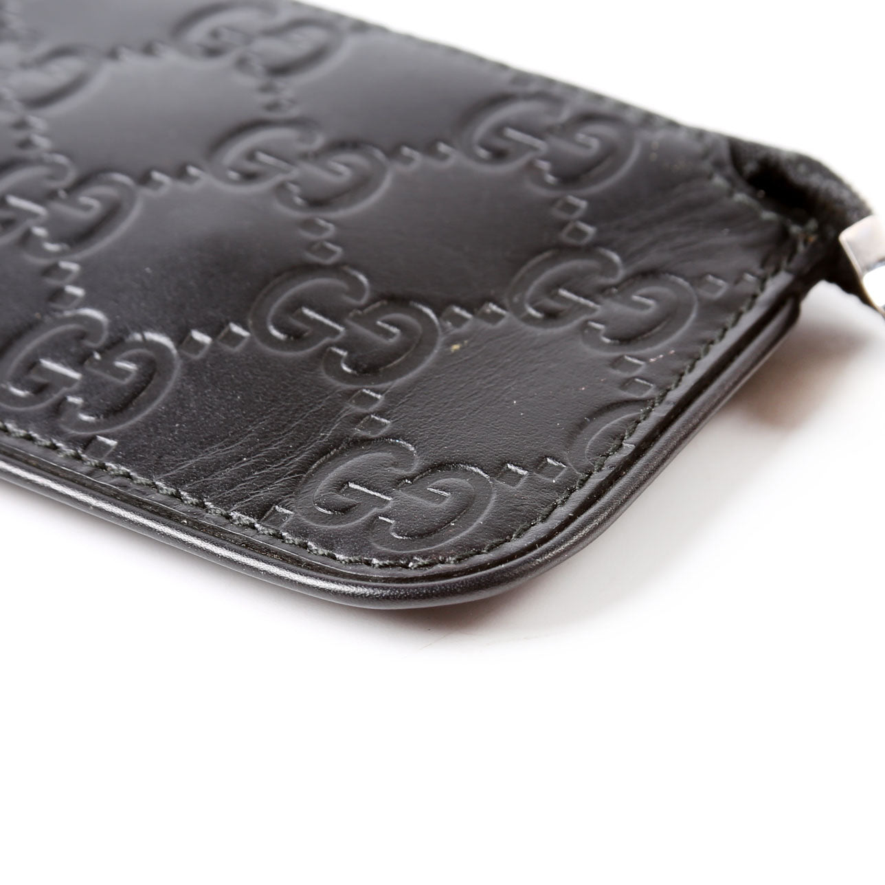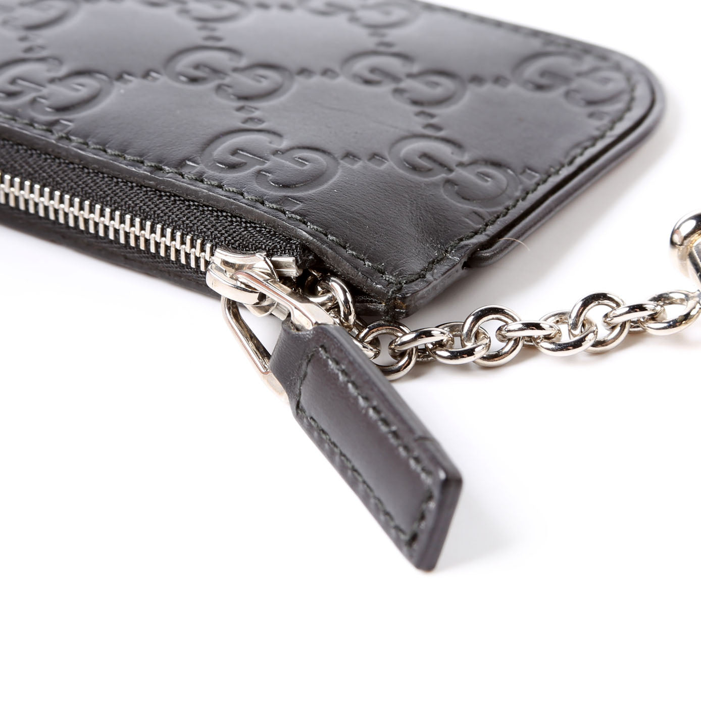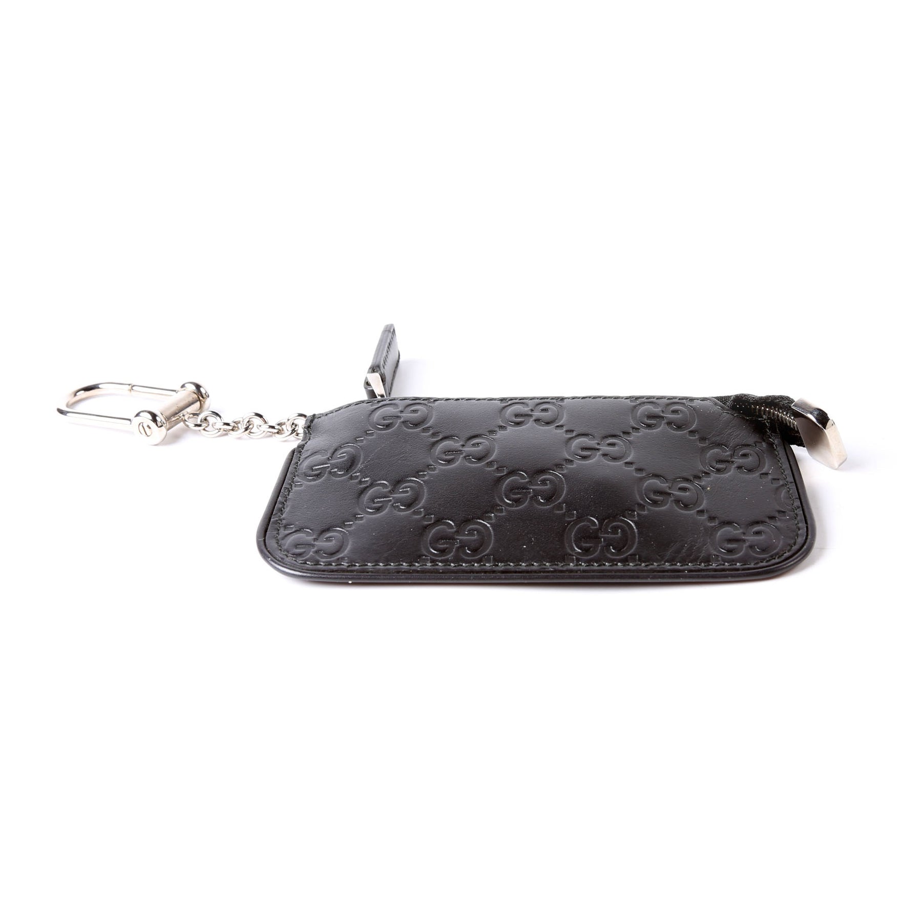 This pre-owned Gucci Key Pouch is guaranteed 100% authentic. The exterior is in the classic Gucci Guccissima leather.