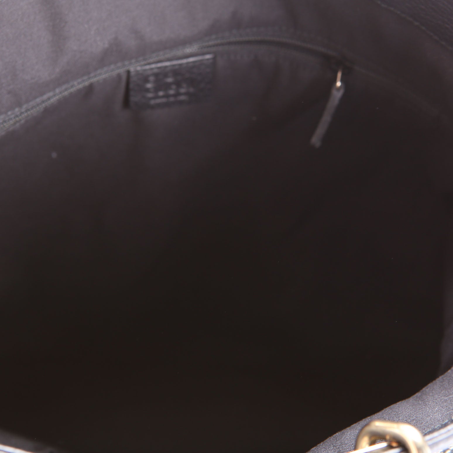 Interior: The interior is free from wear. It features one open pocket, and one zip closure pocket.