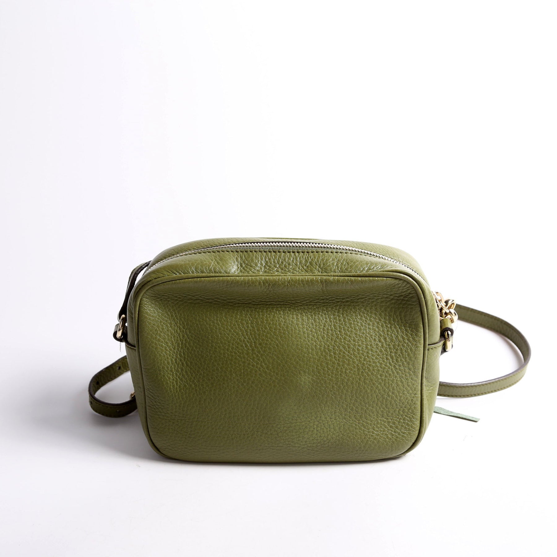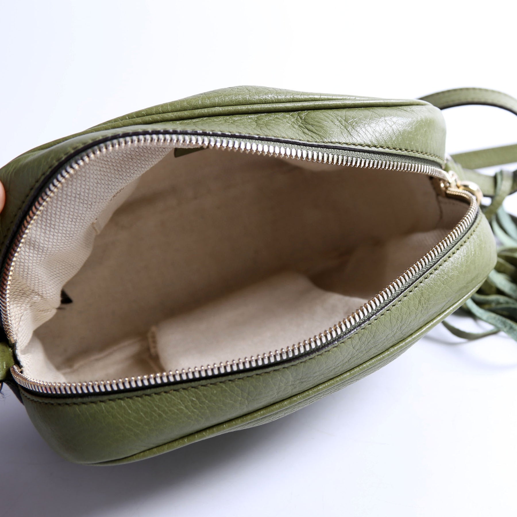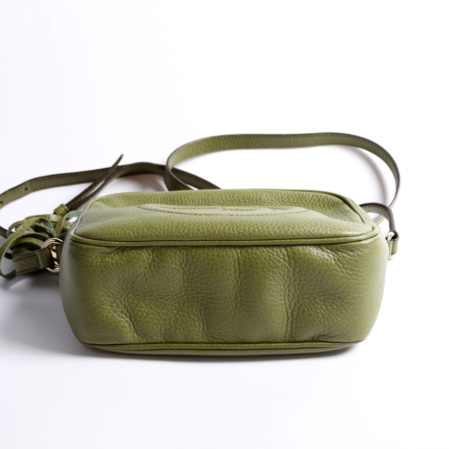 This pre-owned Gucci Soho Disco Crossbody is guaranteed 100% authentic. The exterior is in the classic Gucci Pebble Calfskin Leather.