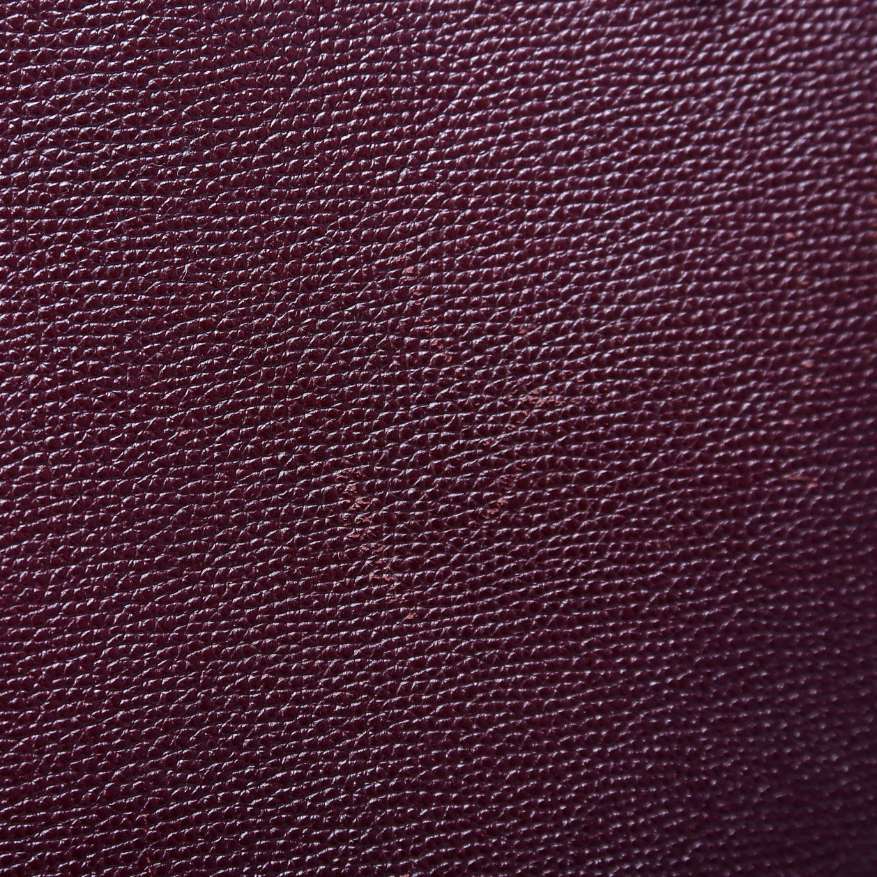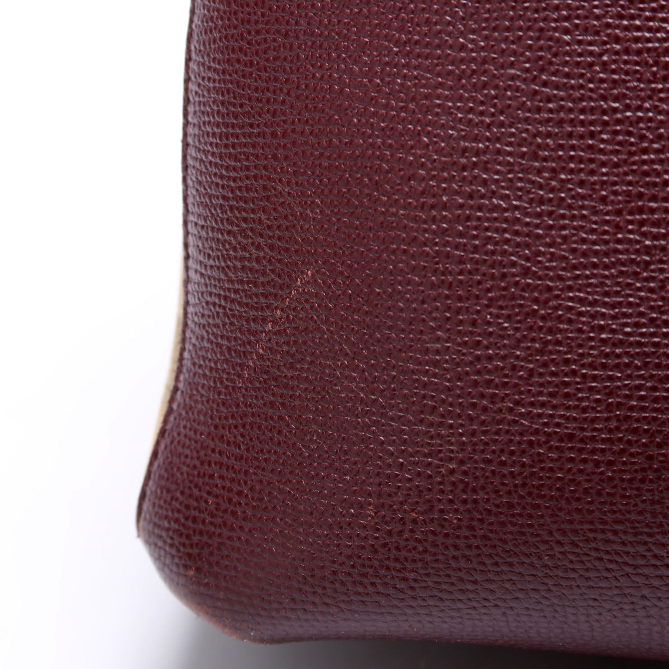 Exterior: The exterior leather shows scuffs and wear throughout. The corners show light wear and rubbing.