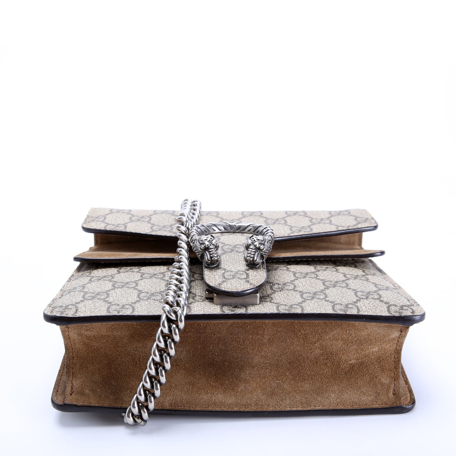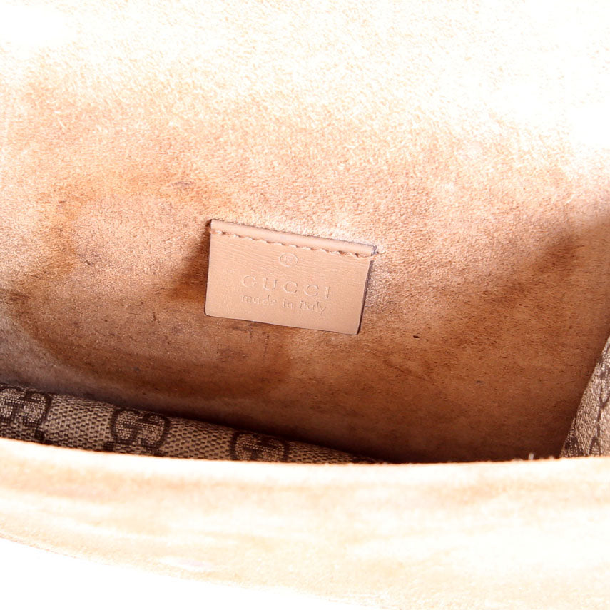 This pre-owned Gucci Dionysus GG Shoulder Mini is guaranteed 100% authentic. The exterior is in the classic Gucci GG Supreme coated canvas.