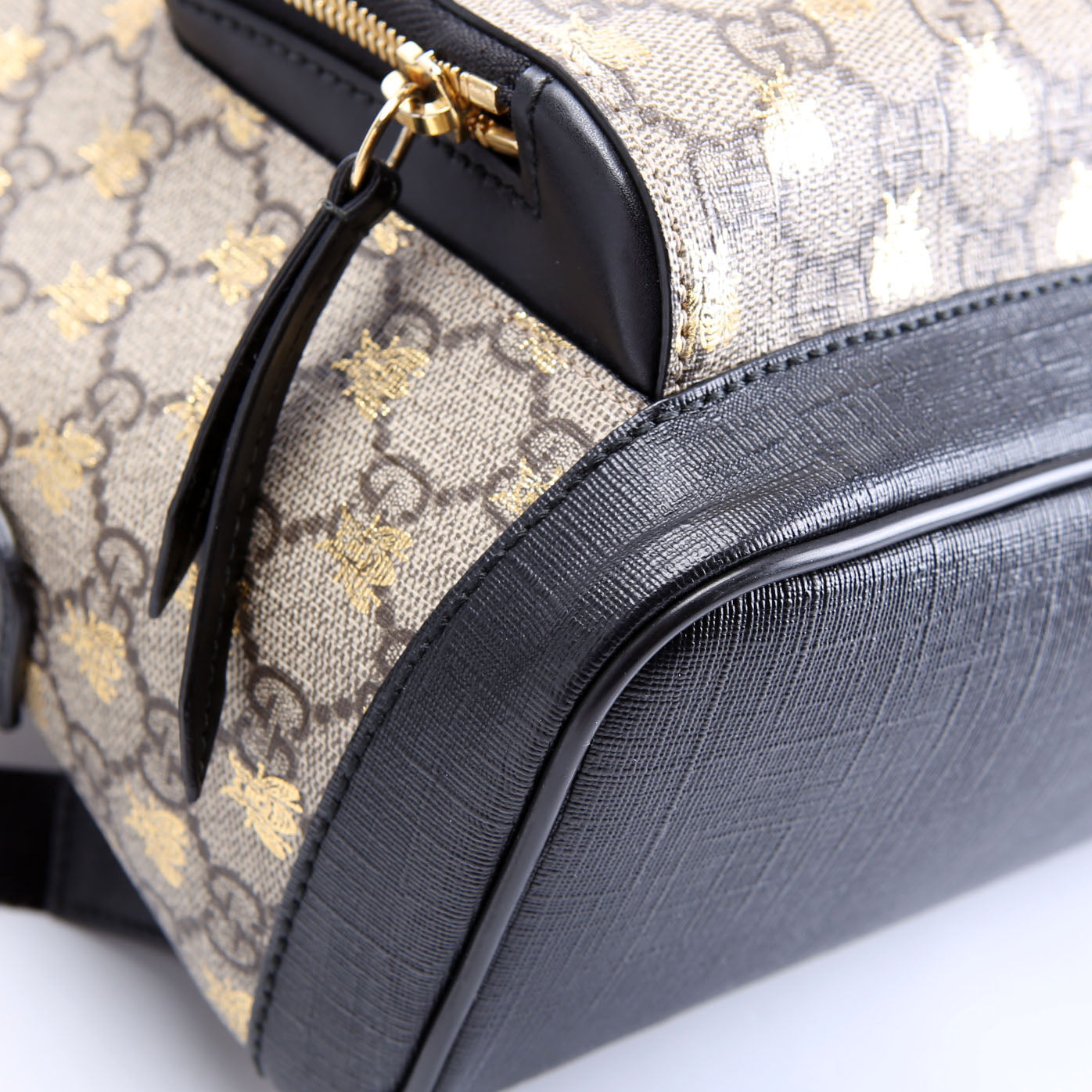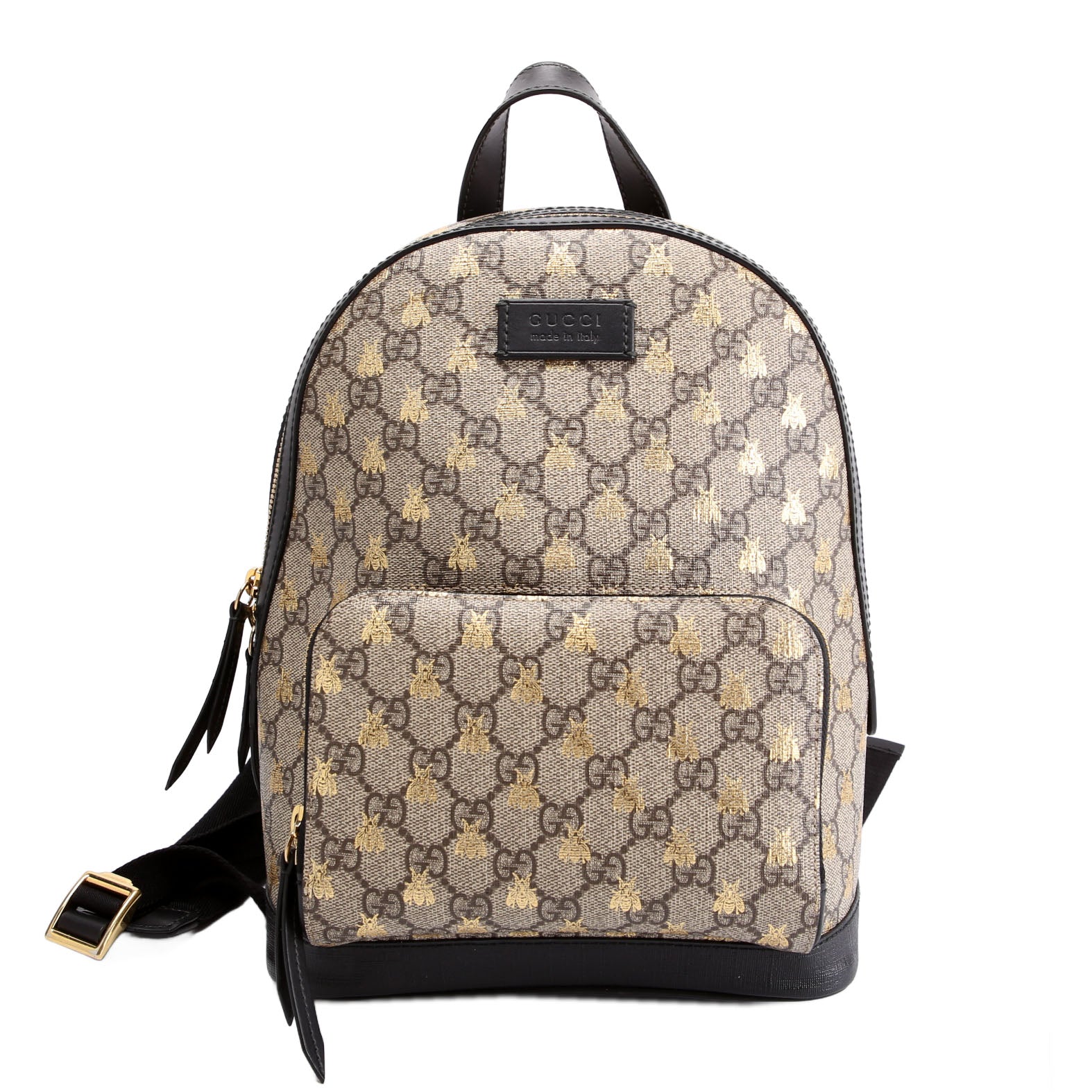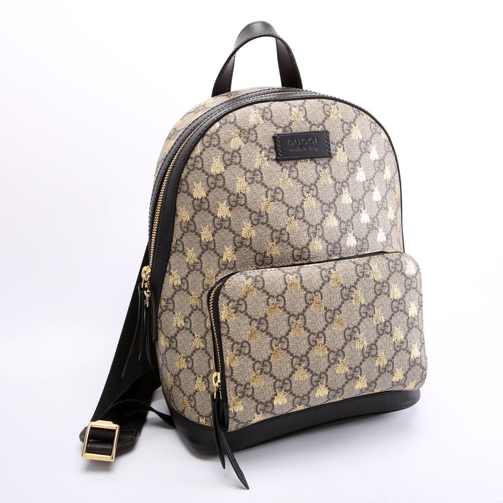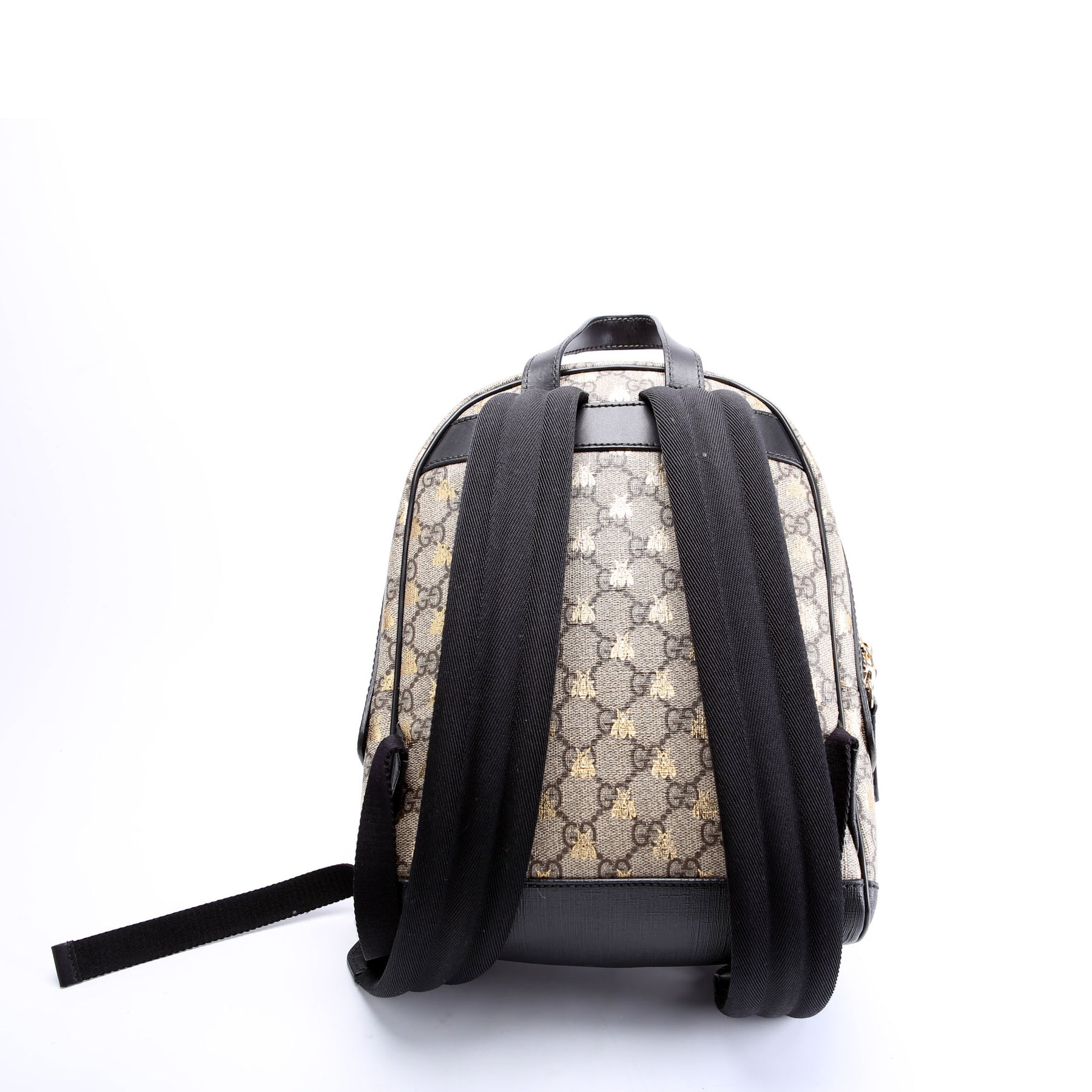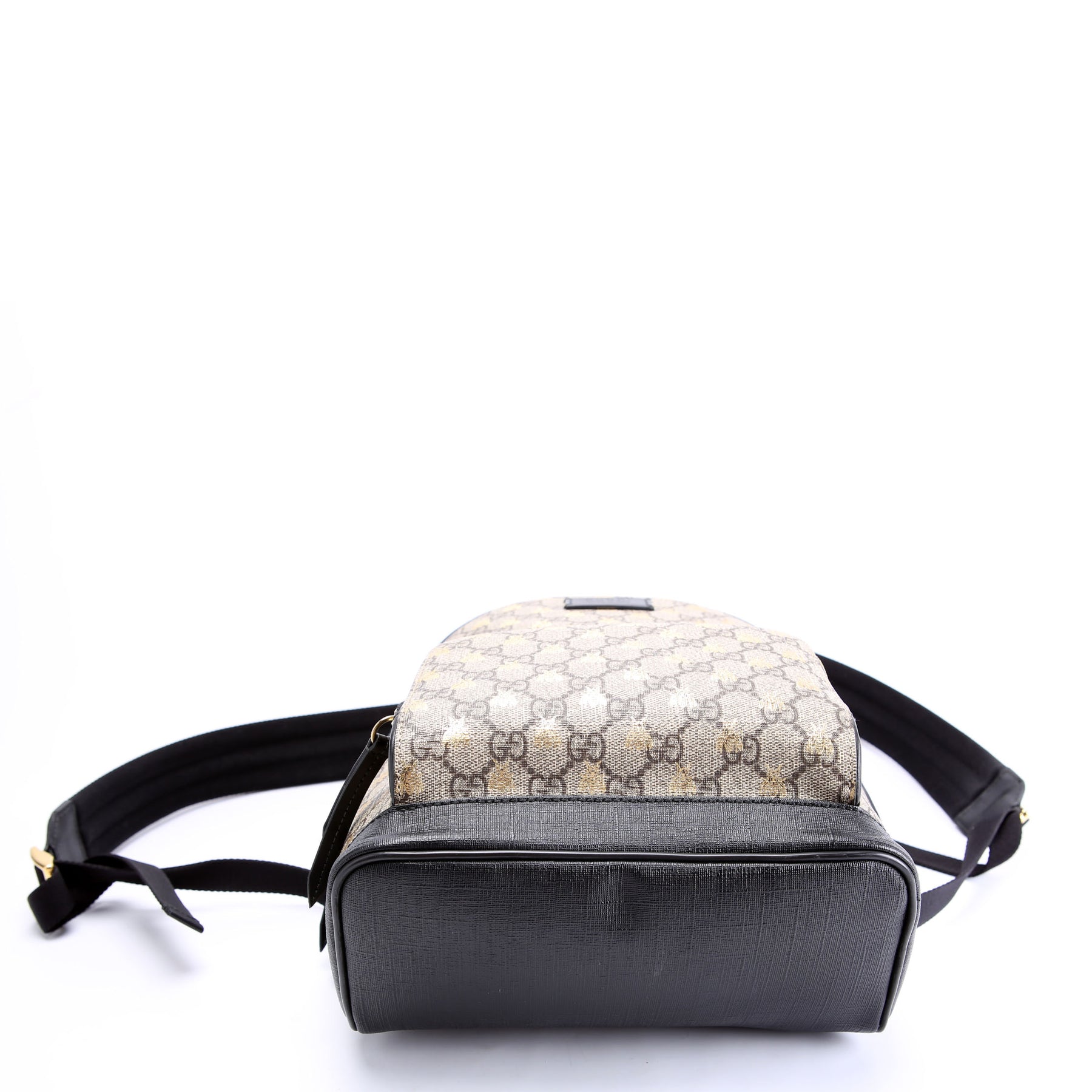 This pre-owned Gucci Supreme Bee Backpack is guaranteed 100% authentic. The exterior is in the classic monogram coated canvas.