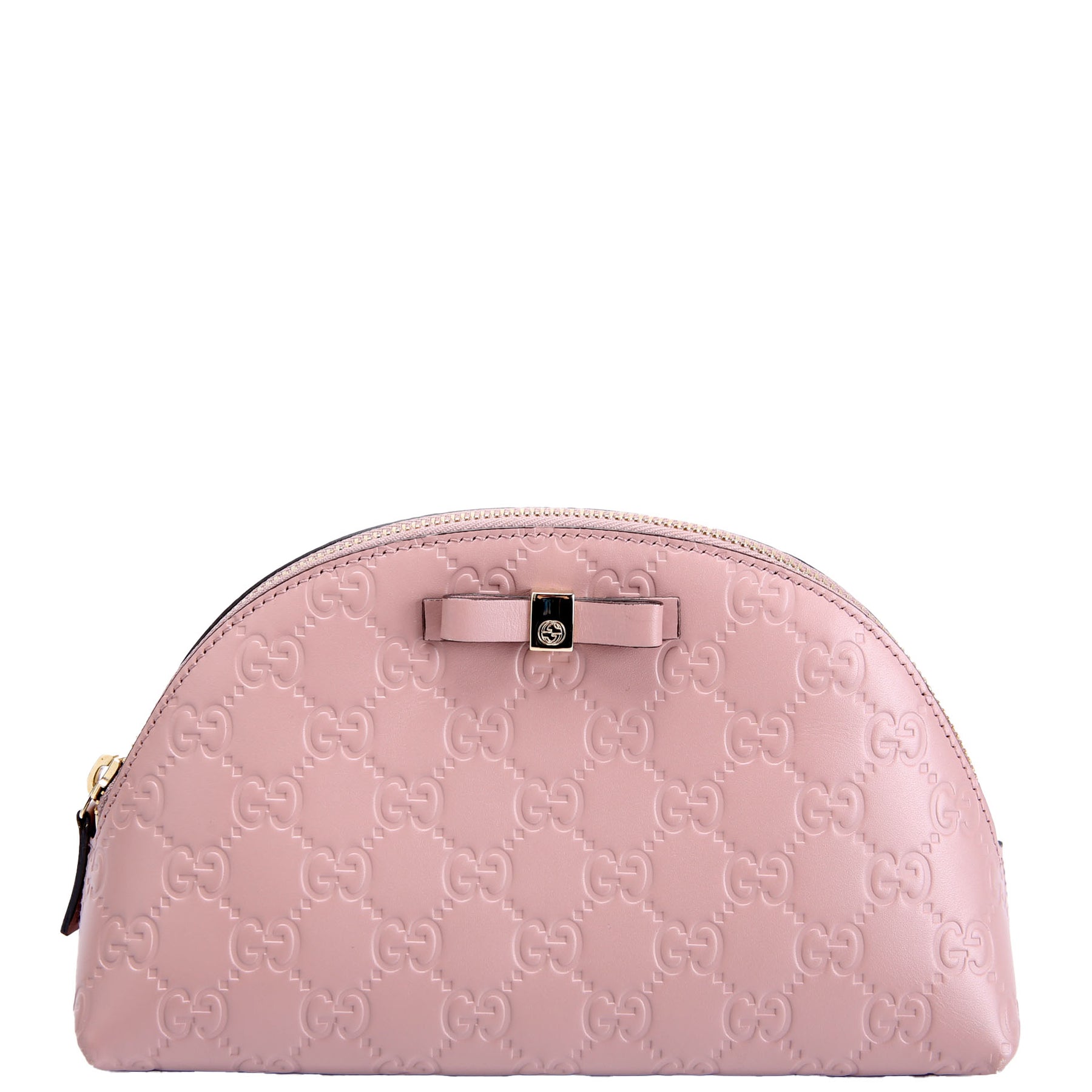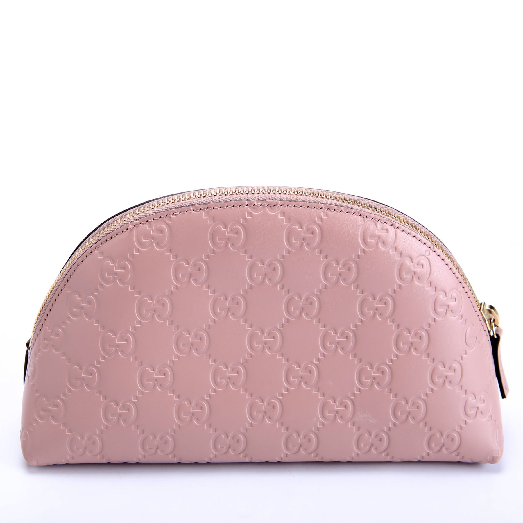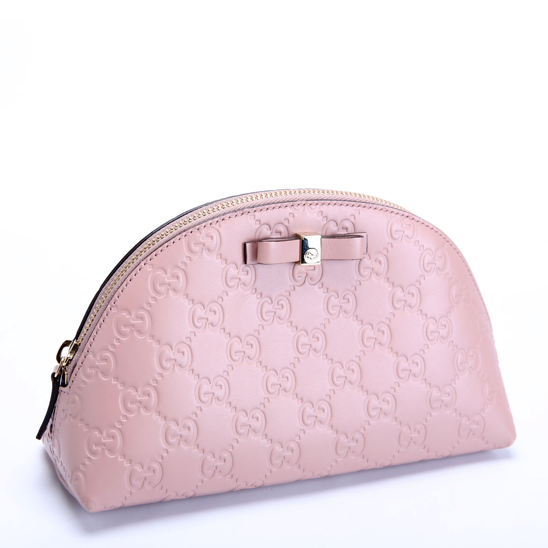This pre-owned Gucci Cosmetic Pouch is guaranteed 100% authentic. The exterior is in the classic Gucci Guccissima leather.