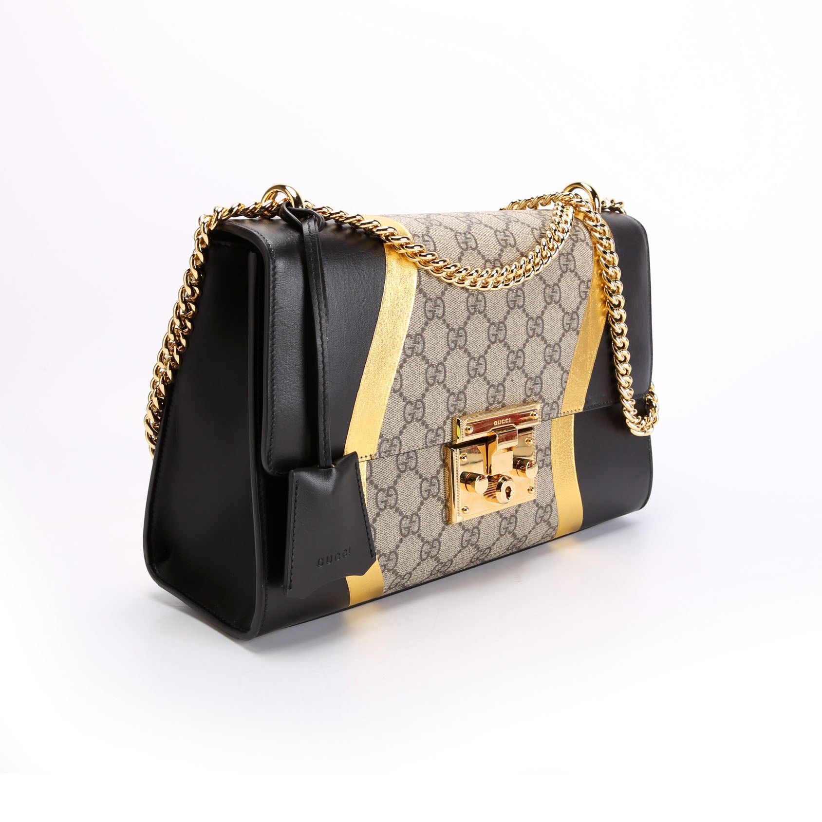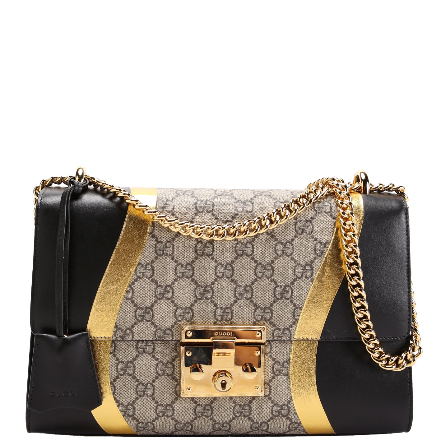 This pre-owned Gucci Padlock Medium Shoulder Bag is guaranteed 100% authentic. The exterior is in the classic Gucci GG Supreme coated canvas and Calfskin leather.