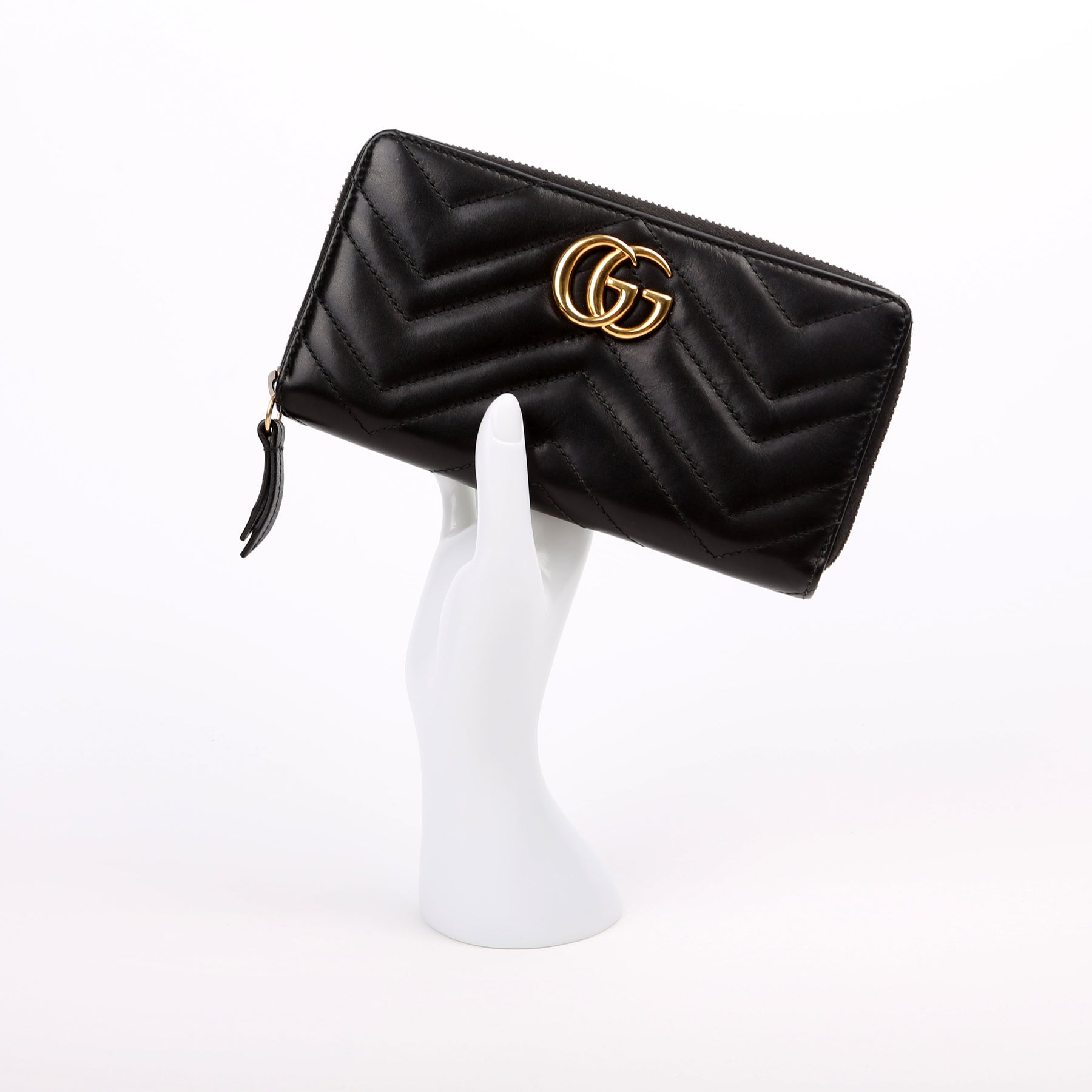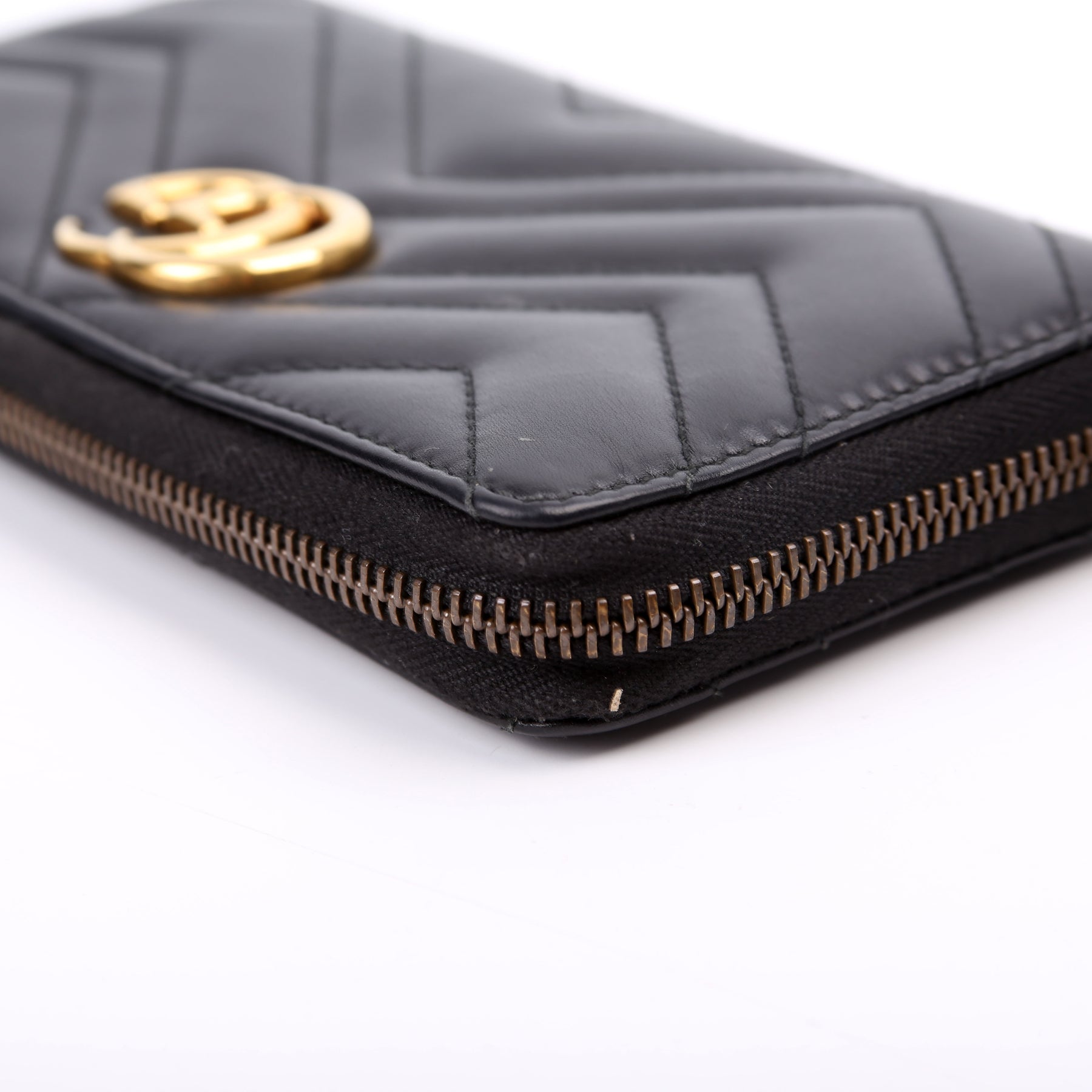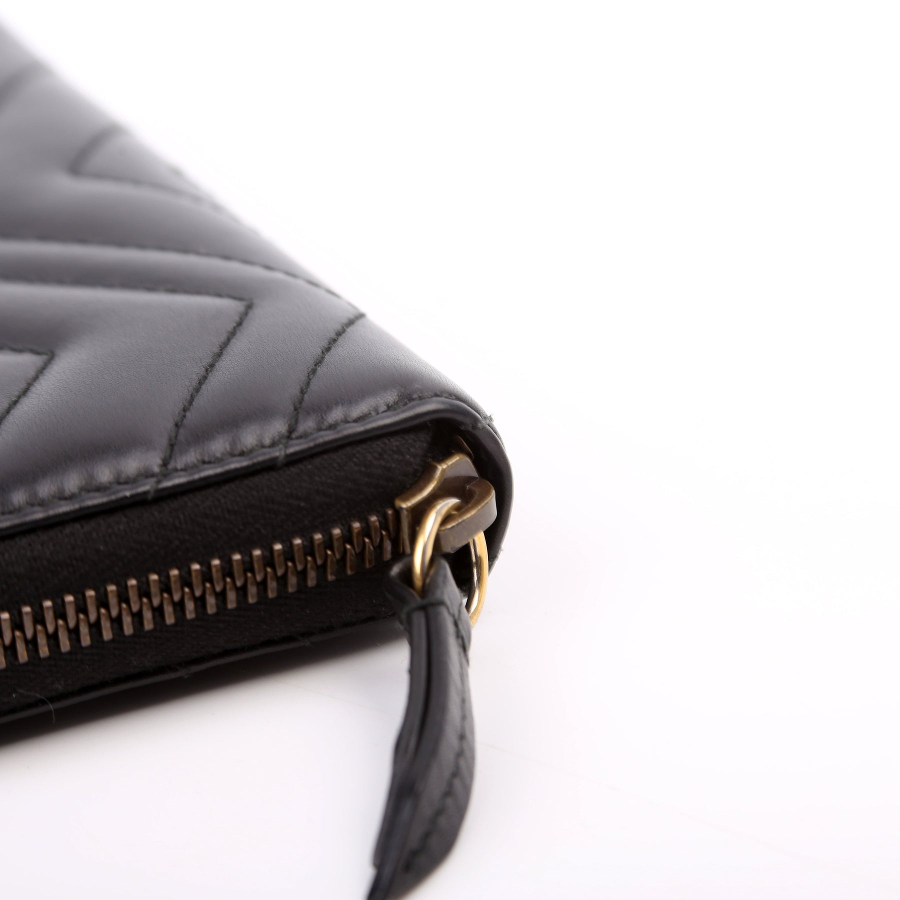This pre-owned Gucci GG Marmont Zip Around Wallet is guaranteed 100% authentic. The exterior is in the classic Gucci Marmont leather.