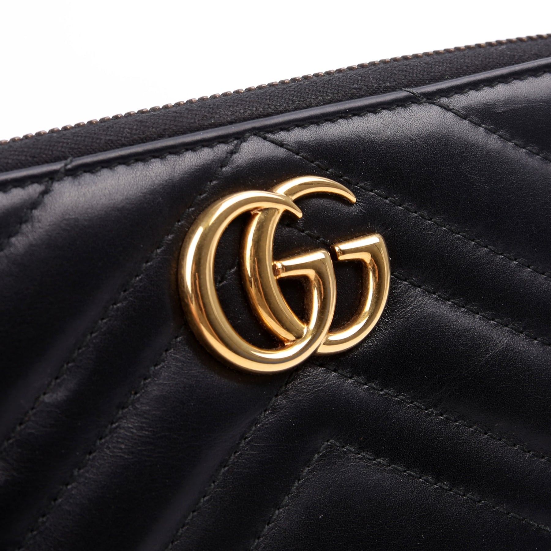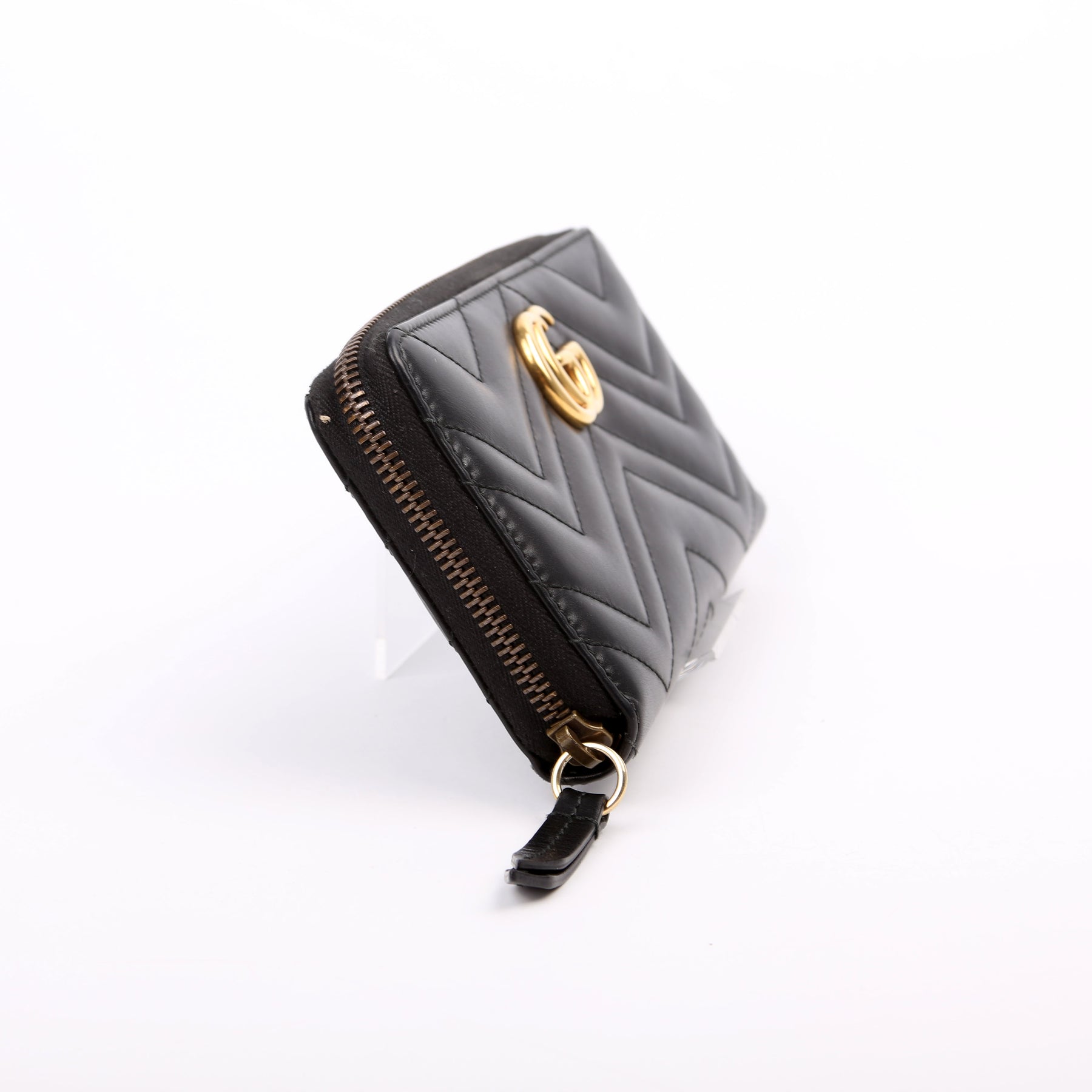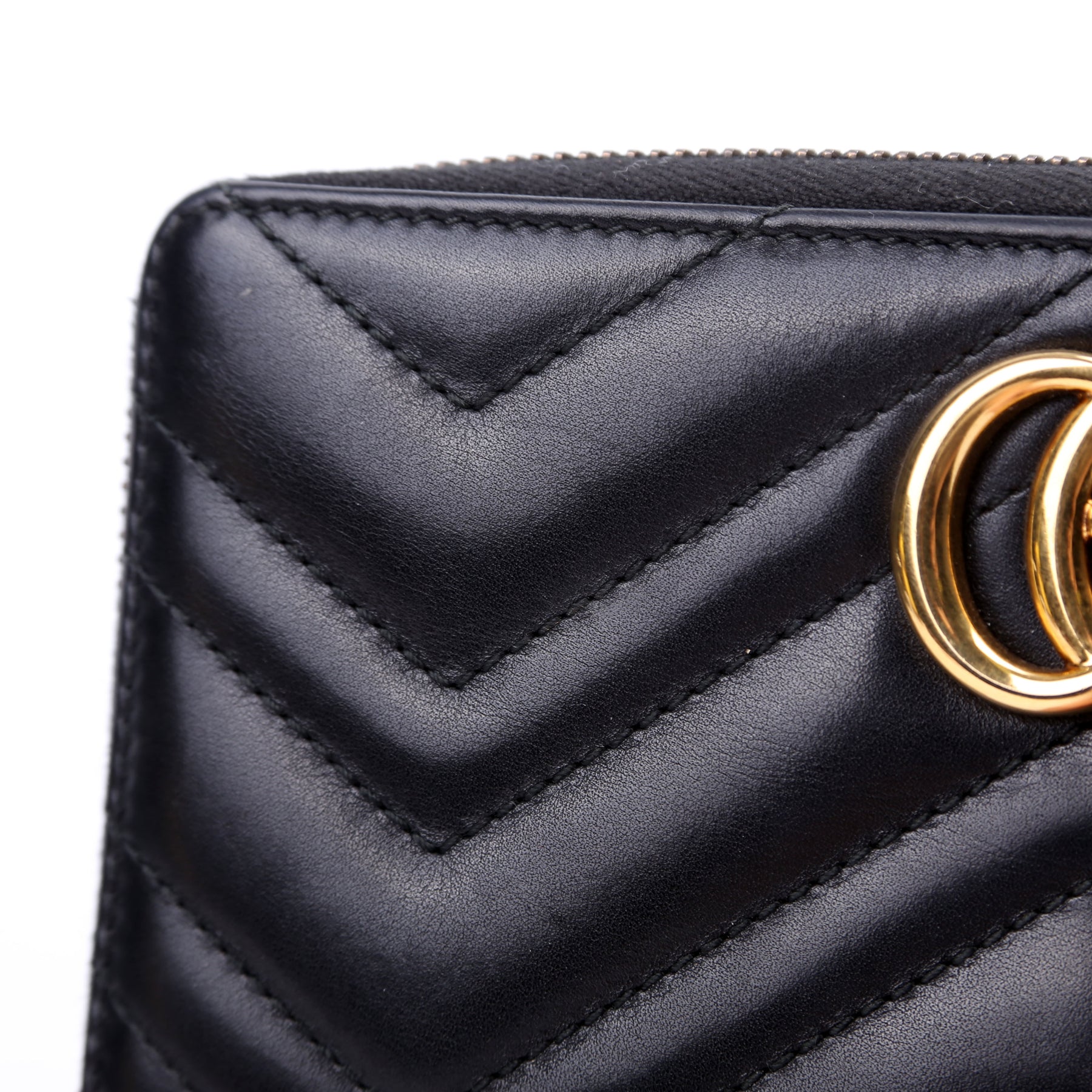 This pre-owned Gucci GG Marmont Zip Around Wallet is guaranteed 100% authentic. The exterior is in the classic Gucci Marmont leather.