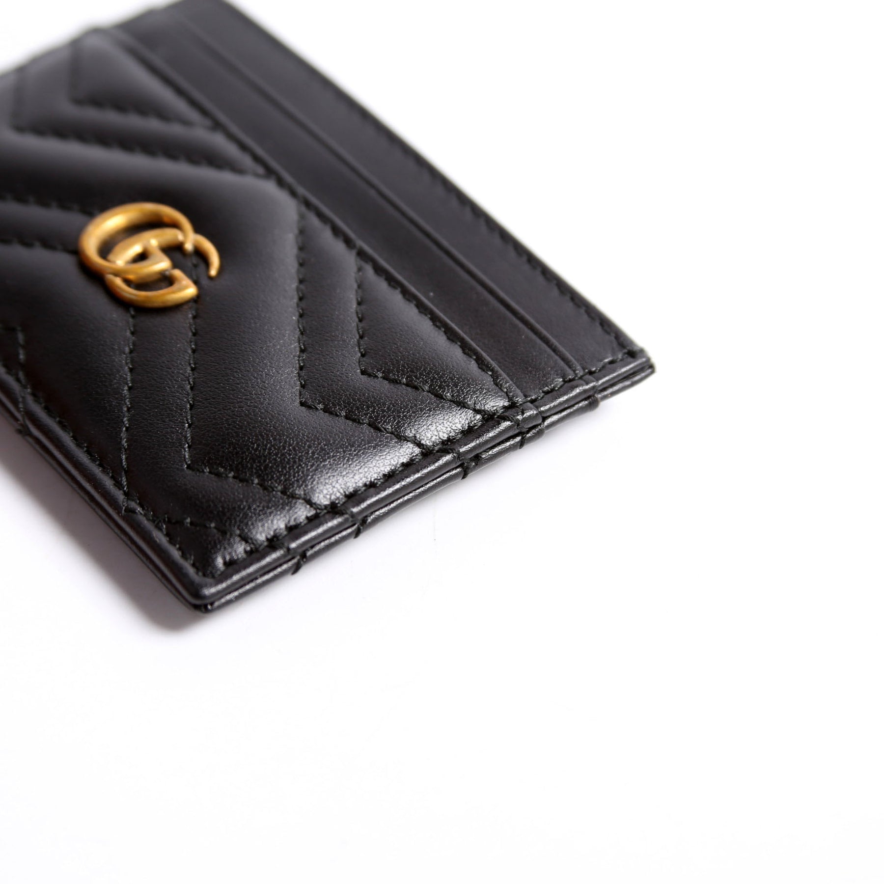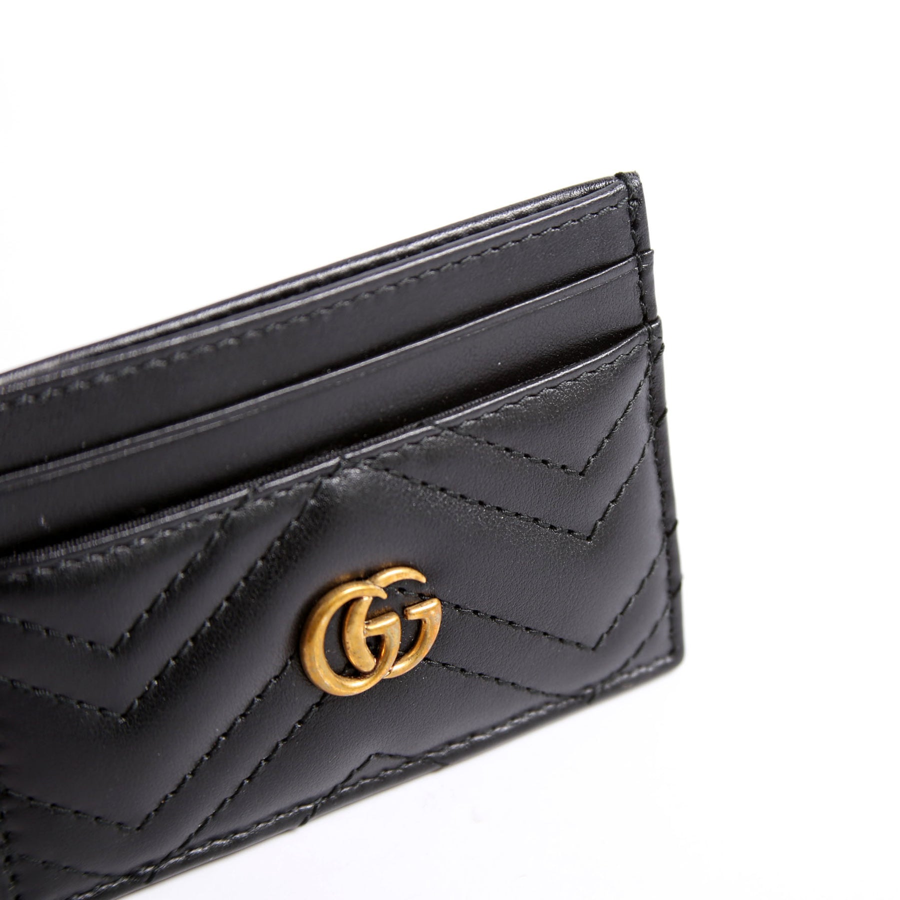 This pre-owned Gucci GG Marmont Card Holder guaranteed 100% authentic. The exterior is in the classic Gucci Marmont leather.