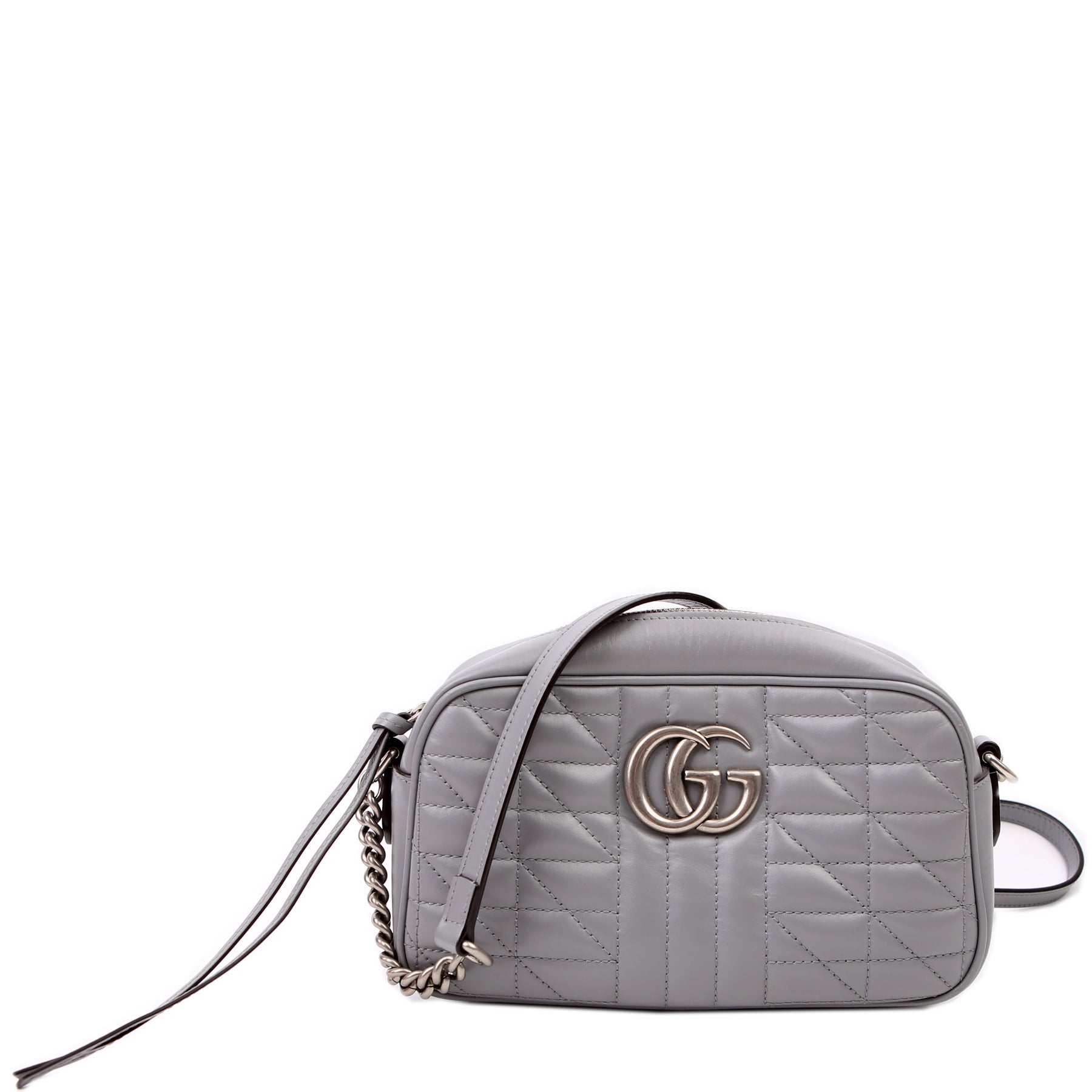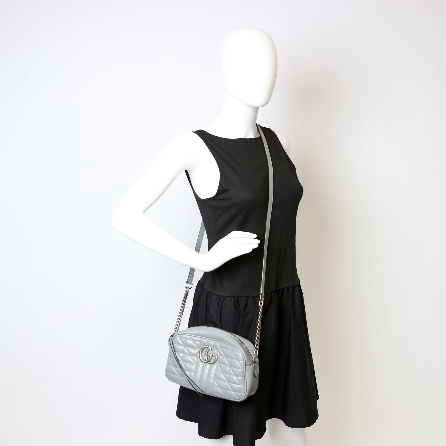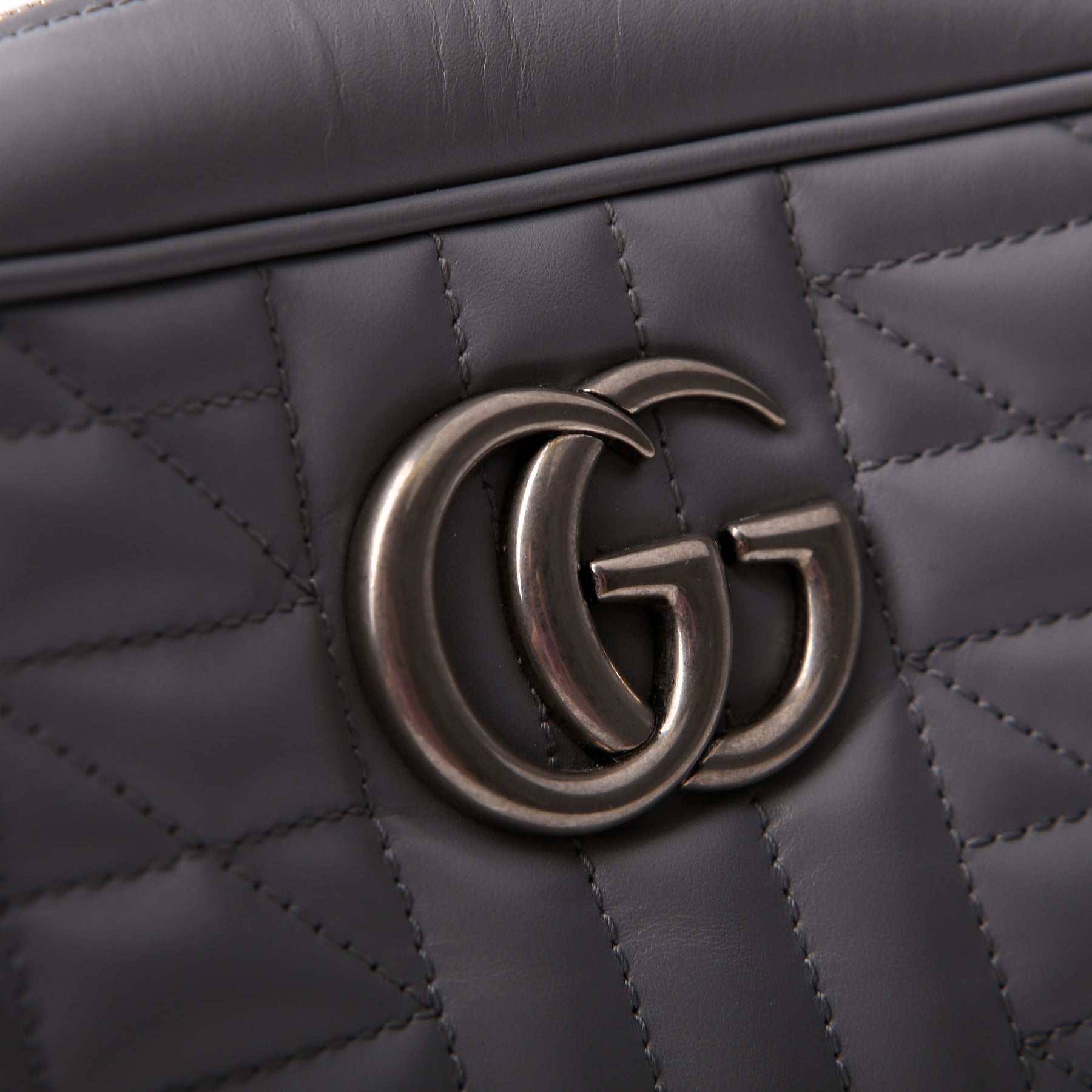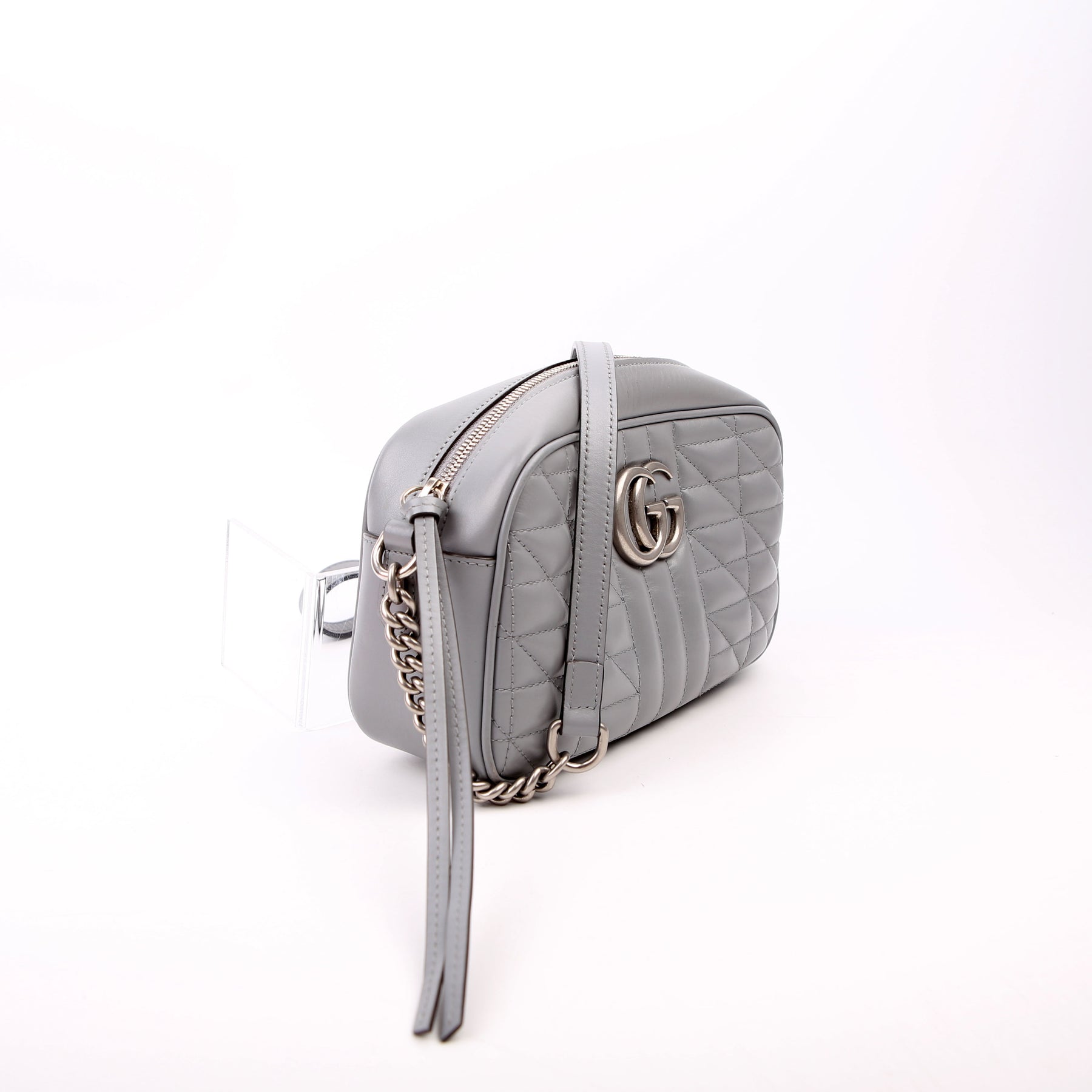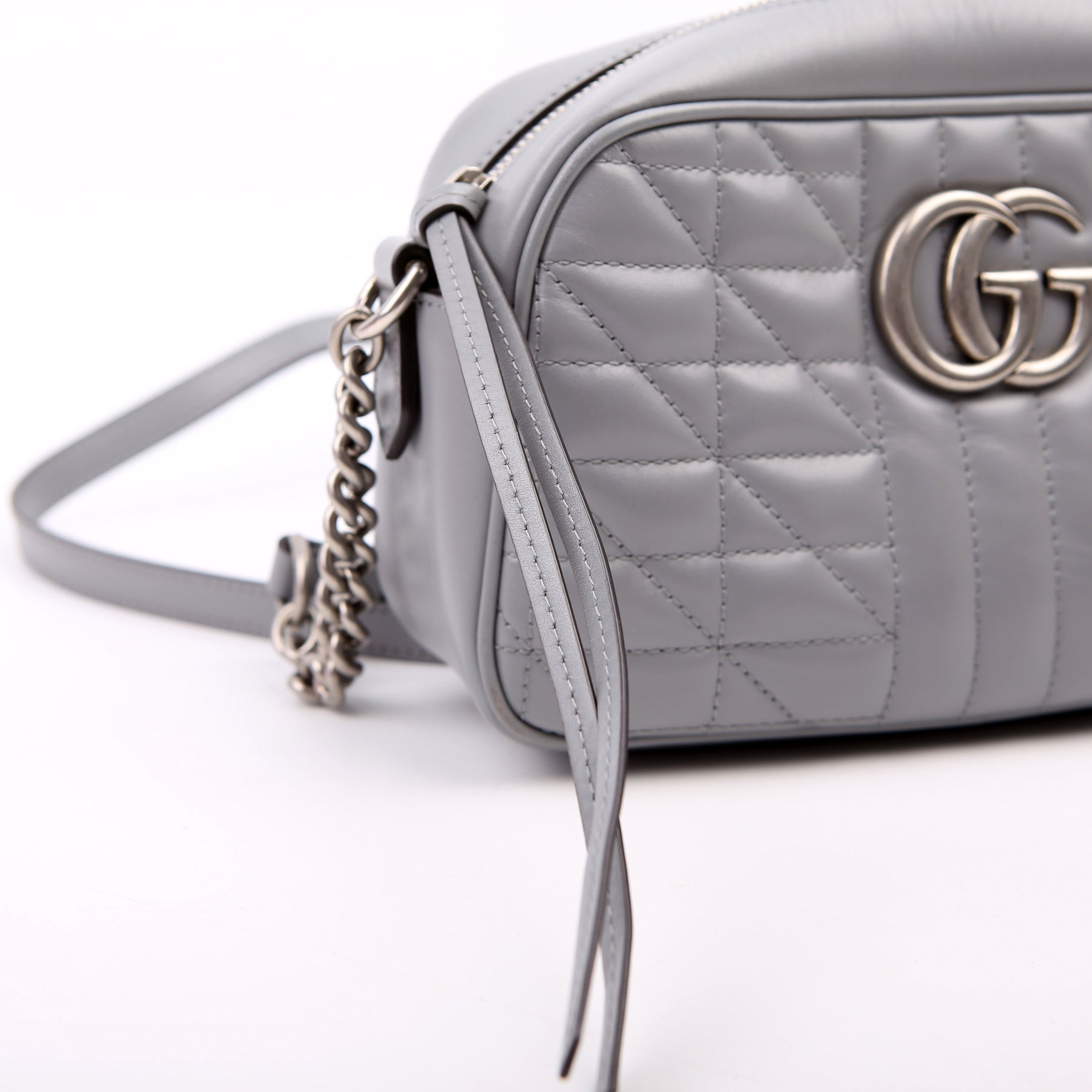 This pre-owned Gucci Marmont Aria Camera Small is guaranteed 100% authentic. The exterior is in the classic Marmont leather.