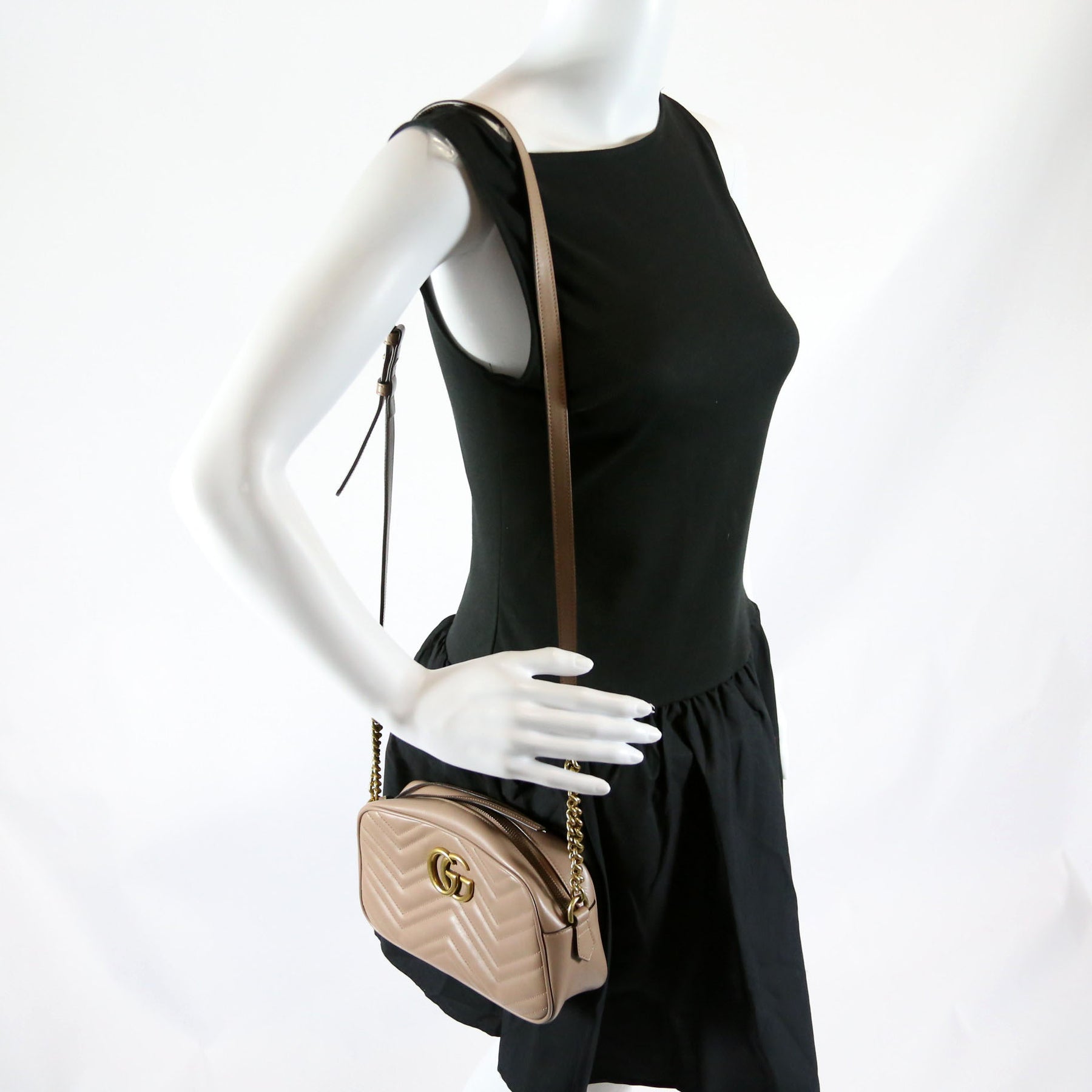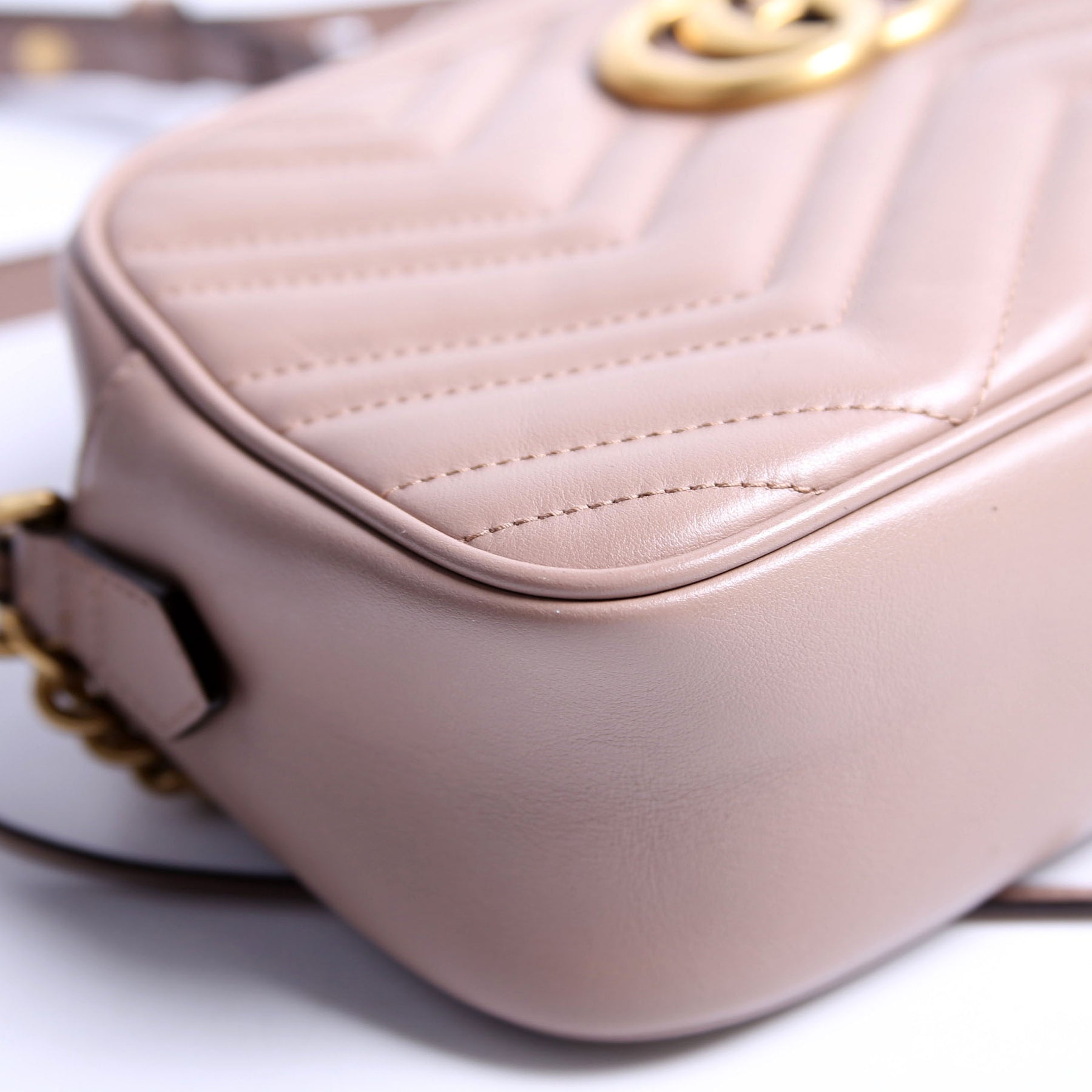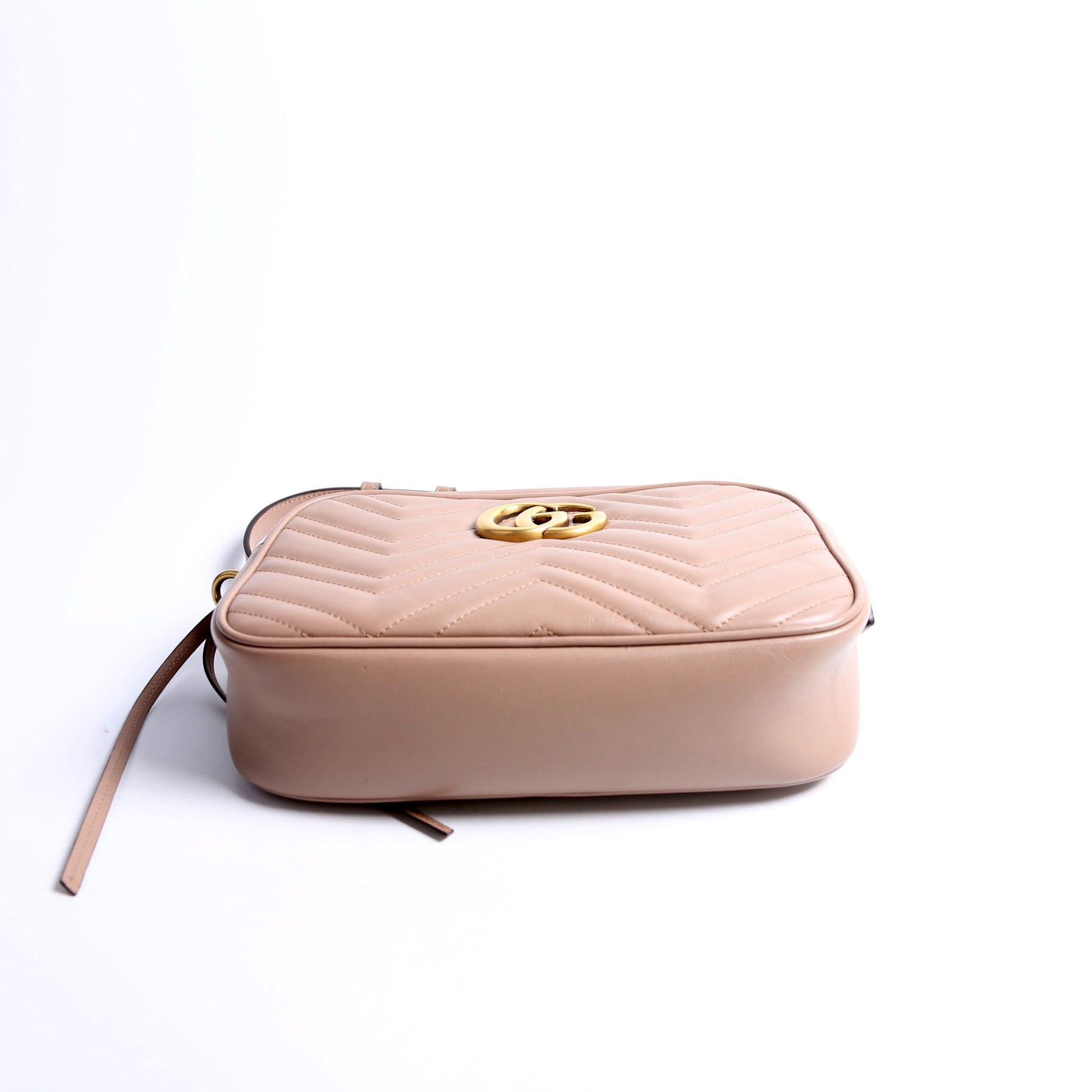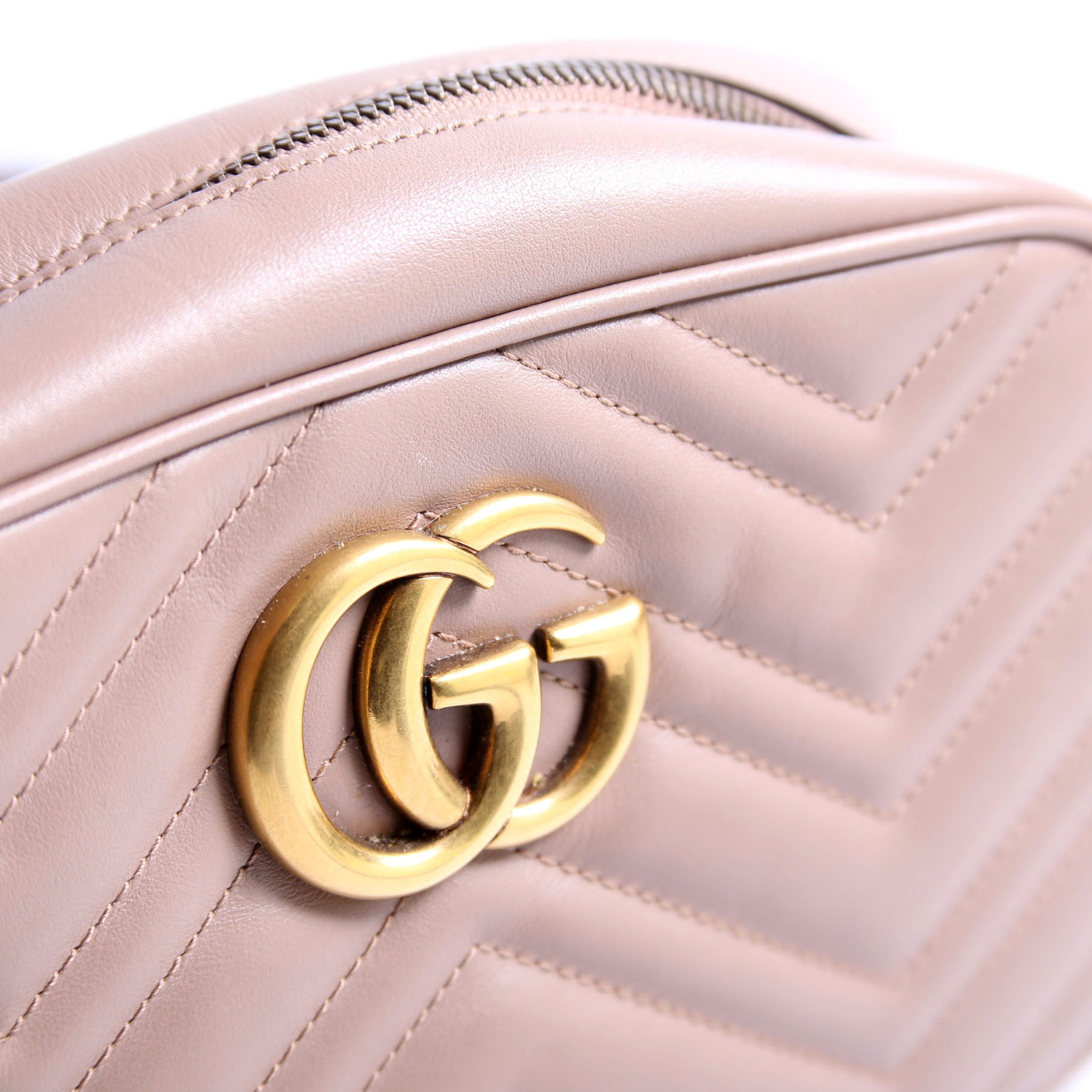 This pre-owned Gucci Marmont Small Leather Camera is guaranteed 100% authentic.