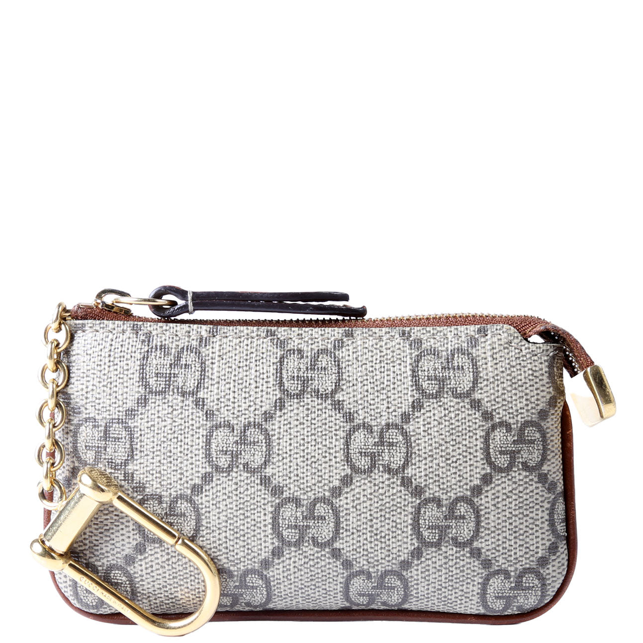 This pre-owned Gucci Key Case is guaranteed 100% authentic. The exterior is in the classic Gucci GG Supreme coated canvas.