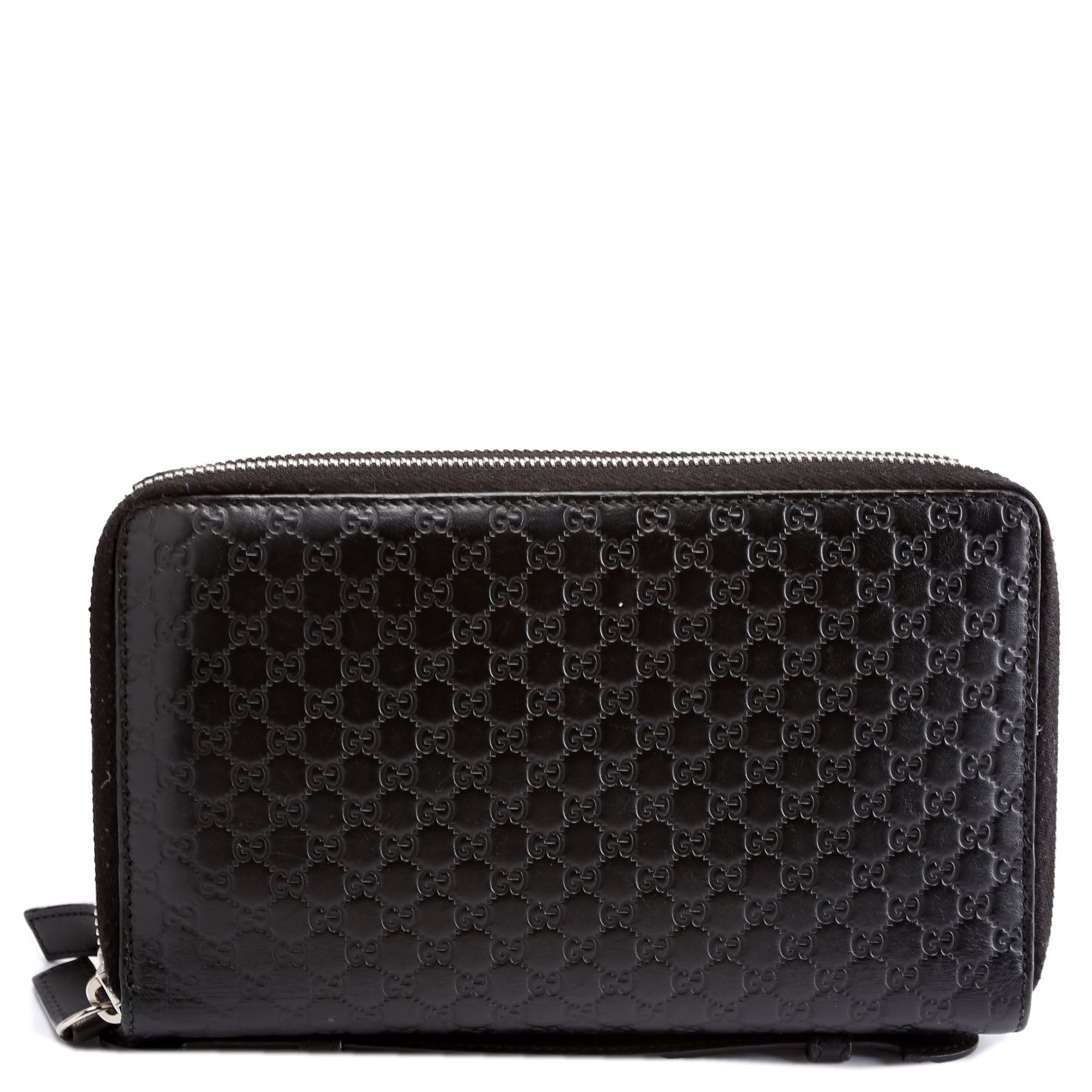 This pre-owned Gucci Micro Guccissima Travel Wallet is guaranteed 100% authentic. The exterior is in the classic Gucci Guccissima leather.