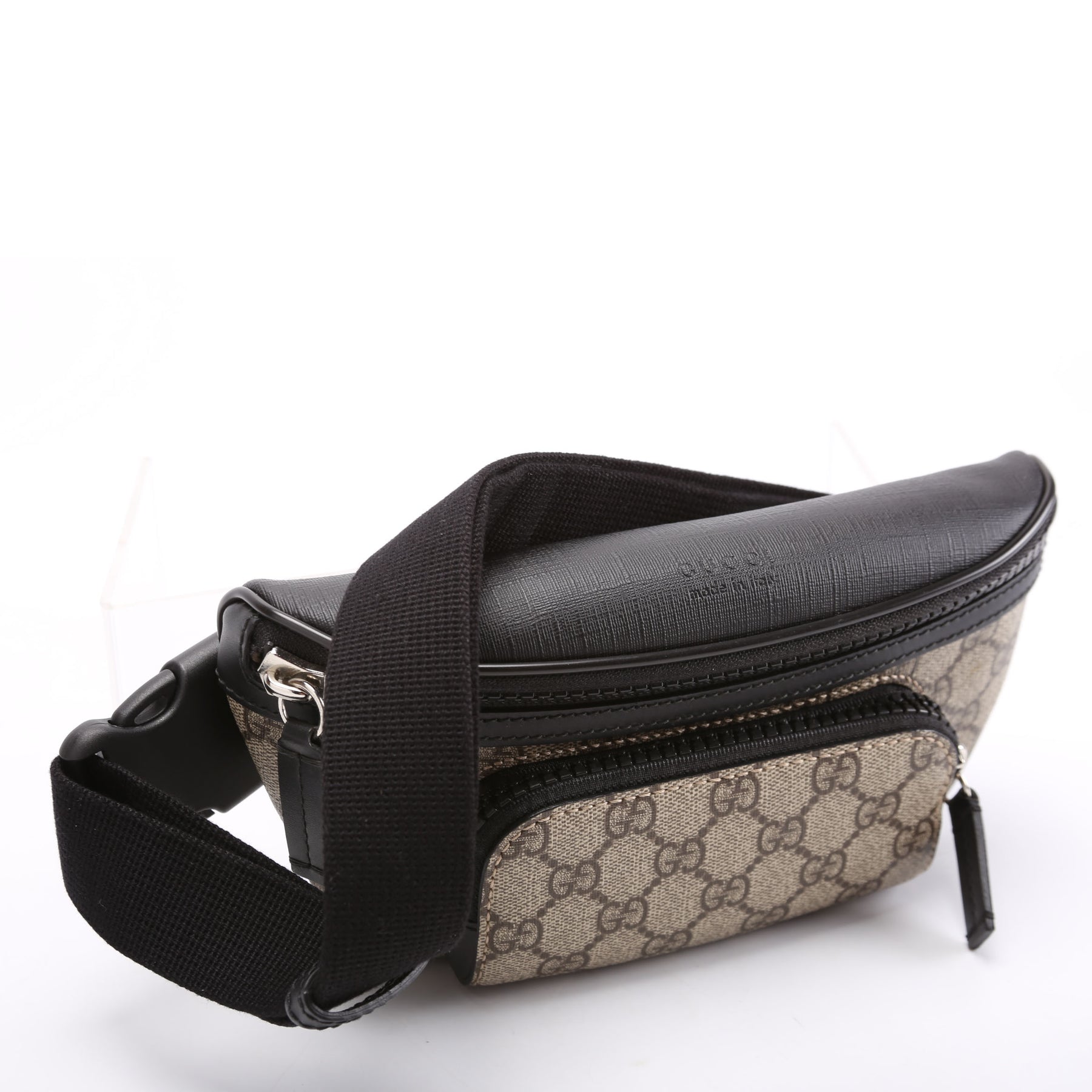 This pre-owned Gucci Belt Bag is guaranteed 100% authentic. The exterior is in the classic Gucci GG Supreme coated canvas.