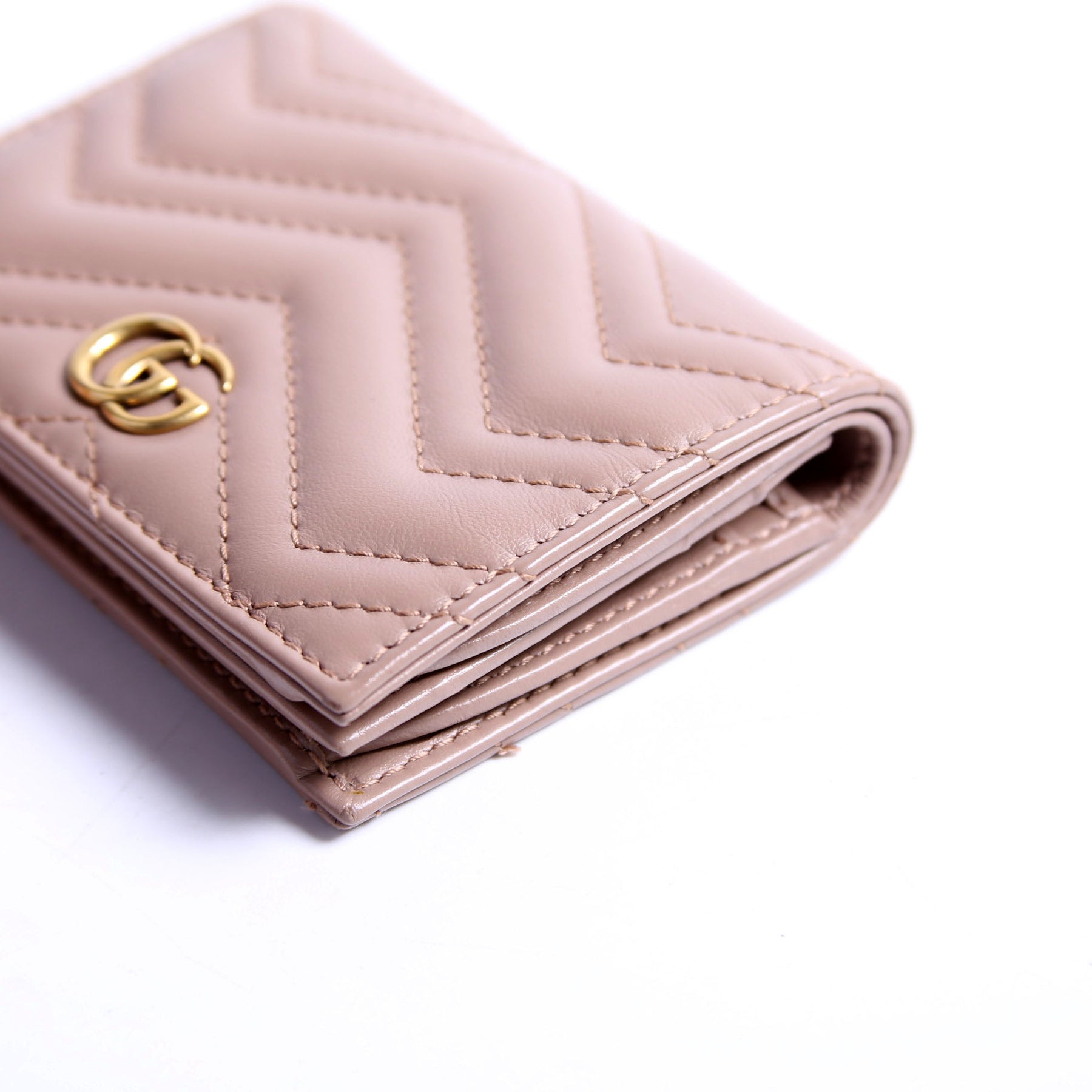 This pre-owned Gucci GG Marmont Card Case is guaranteed 100% authentic. The exterior is in the classic Gucci Marmont leather.
