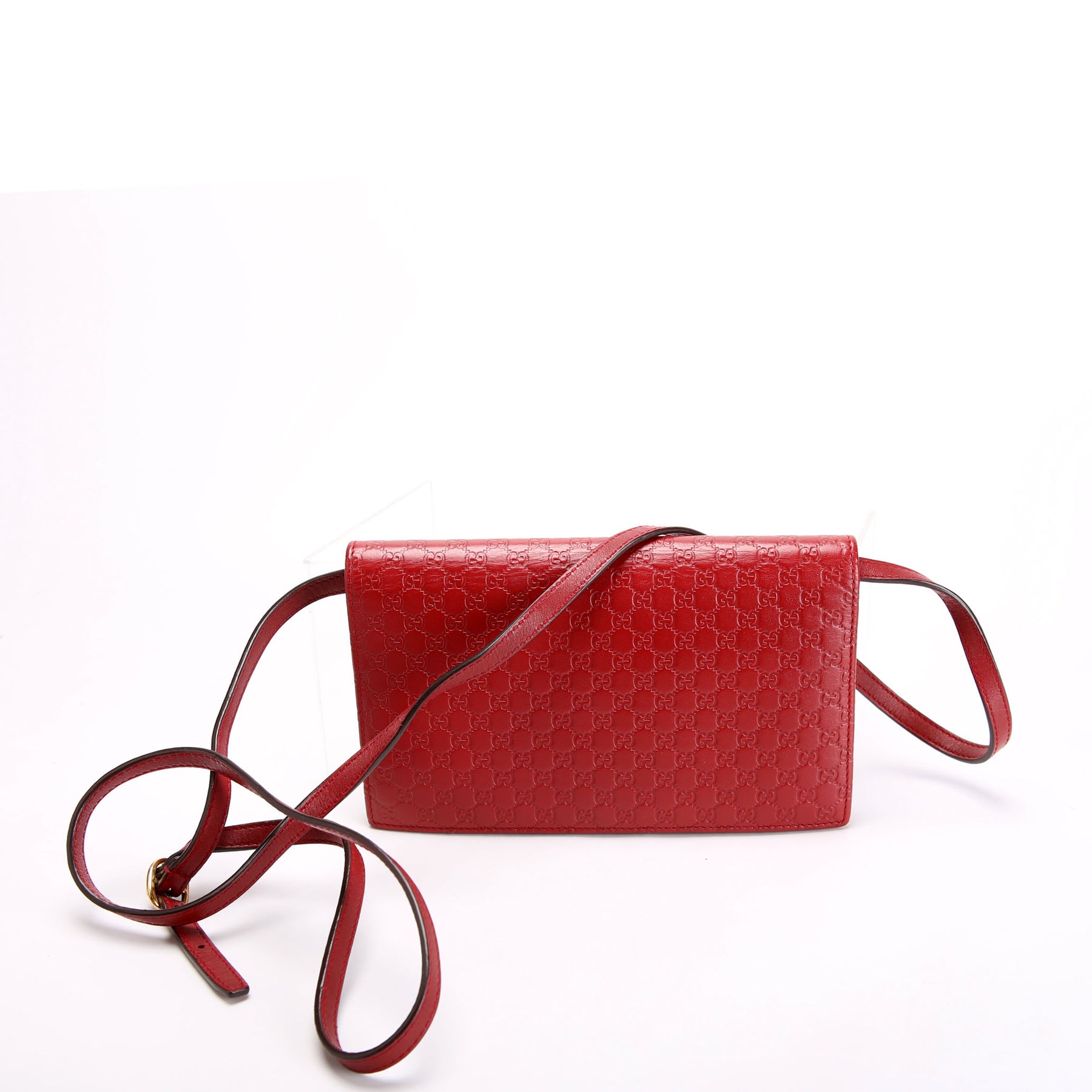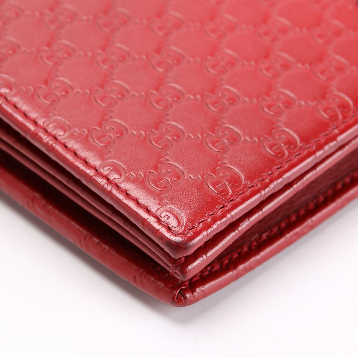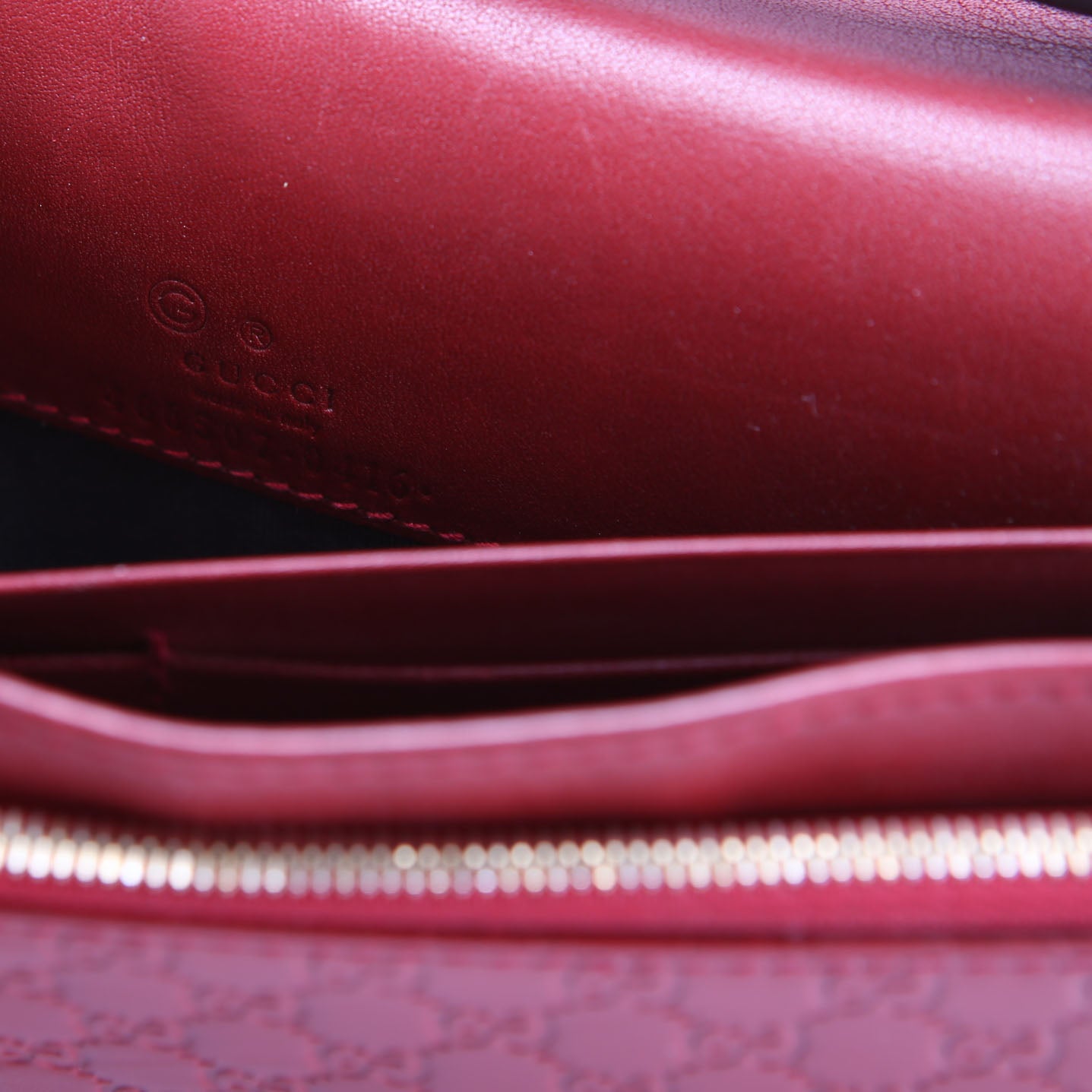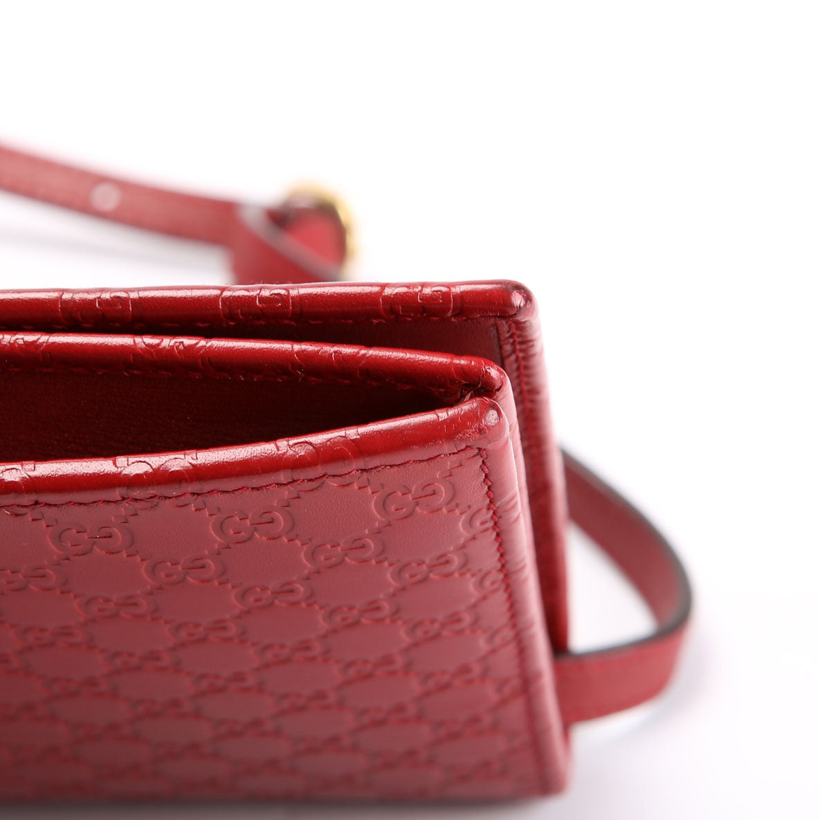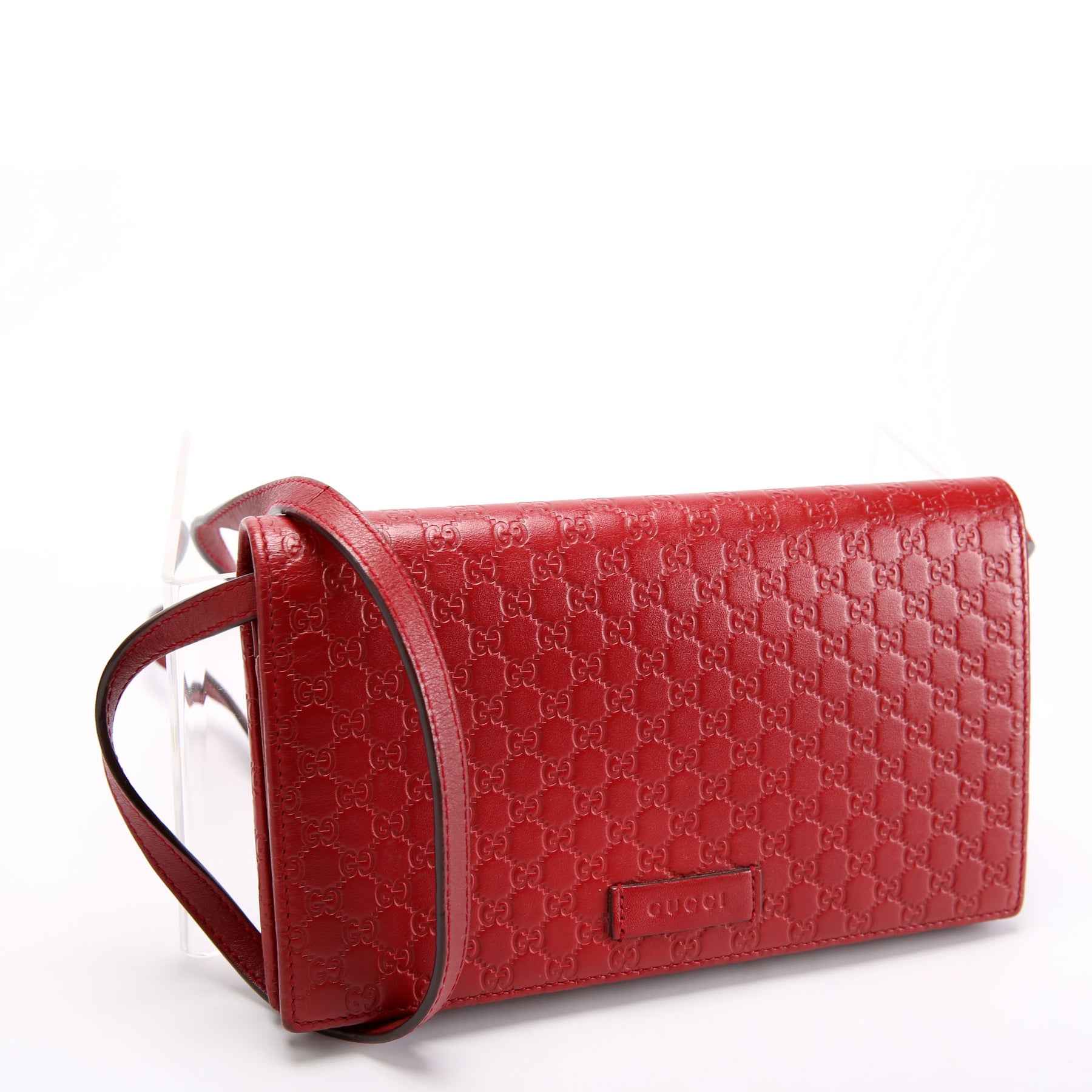 This pre-owned Gucci Micro GG Wallet On Chain is guaranteed 100% authentic. The exterior is in the classic Gucci GG Embossed Leather.