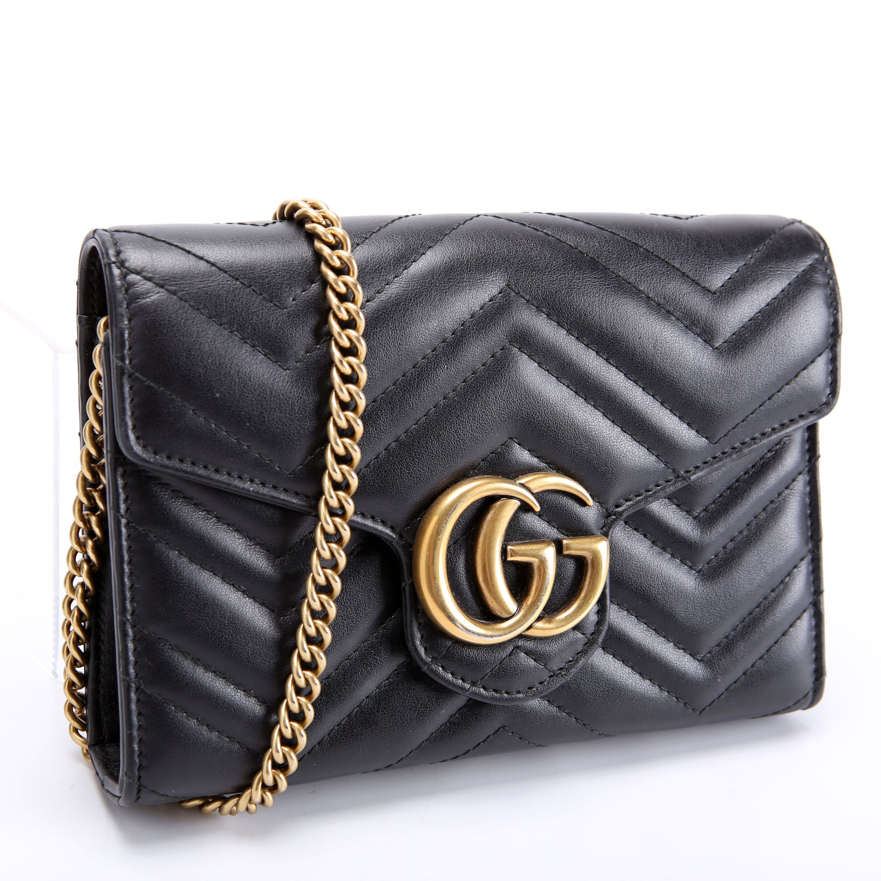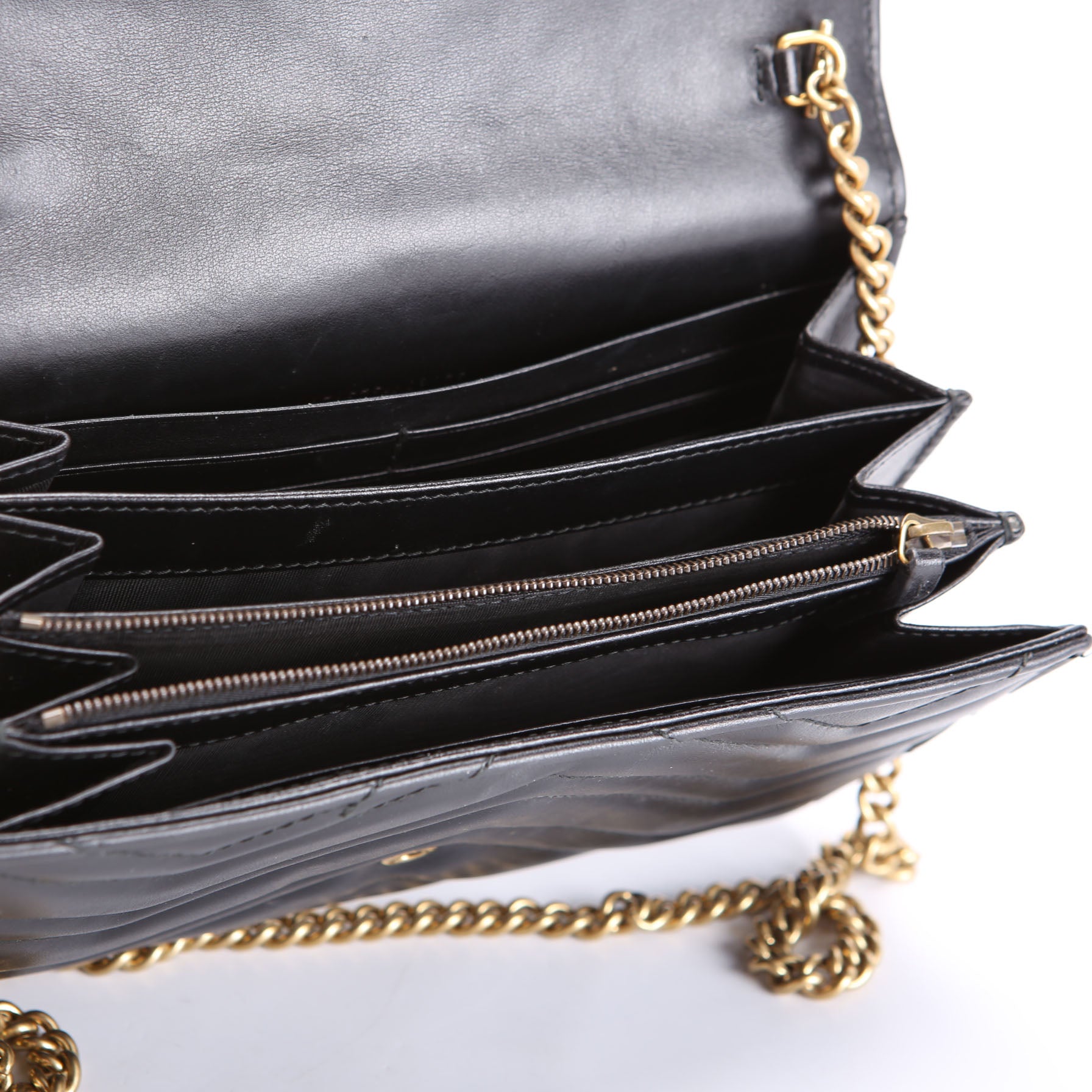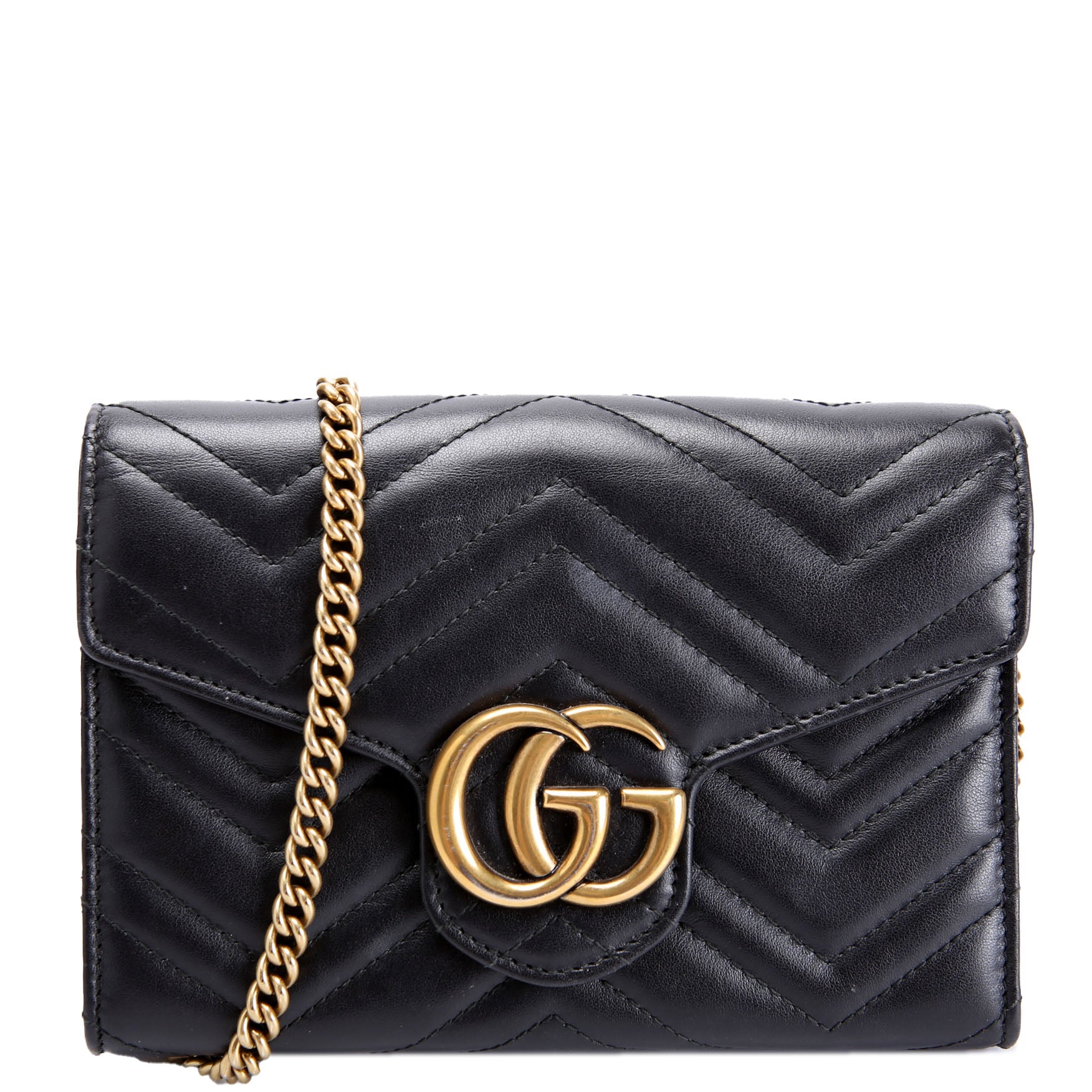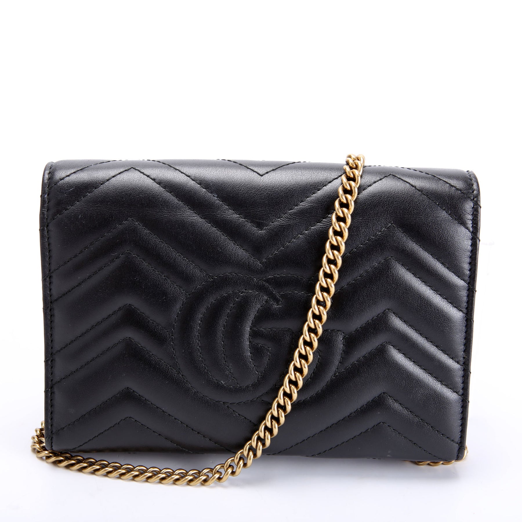 This pre-owned Gucci Marmont Chain Wallet is guaranteed 100% authentic. The exterior is in the classic Gucci Marmont leather.