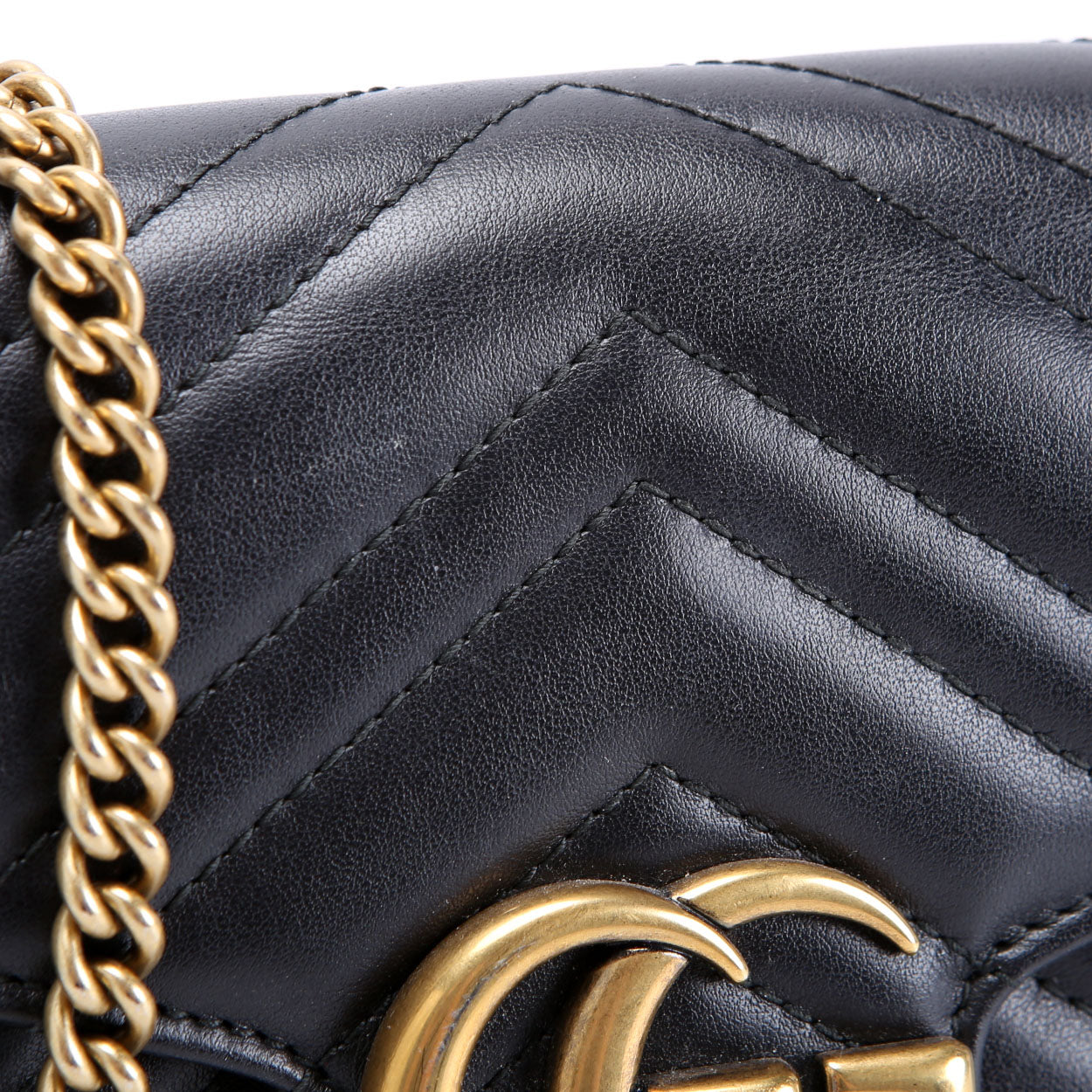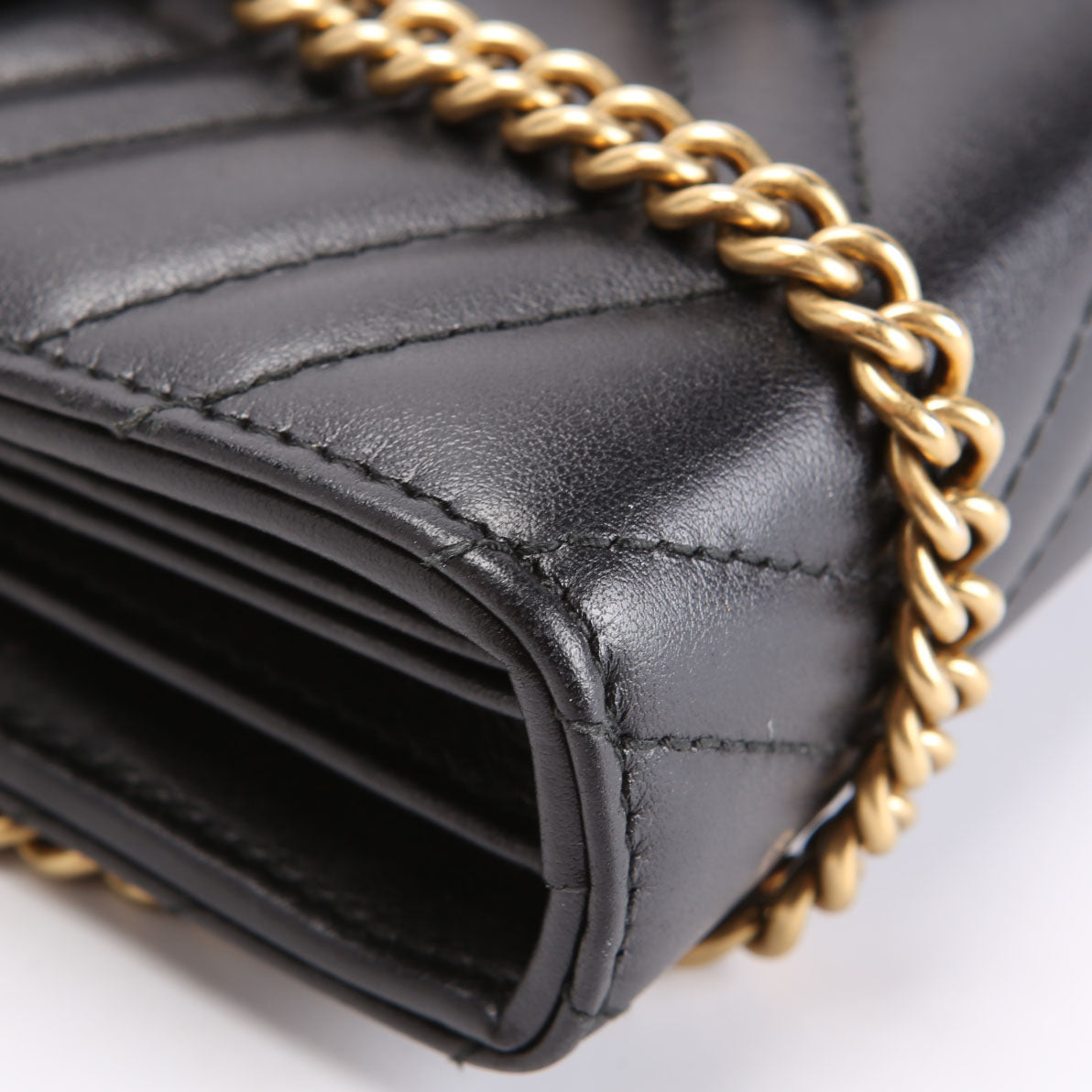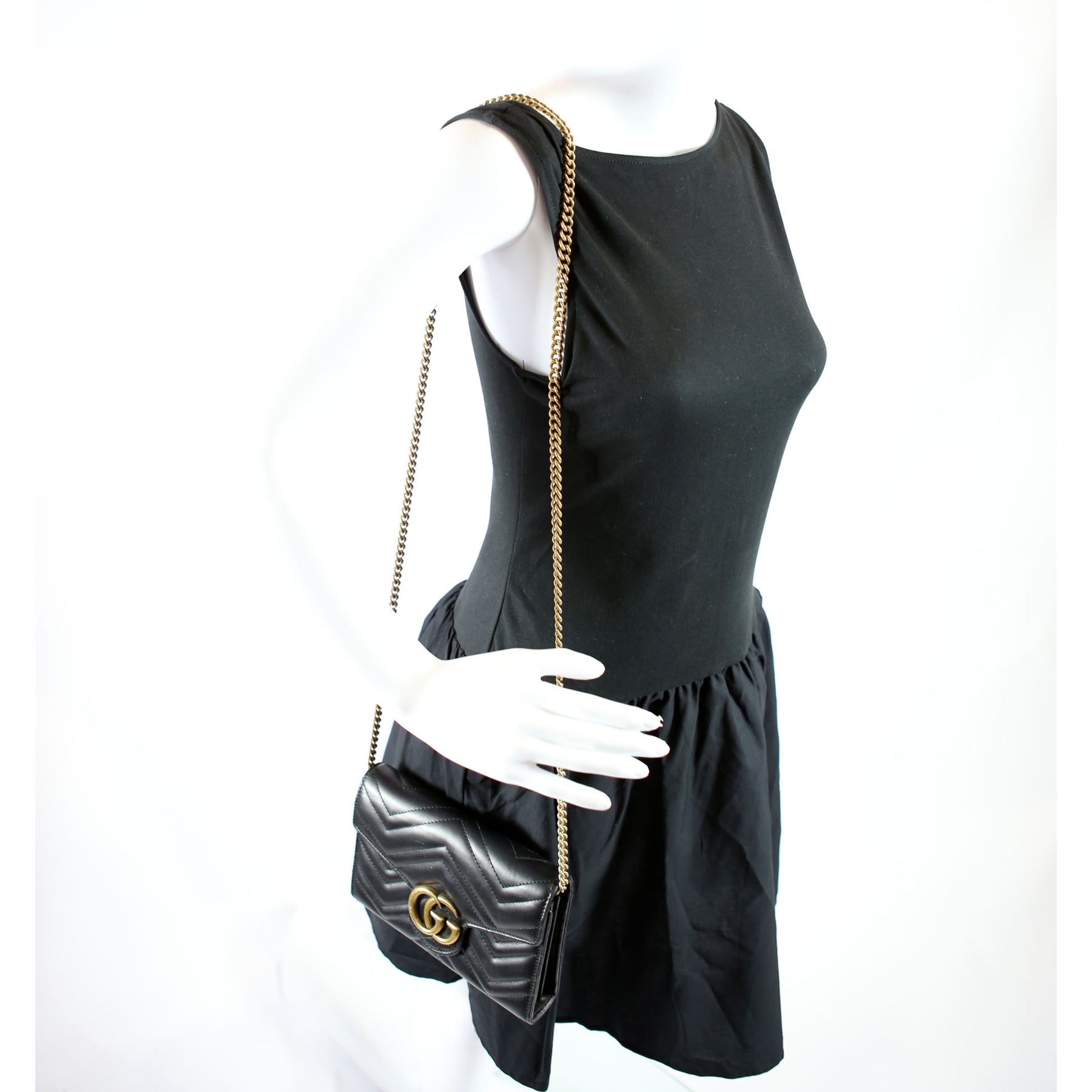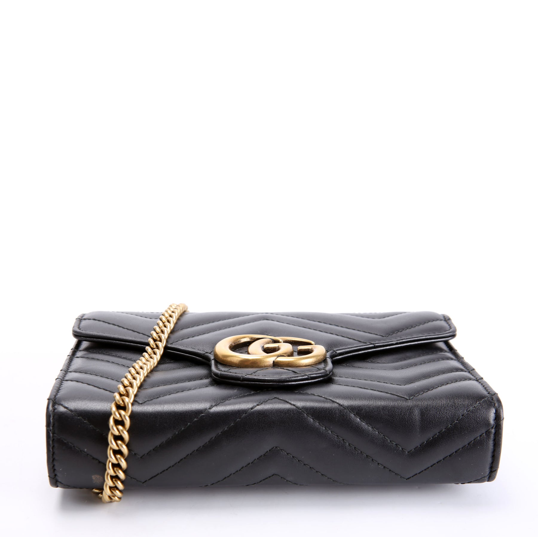 This pre-owned Gucci Marmont Chain Wallet is guaranteed 100% authentic. The exterior is in the classic Gucci Marmont leather.