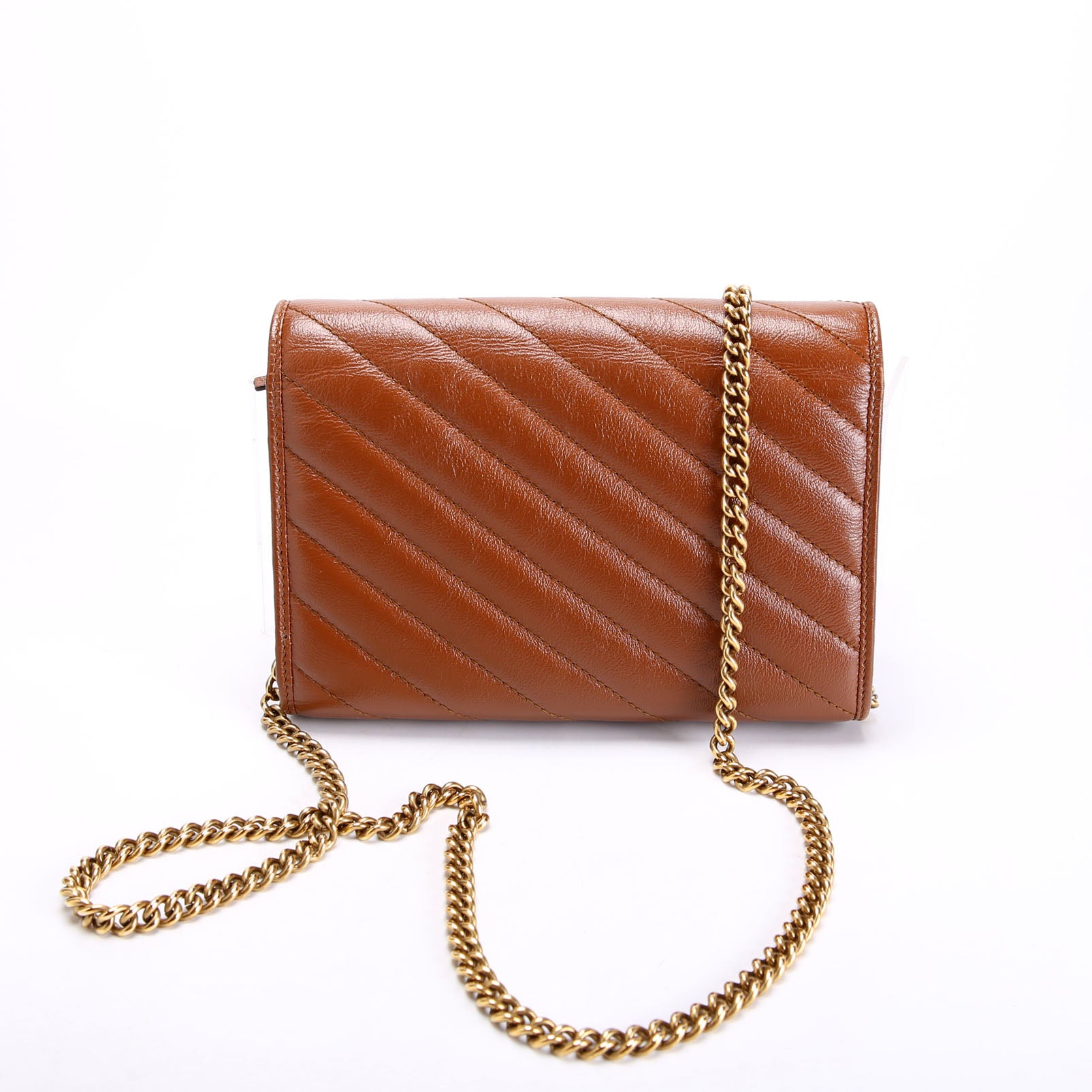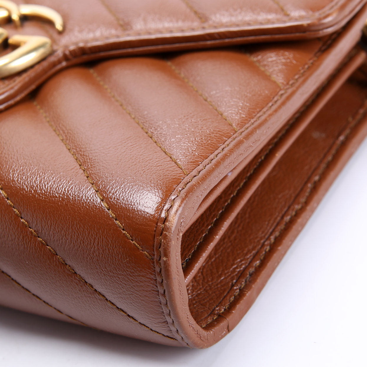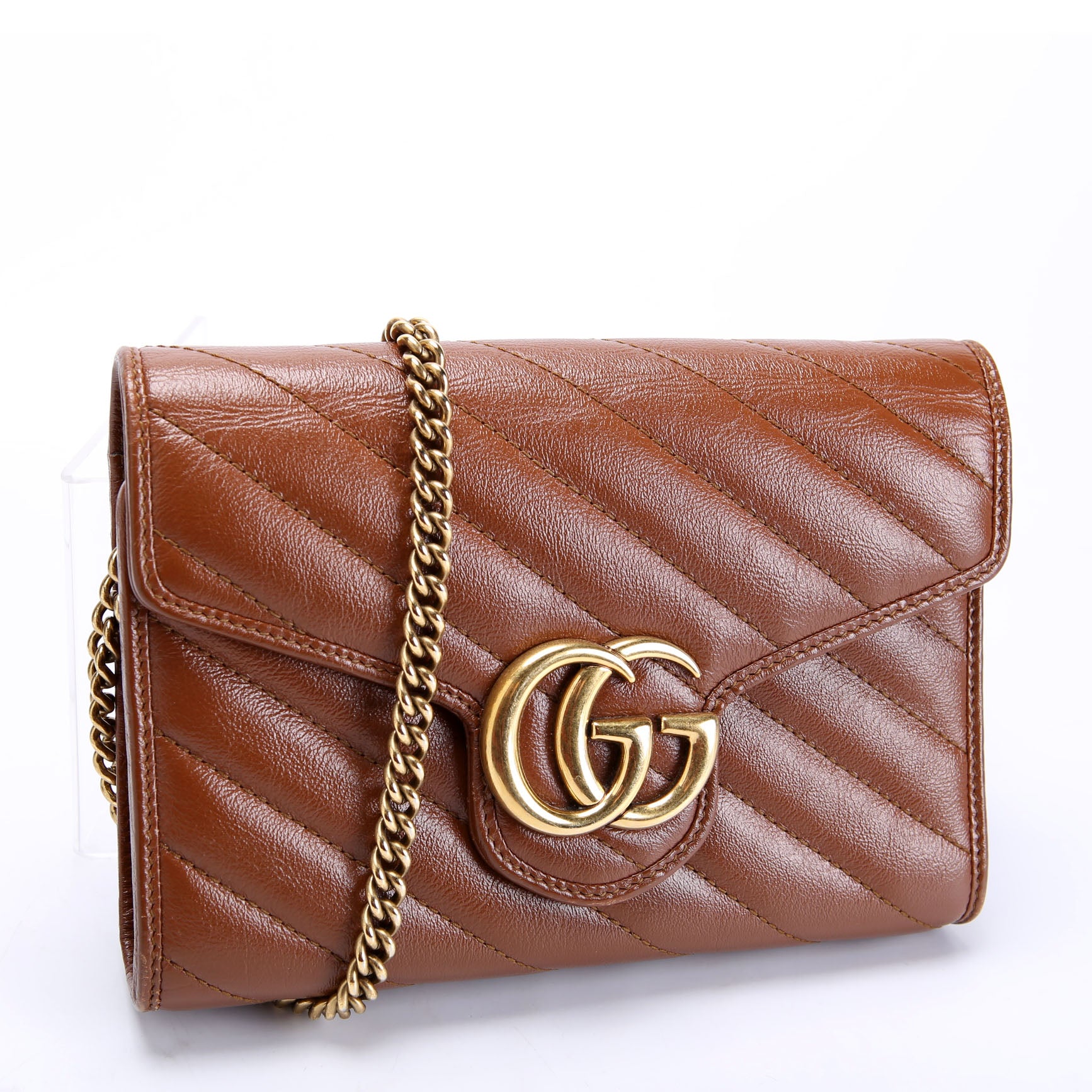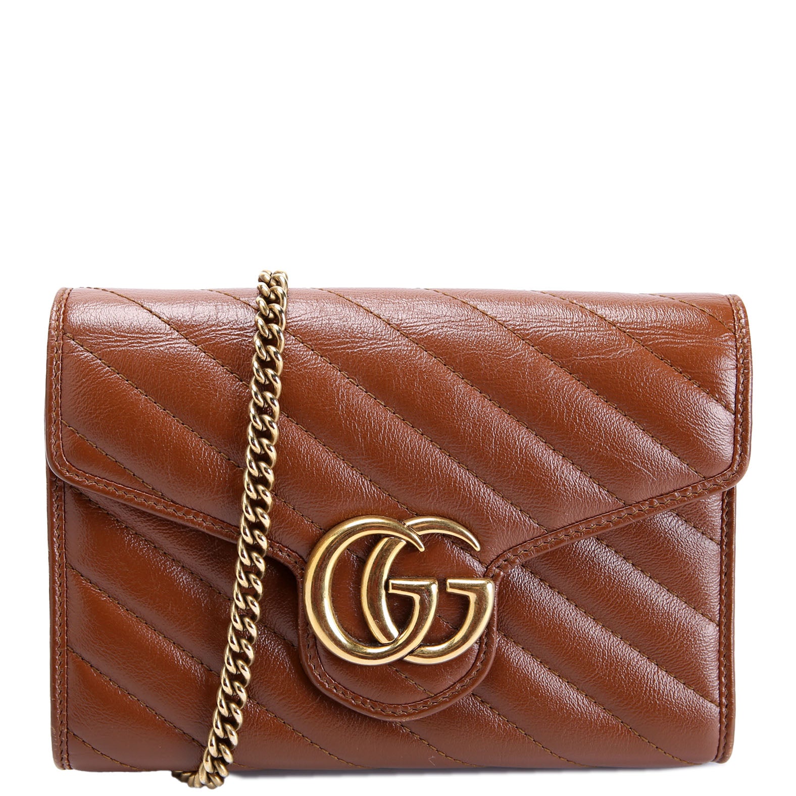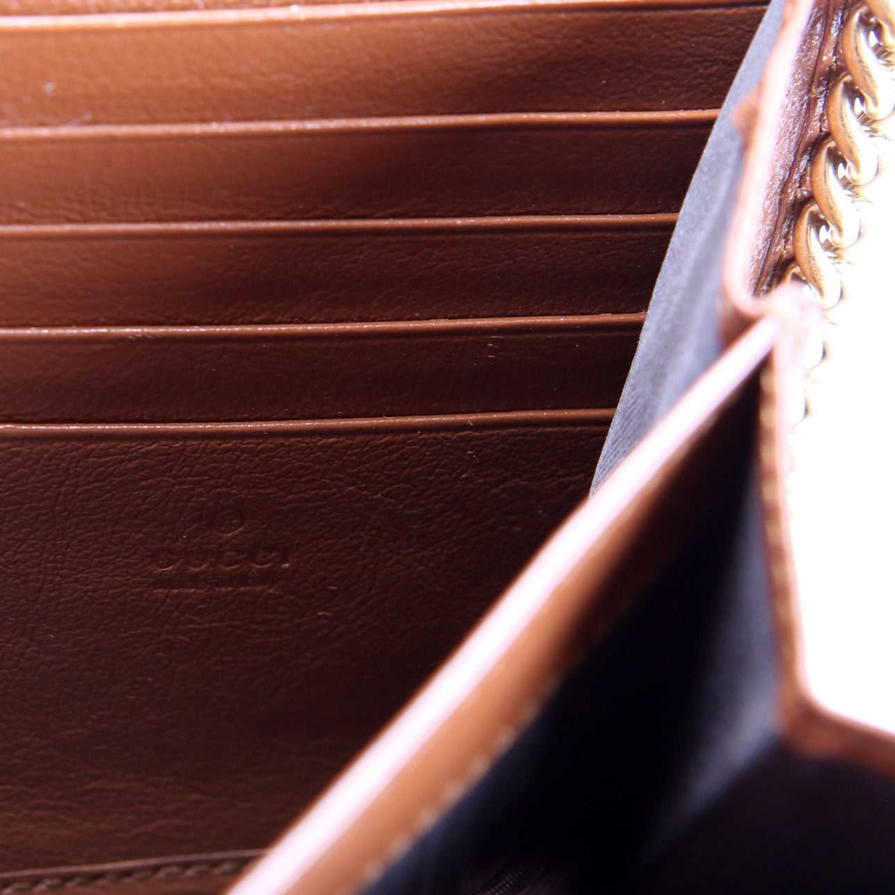 This pre-owned Gucci Marmont Chain Wallet is guaranteed 100% authentic. The exterior is in the classic Gucci Marmont leather.