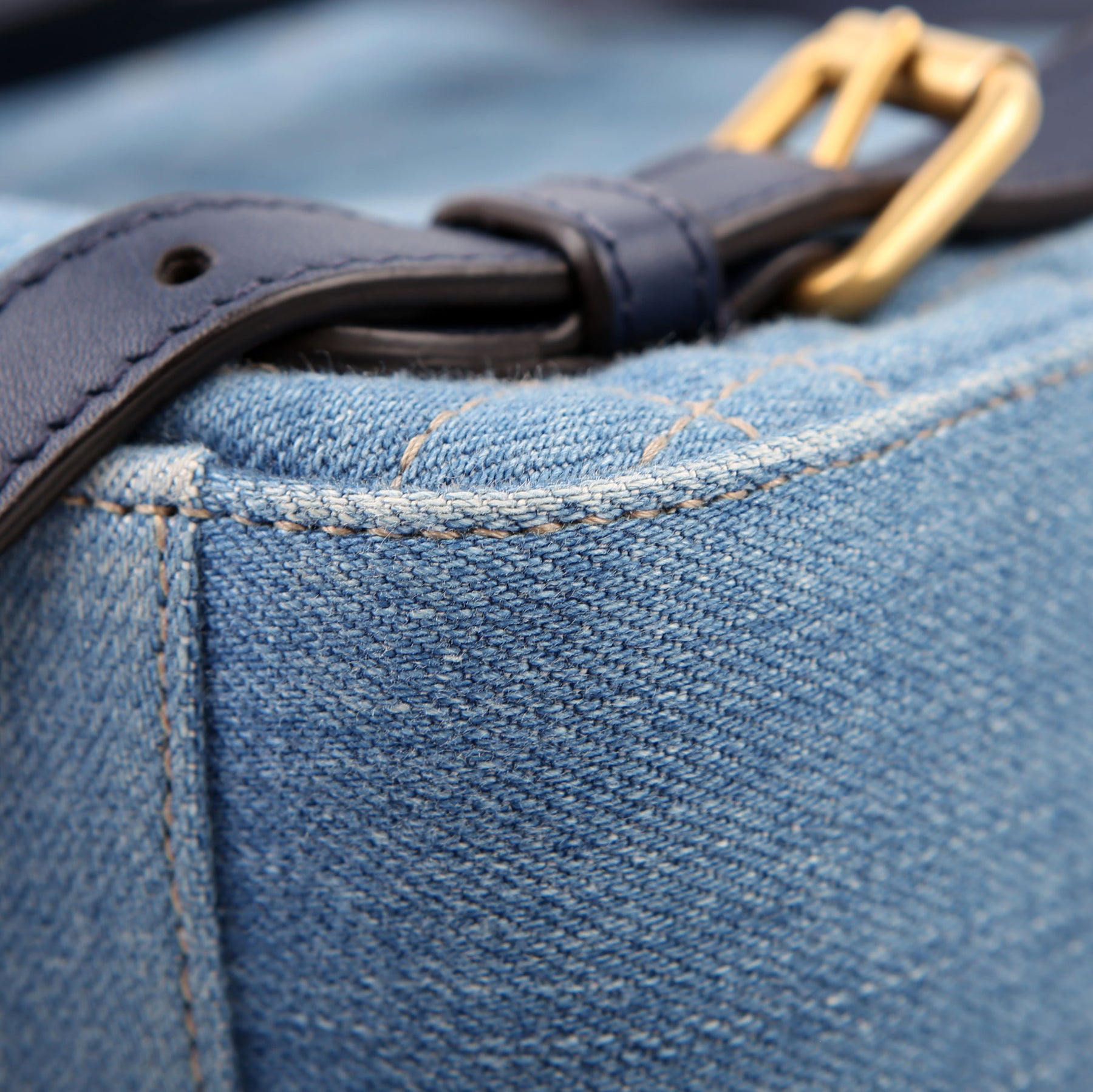 Exterior: The exterior denim has light wear to the base.