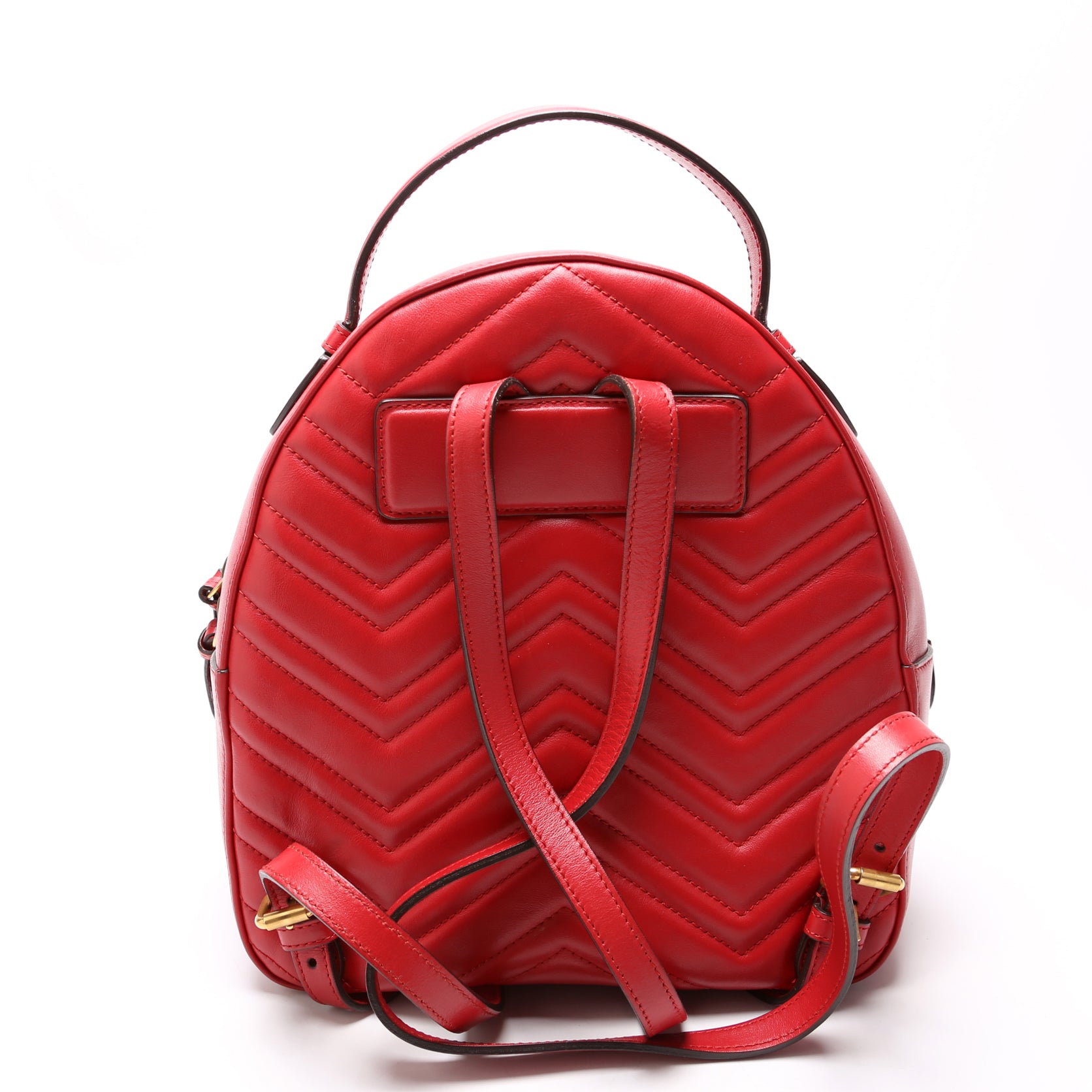 This pre-owned Gucci Marmont Backpack is guaranteed 100% authentic. The exterior is in the classic Gucci Marmont leather.