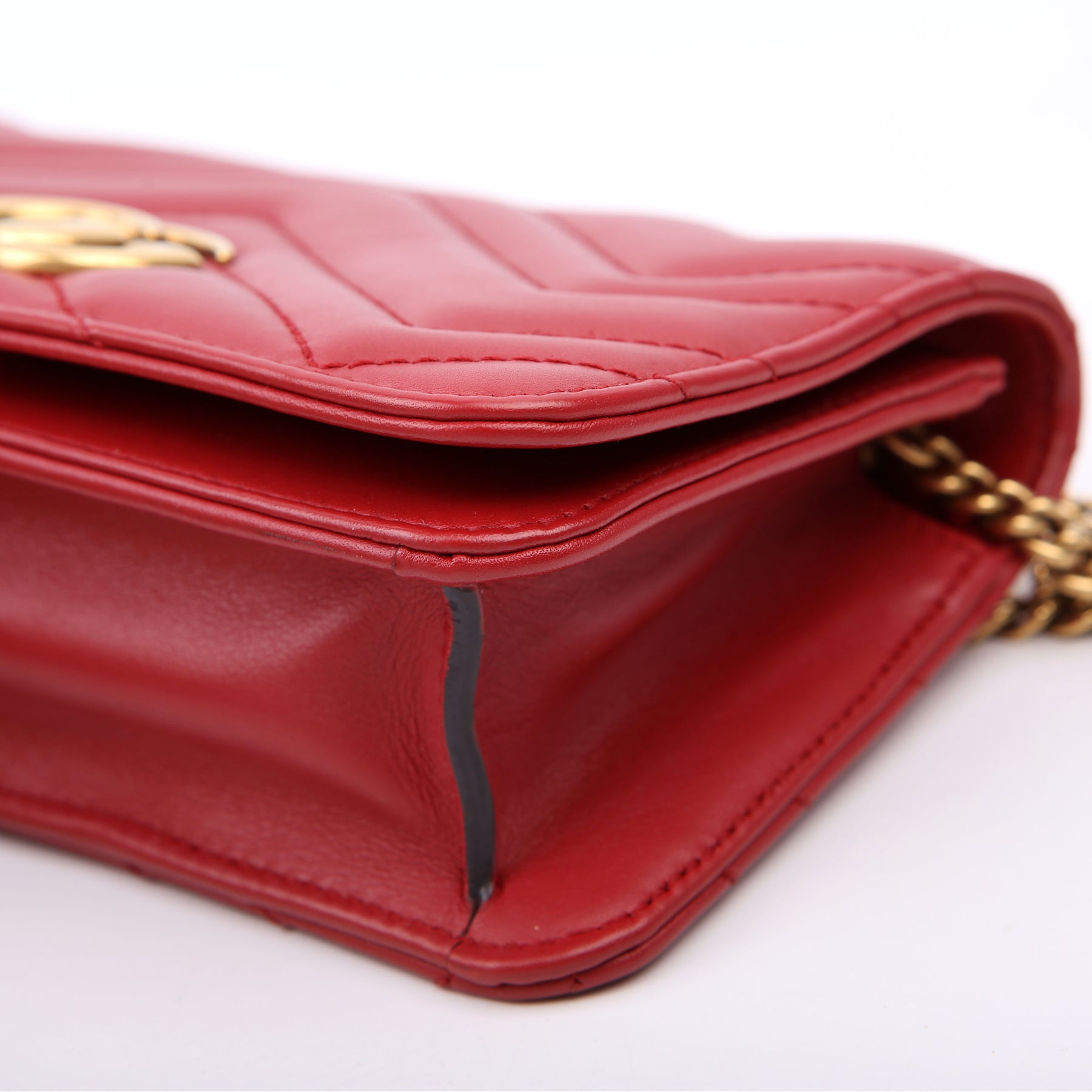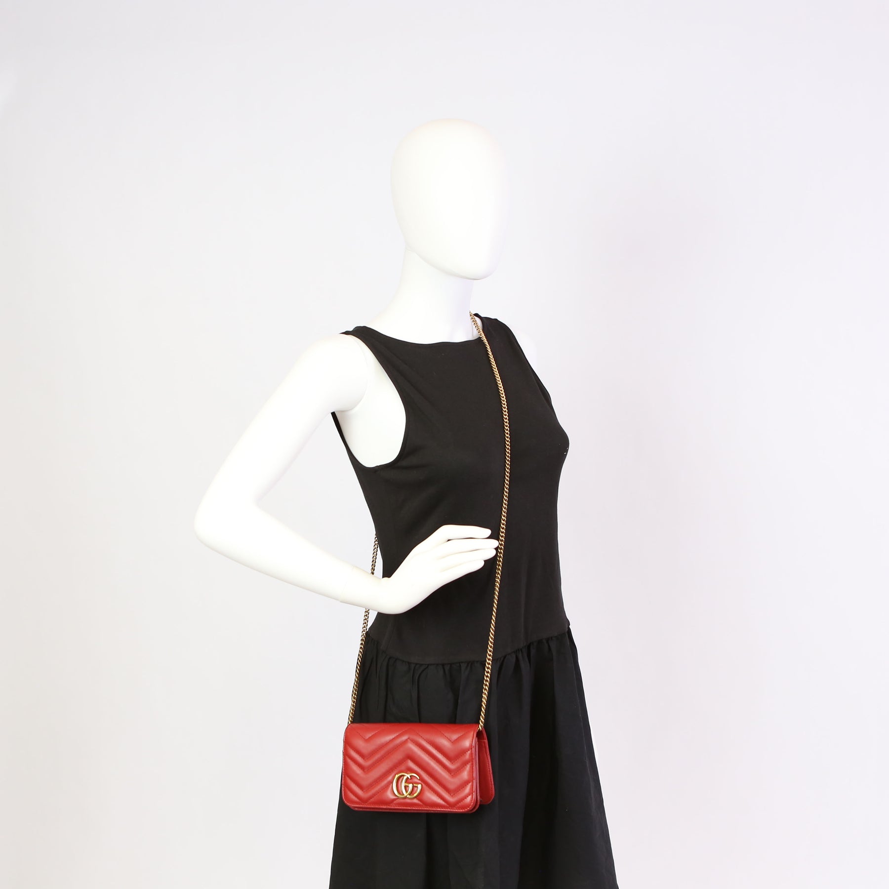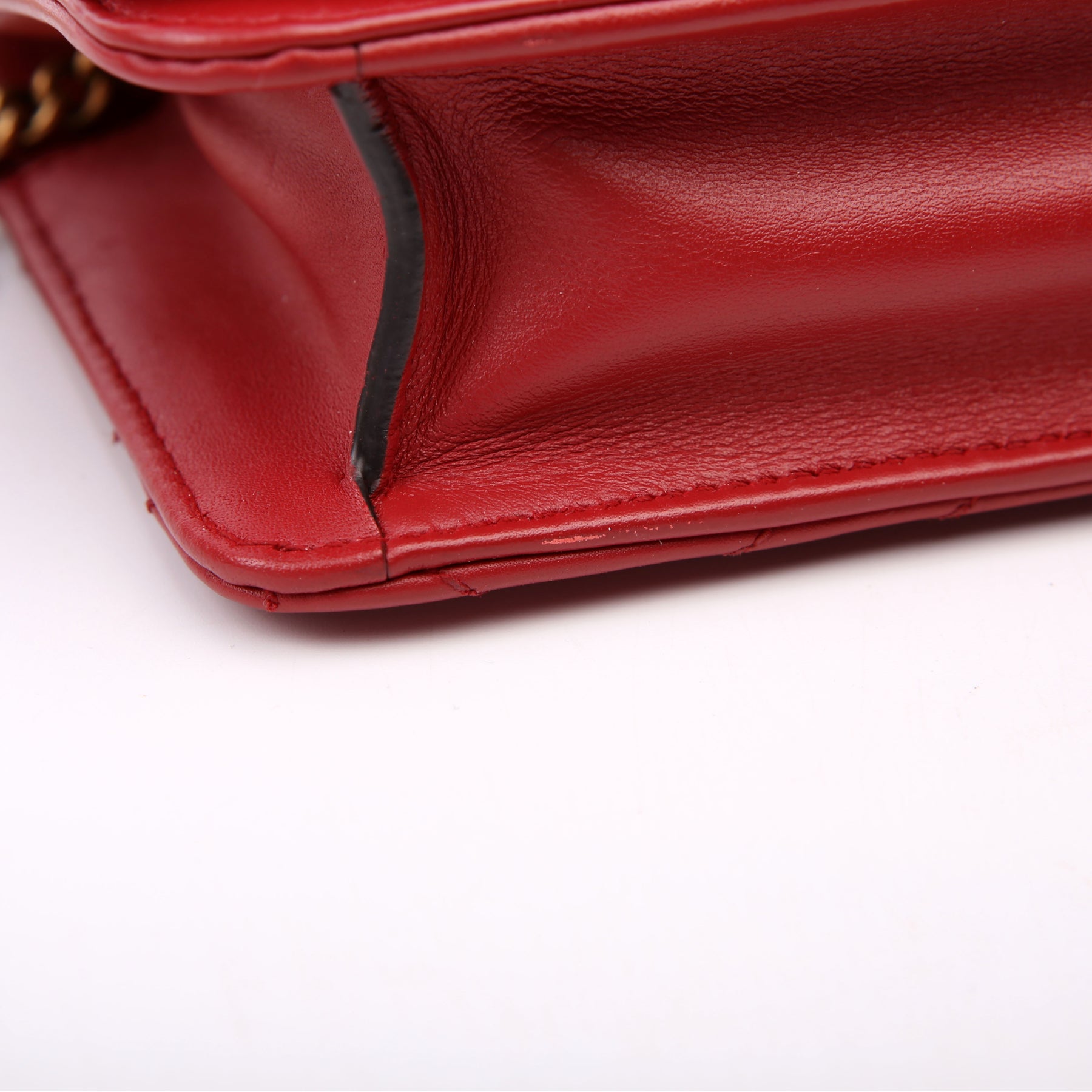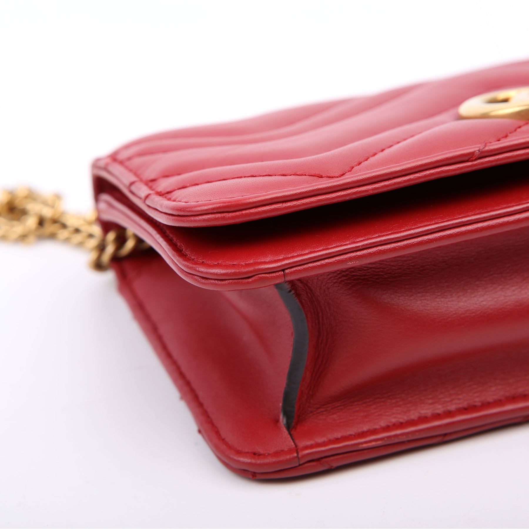 This pre-owned Gucci GG Marmont Mini Bag is guaranteed 100% authentic. The exterior is in the classic Gucci Marmont leather.