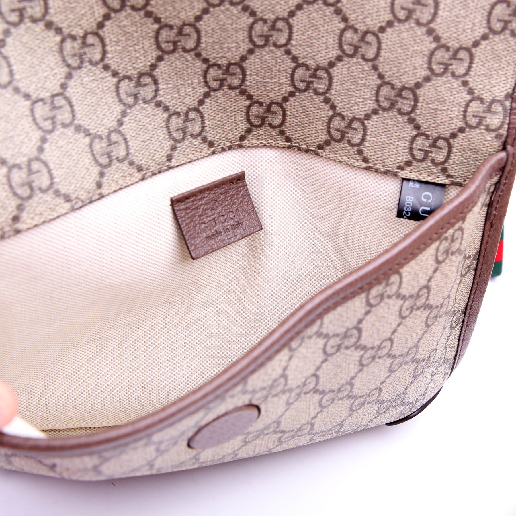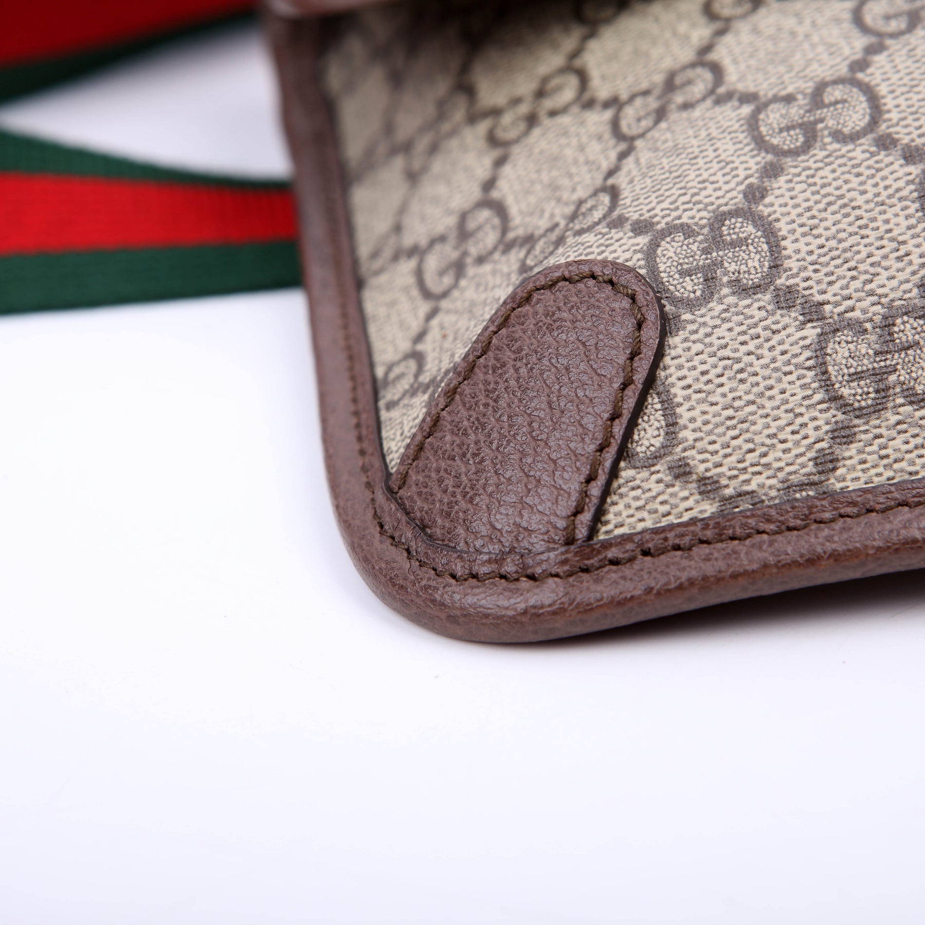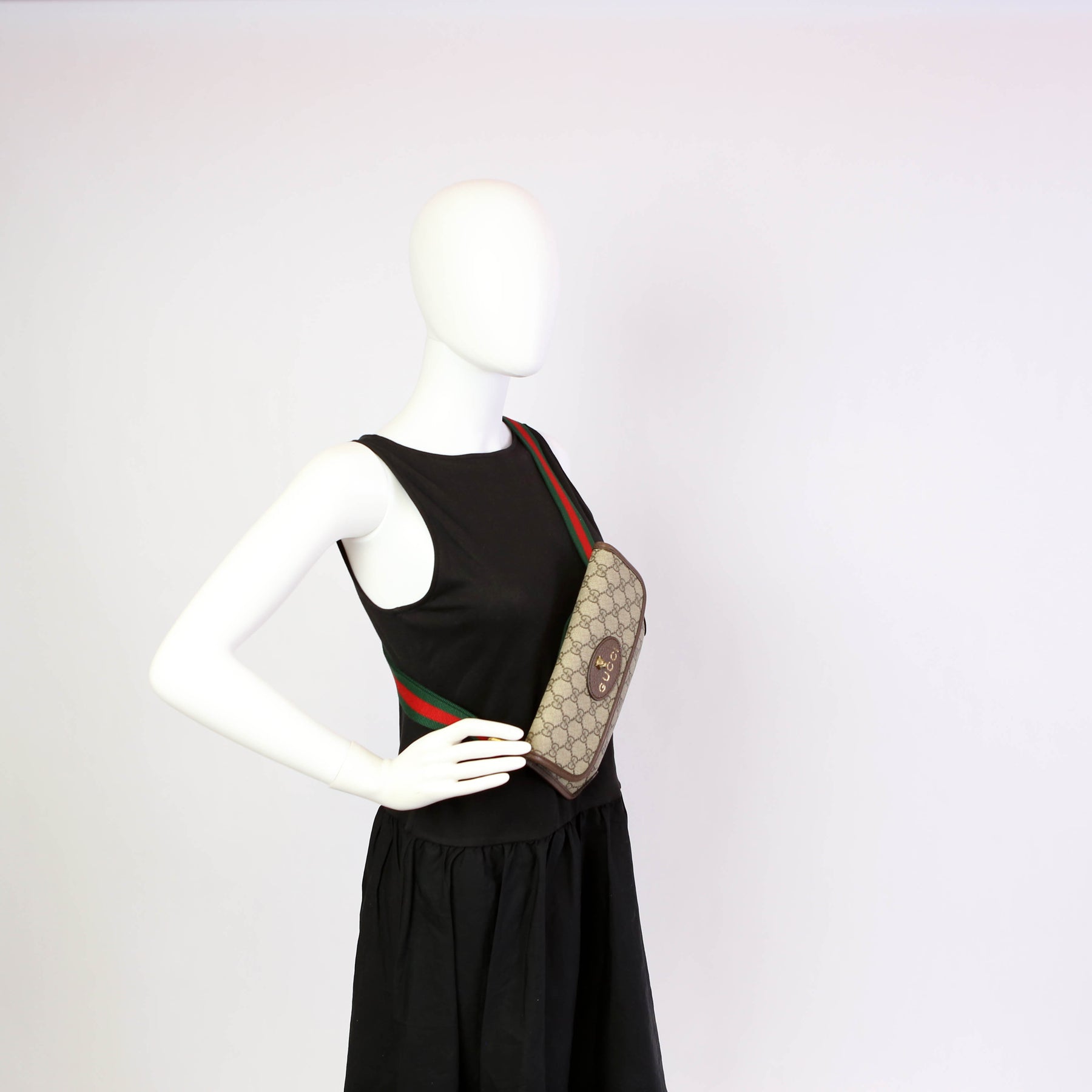 This pre-owned Gucci GG Supreme Neo Web Belt Bag is guaranteed 100% authentic. The exterior is in the classic Gucci GG Supreme coated canvas.