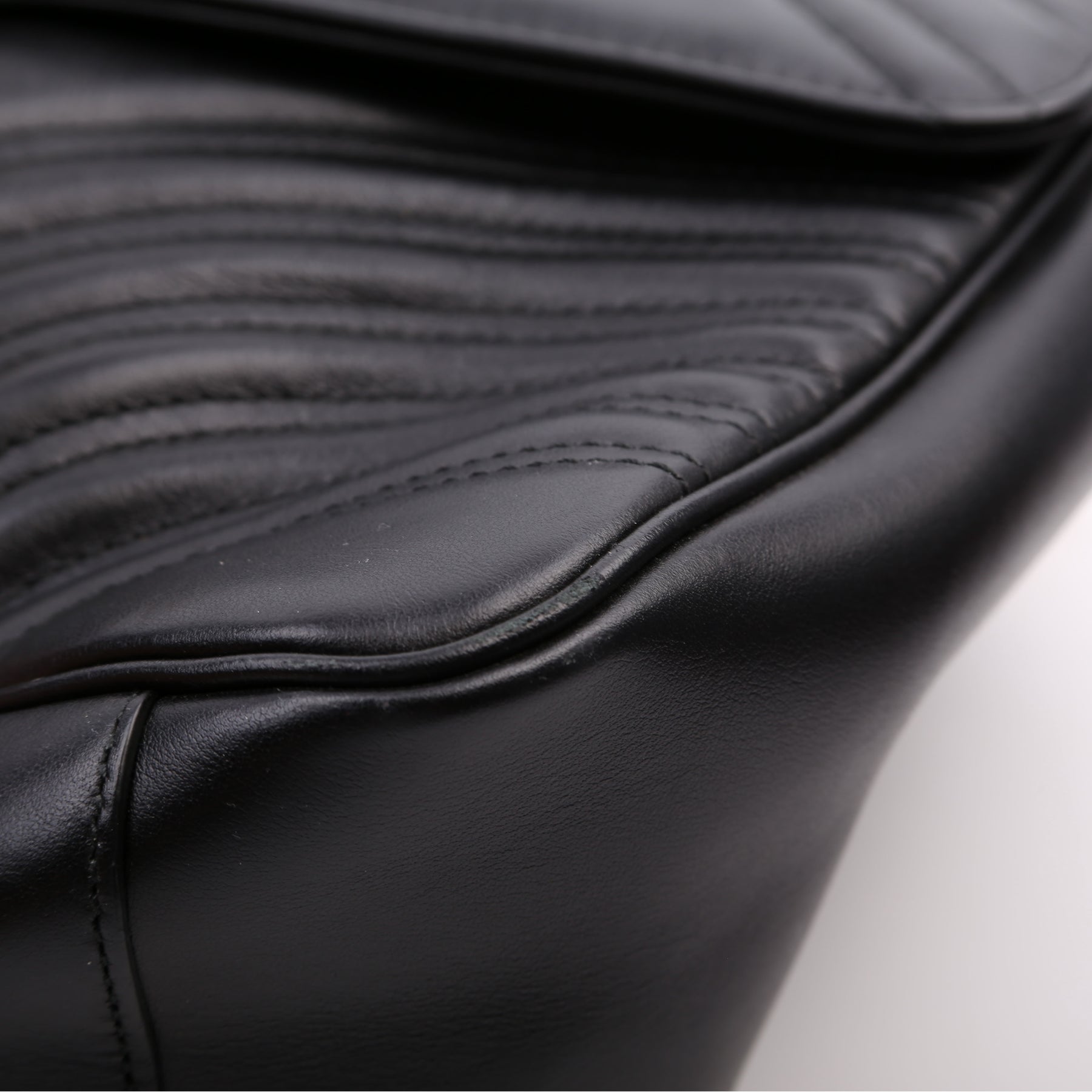 Exterior: The exterior leather is free from any rips or cracks, there are minor scuffs and scratches throughout. The corners and edges show minor rubbing.