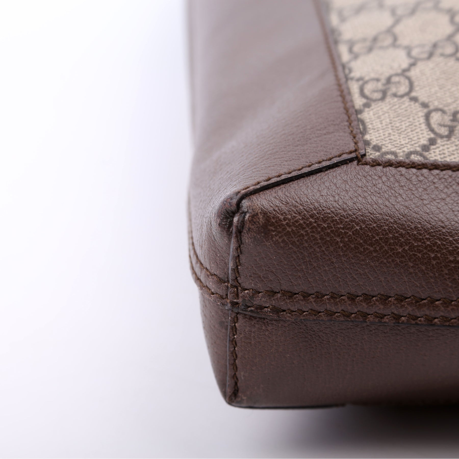 Exterior: The exterior coated canvas is free of any rips or cracks. There are light scuffs along the leather. The corners and edges show minor wear.