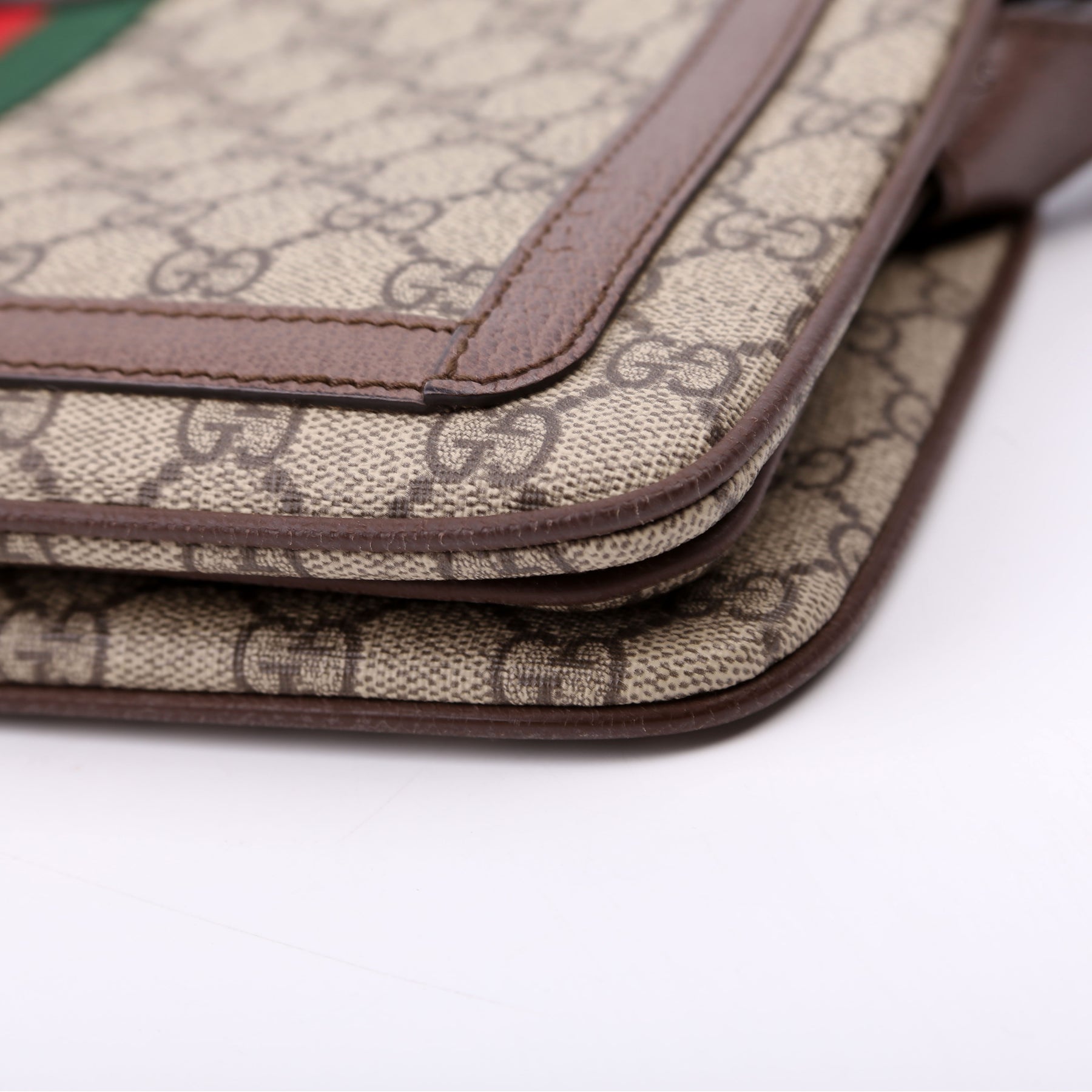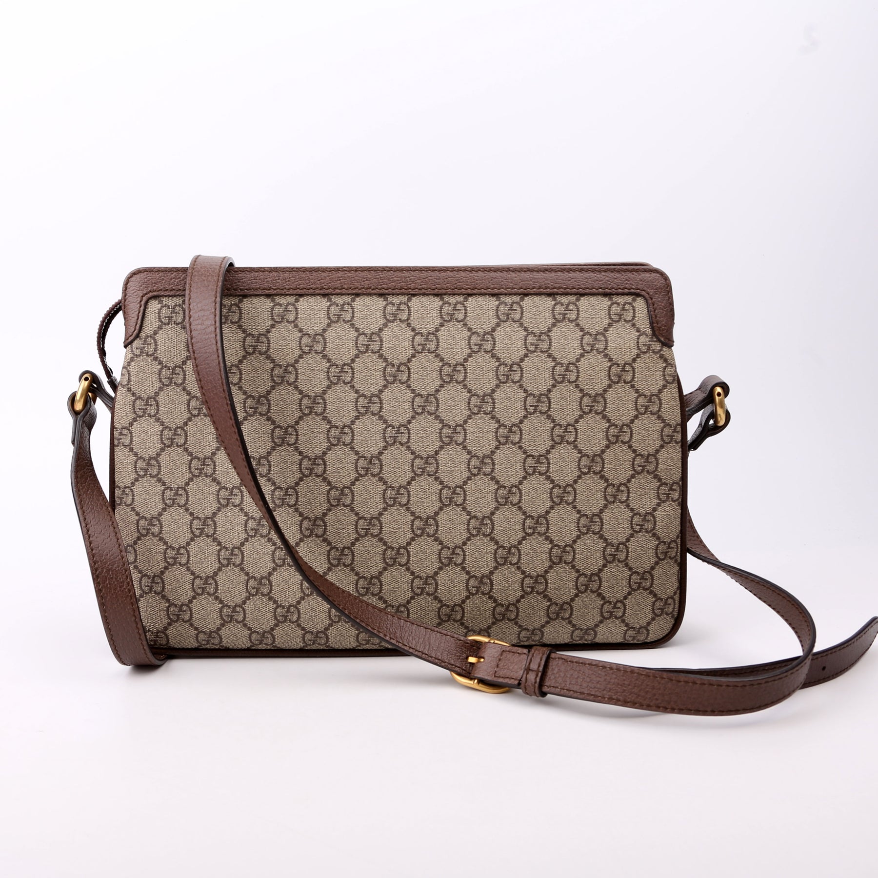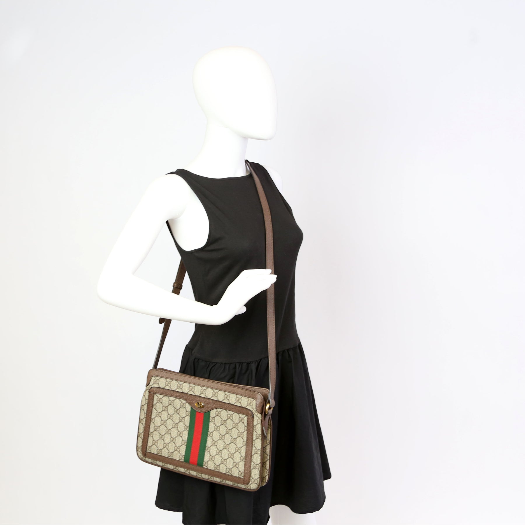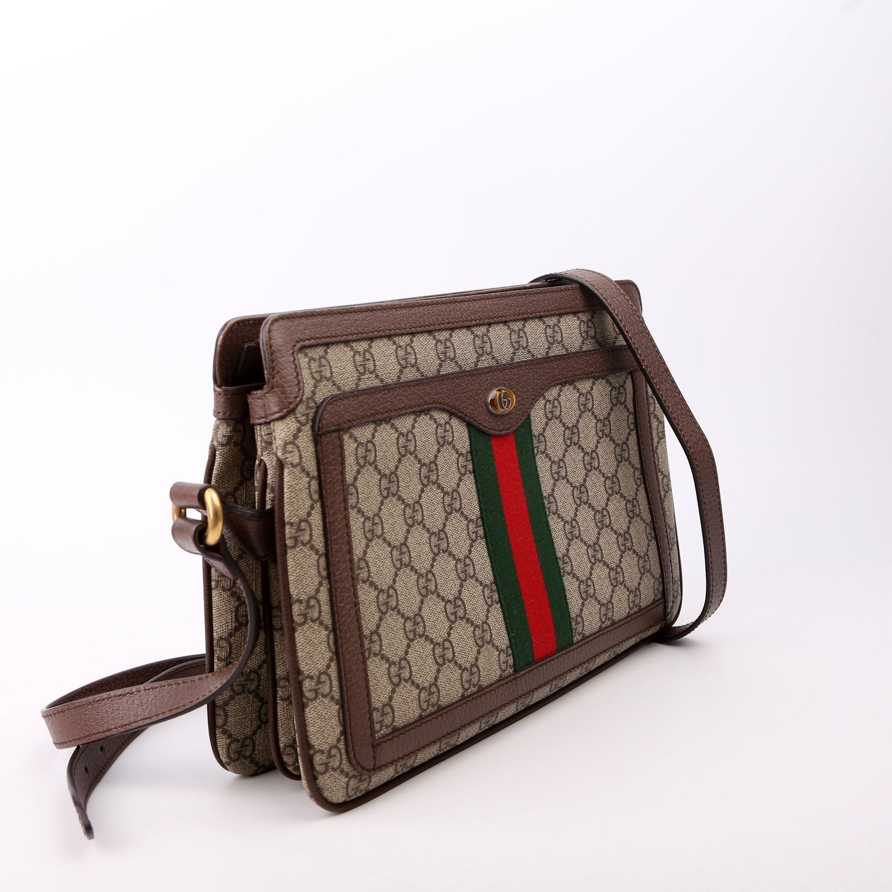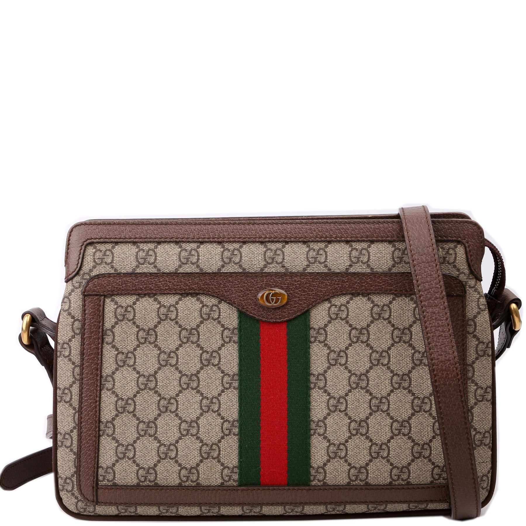 This pre-owned Gucci GG Supreme Ophidia Medium Shoulder Bag is guaranteed 100% authentic. The exterior is in the classic Gucci GG Supreme coated canvas.