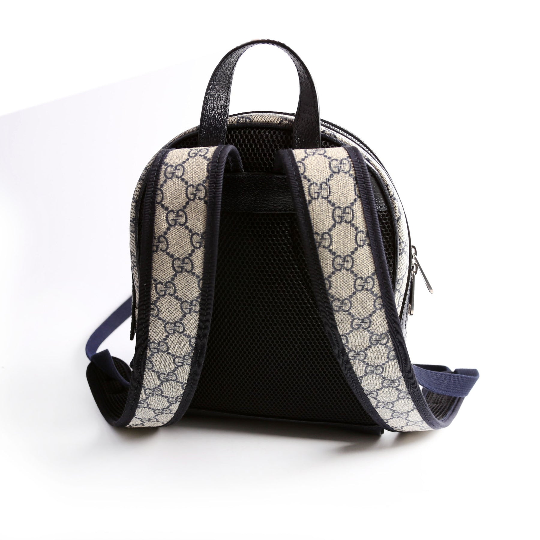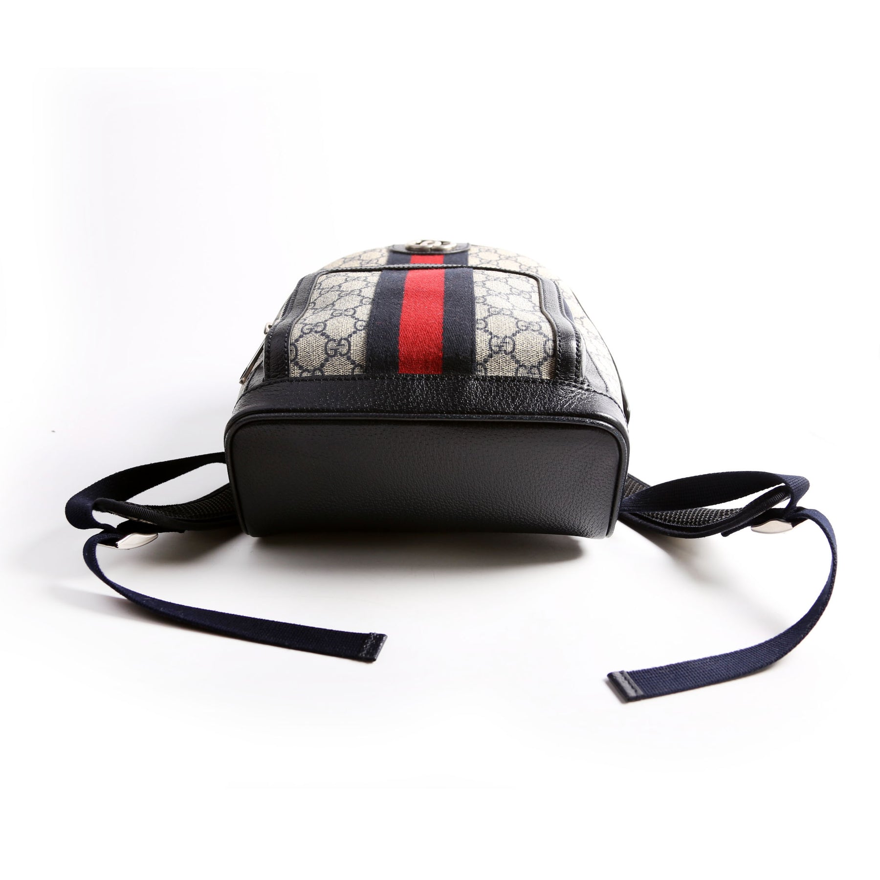 This pre-owned Gucci Ophidia Backpack is guaranteed 100% authentic. The exterior is in the classic Gucci Supreme Coated Canvas
