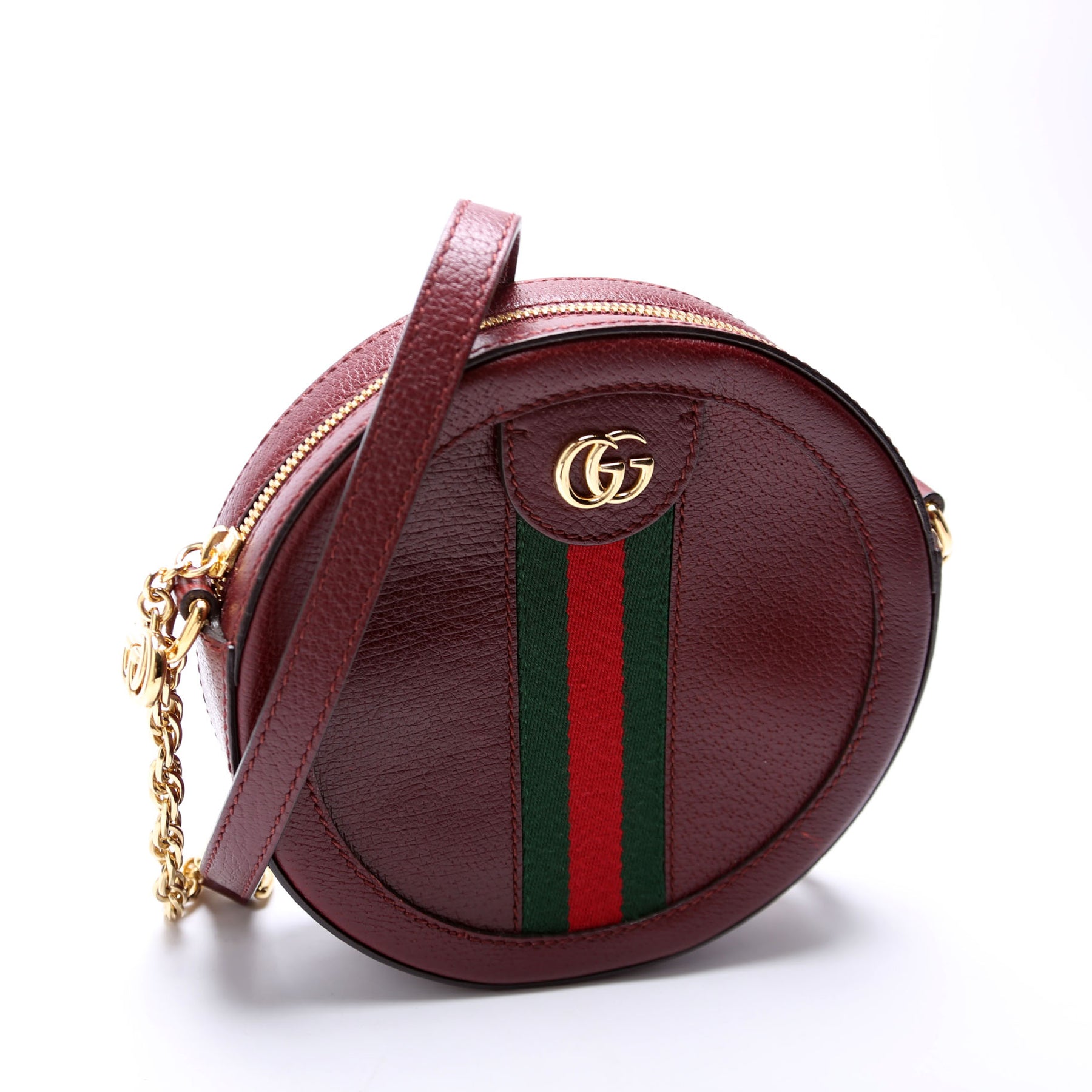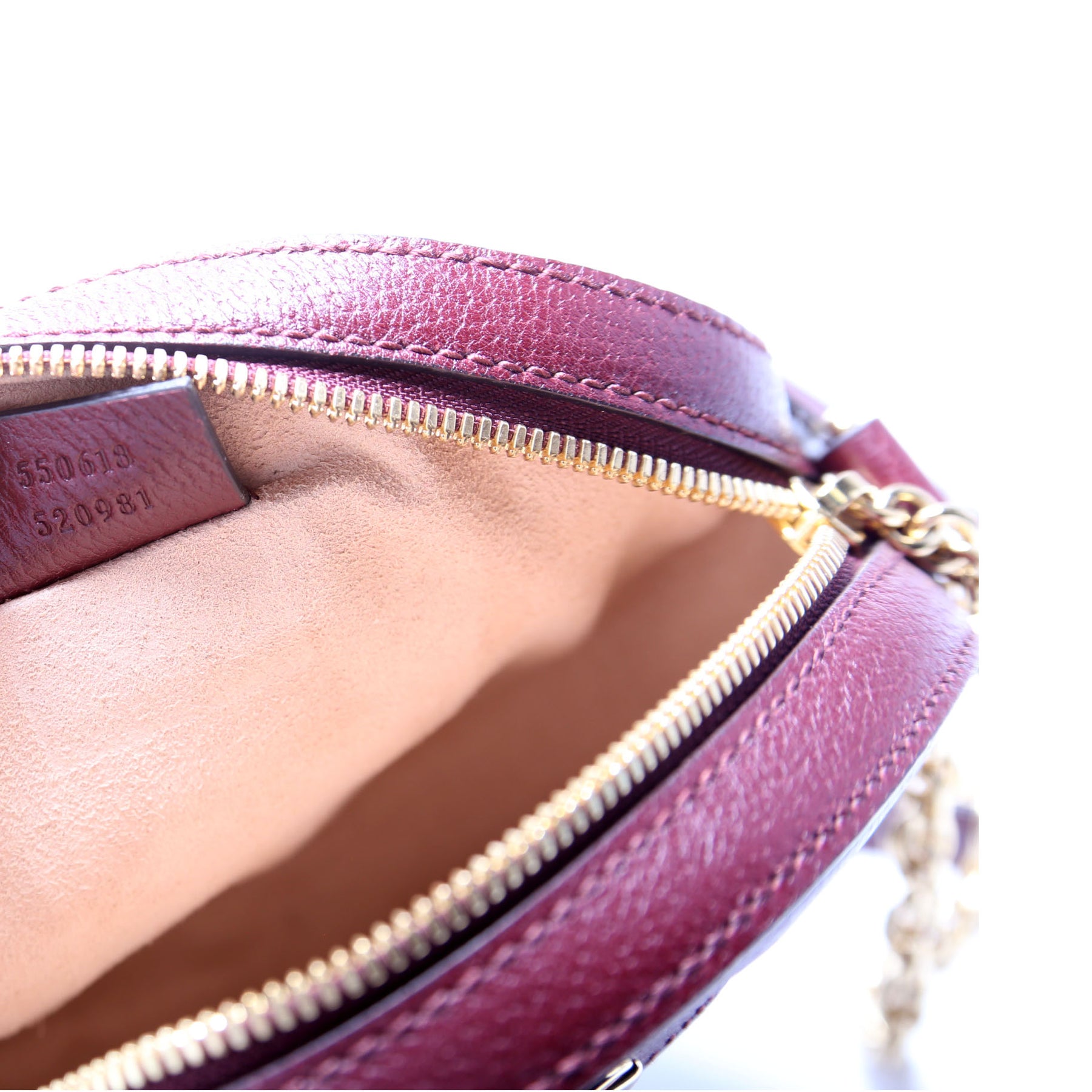 550618 Ophidia Leather Round Small Crossbody Burgundy