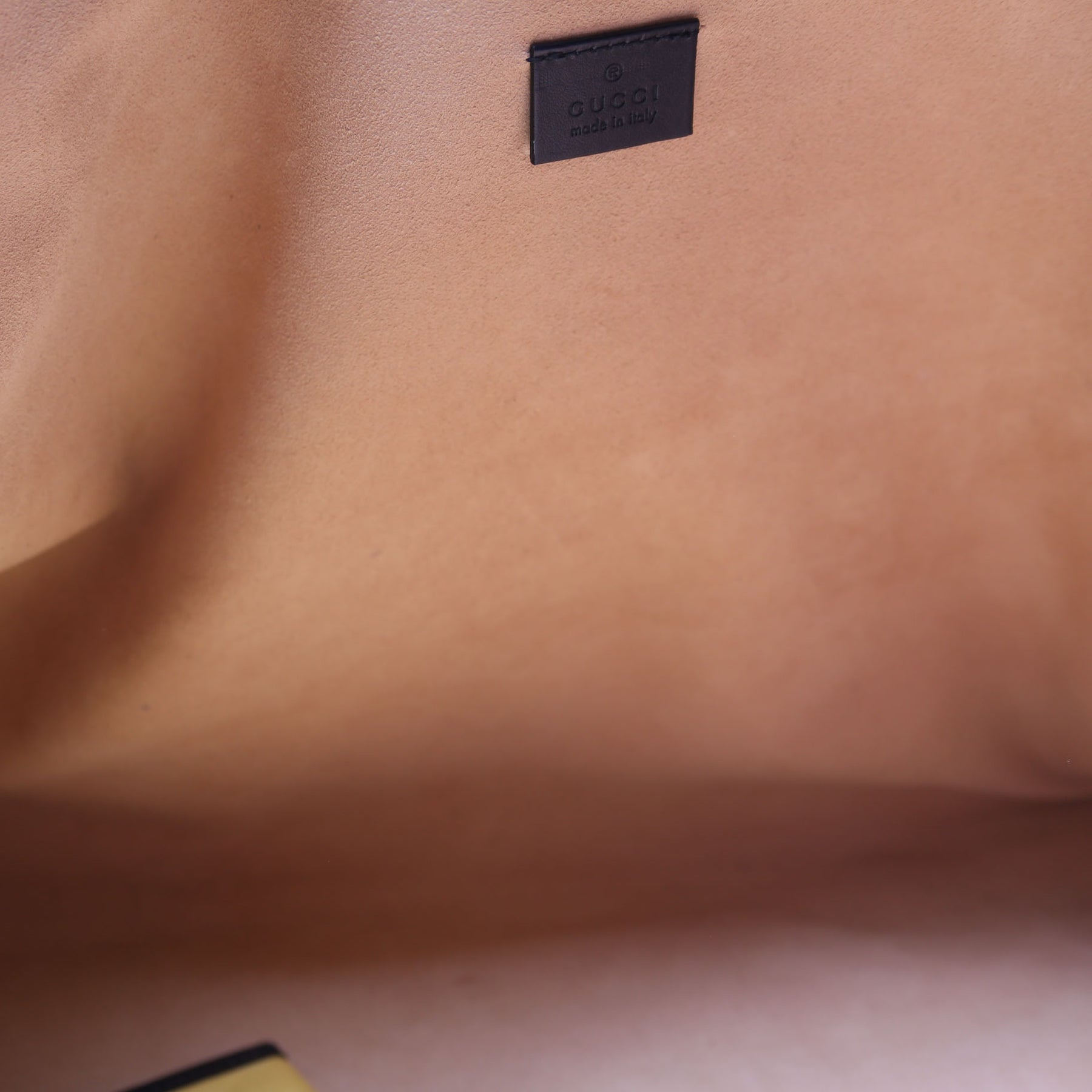 Interior: The interior is clean. The interior features one removable zip pouch. The pouch shows minor staining throughout.