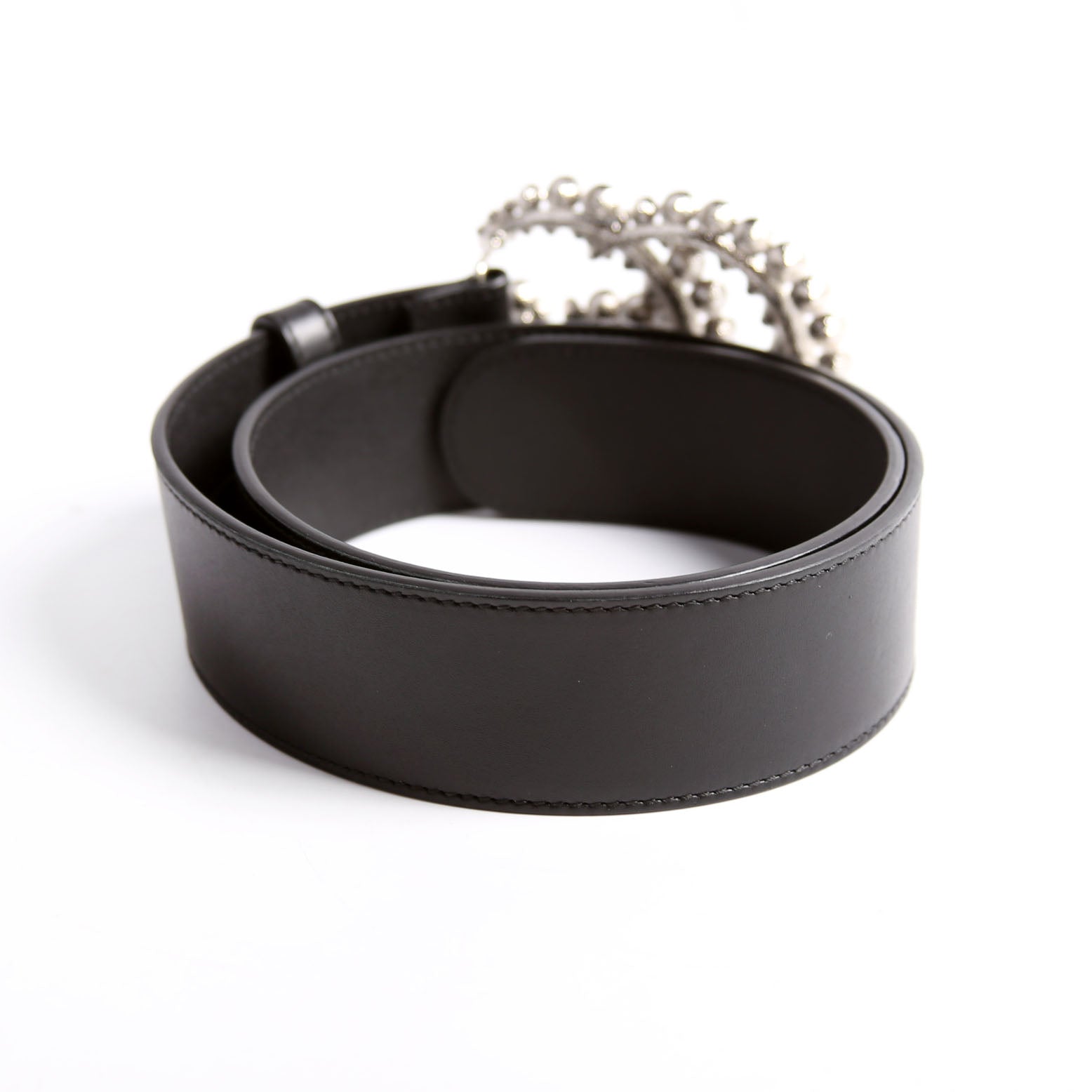 582100 Crystal Double G 40MMLeather Belt Size 70/28 Black