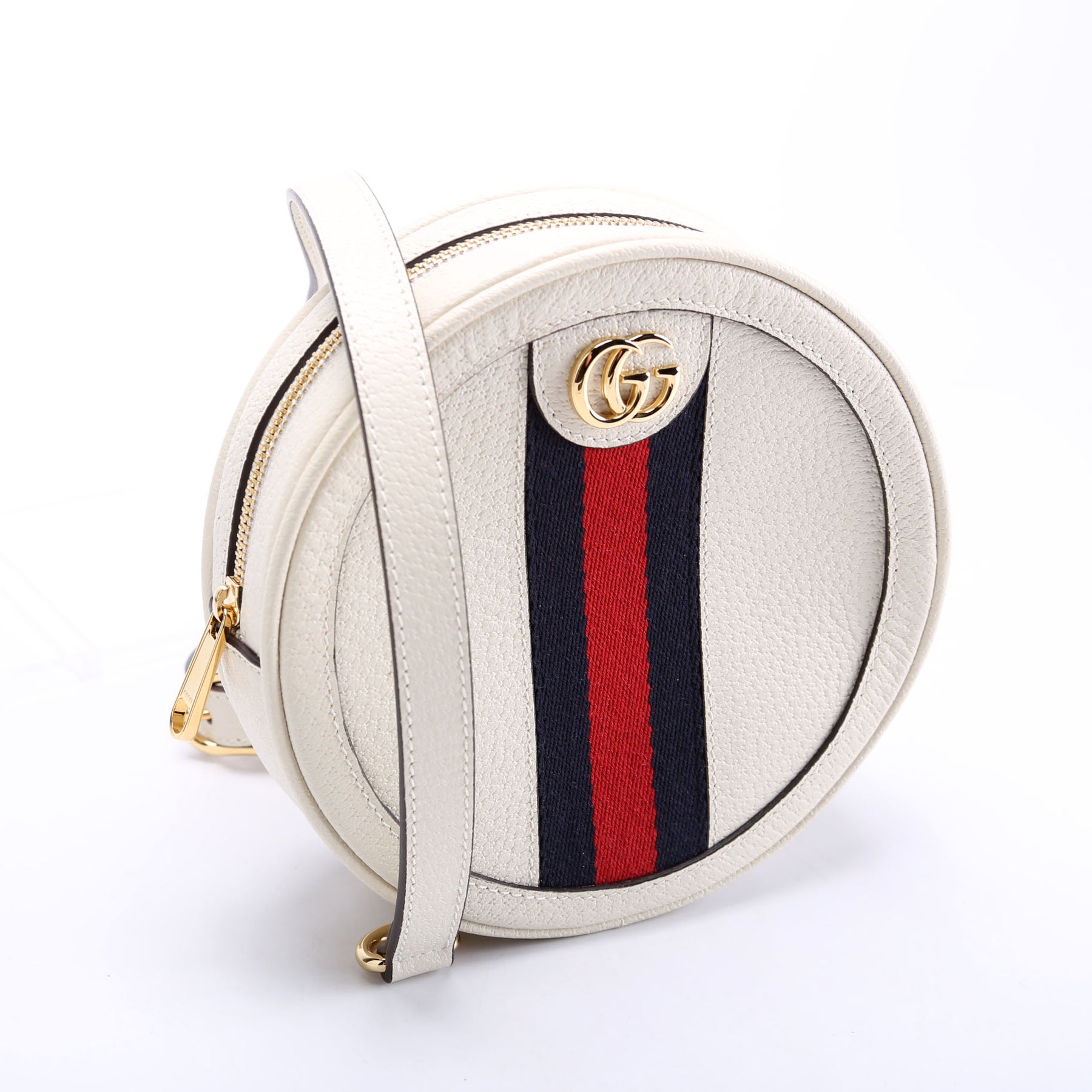 This pre-owned Gucci Ophidia Web Mini Round Backpack is guaranteed 100% authentic.