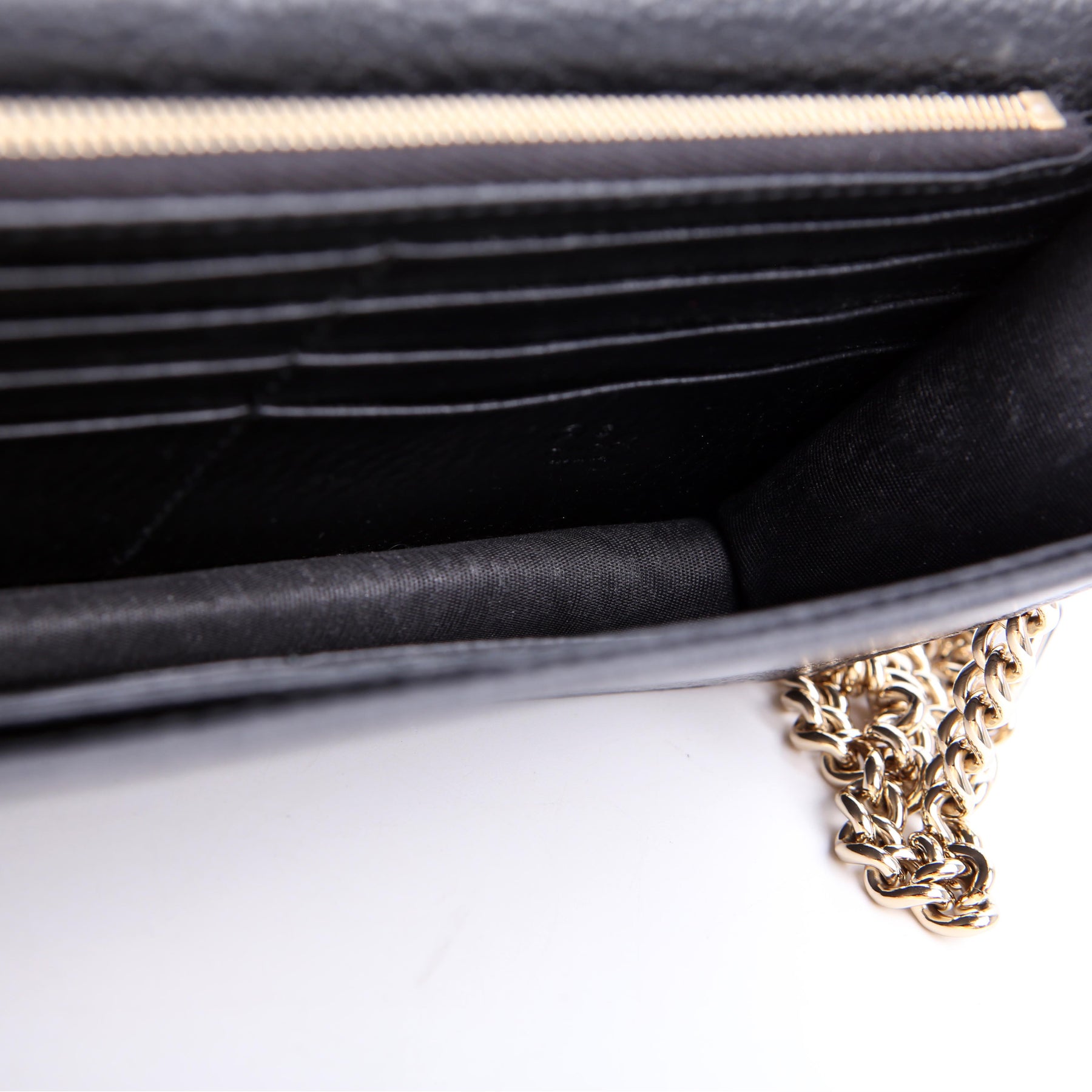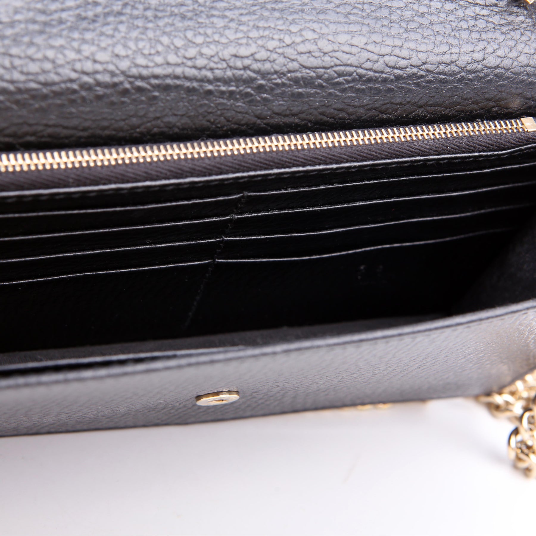 Interior: The interior has minor scuffs throughout, and features one zip closure pocket and eighteen card slots.