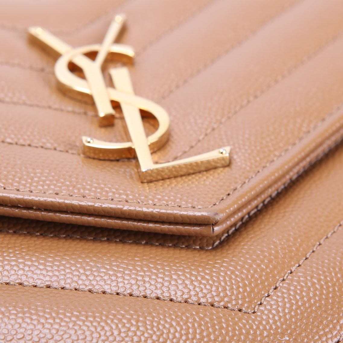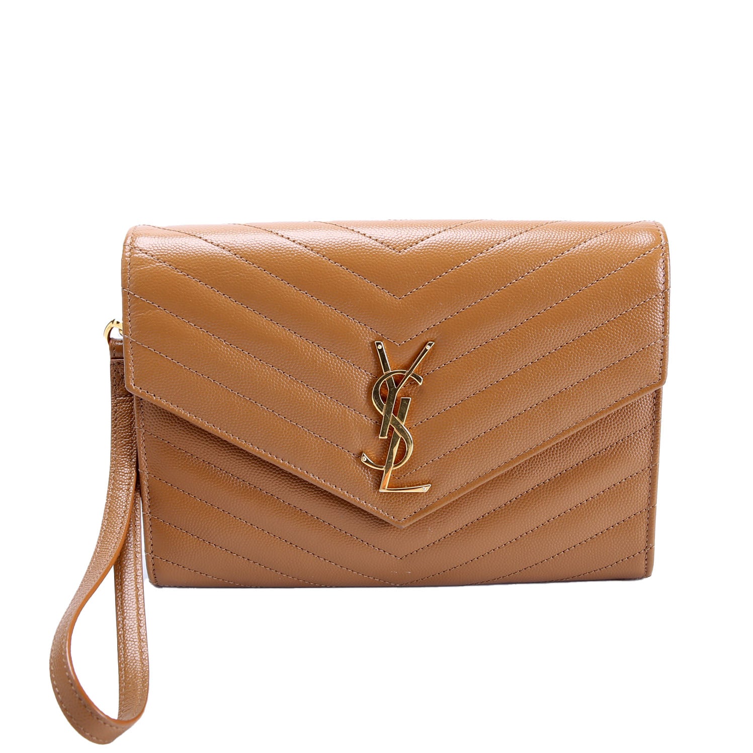 This pre-owned Saint Laurent Envelope Clutch is guaranteed 100% authentic. The exterior is in the classic Saint Laurent Grain De Poudre leather.