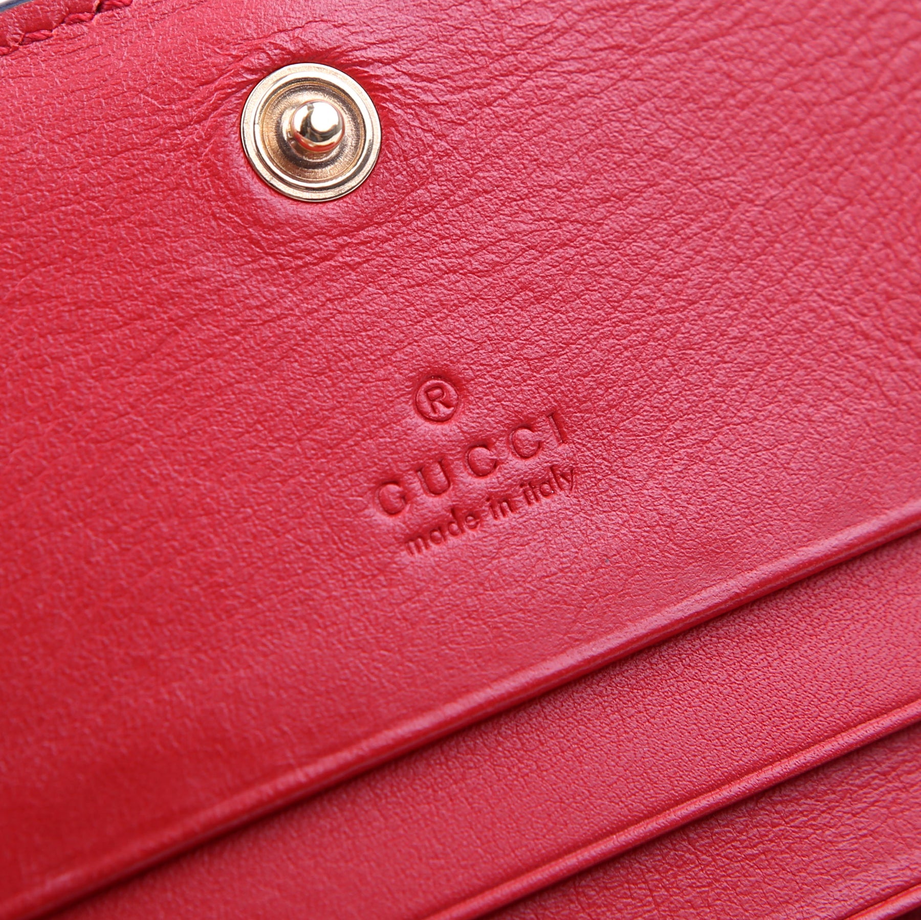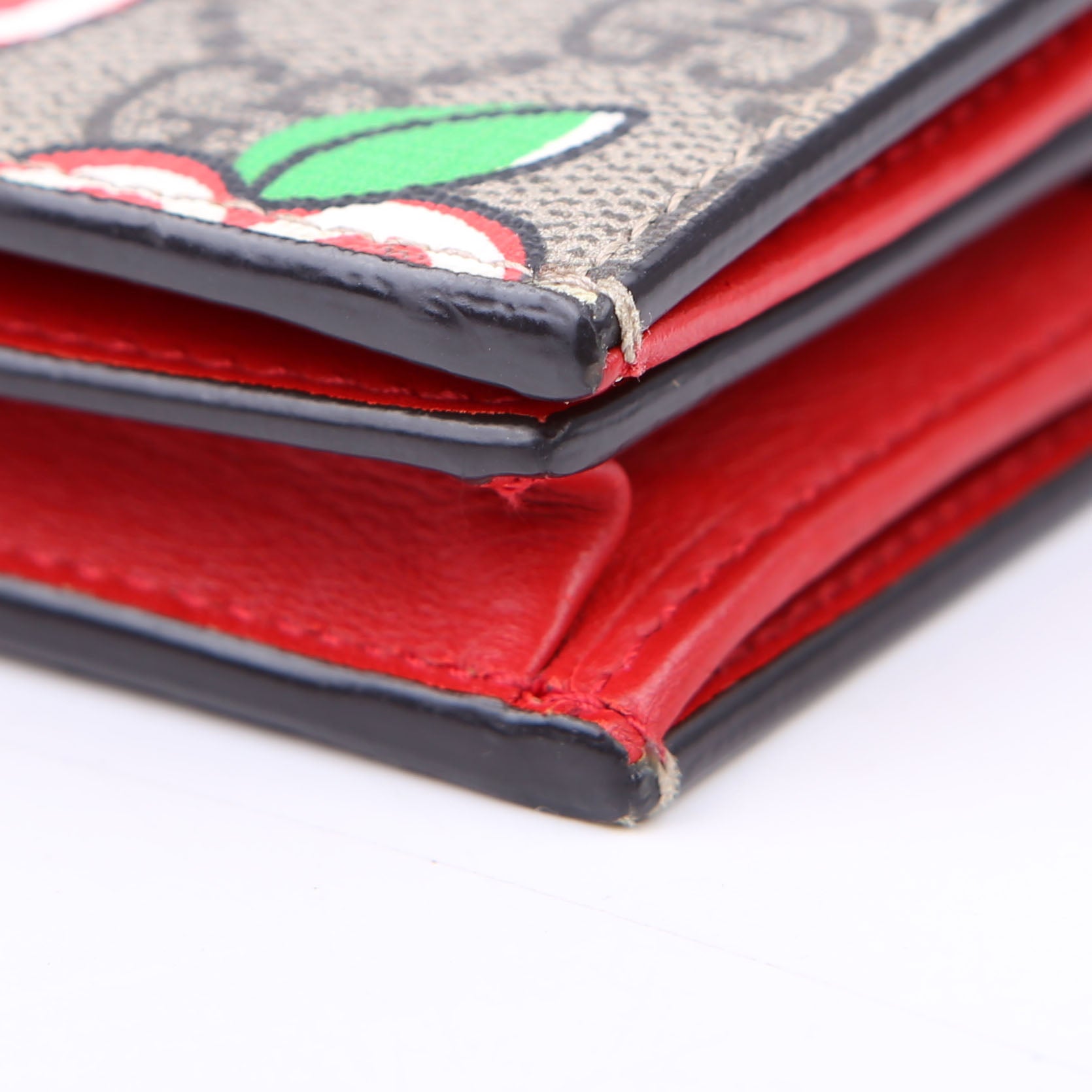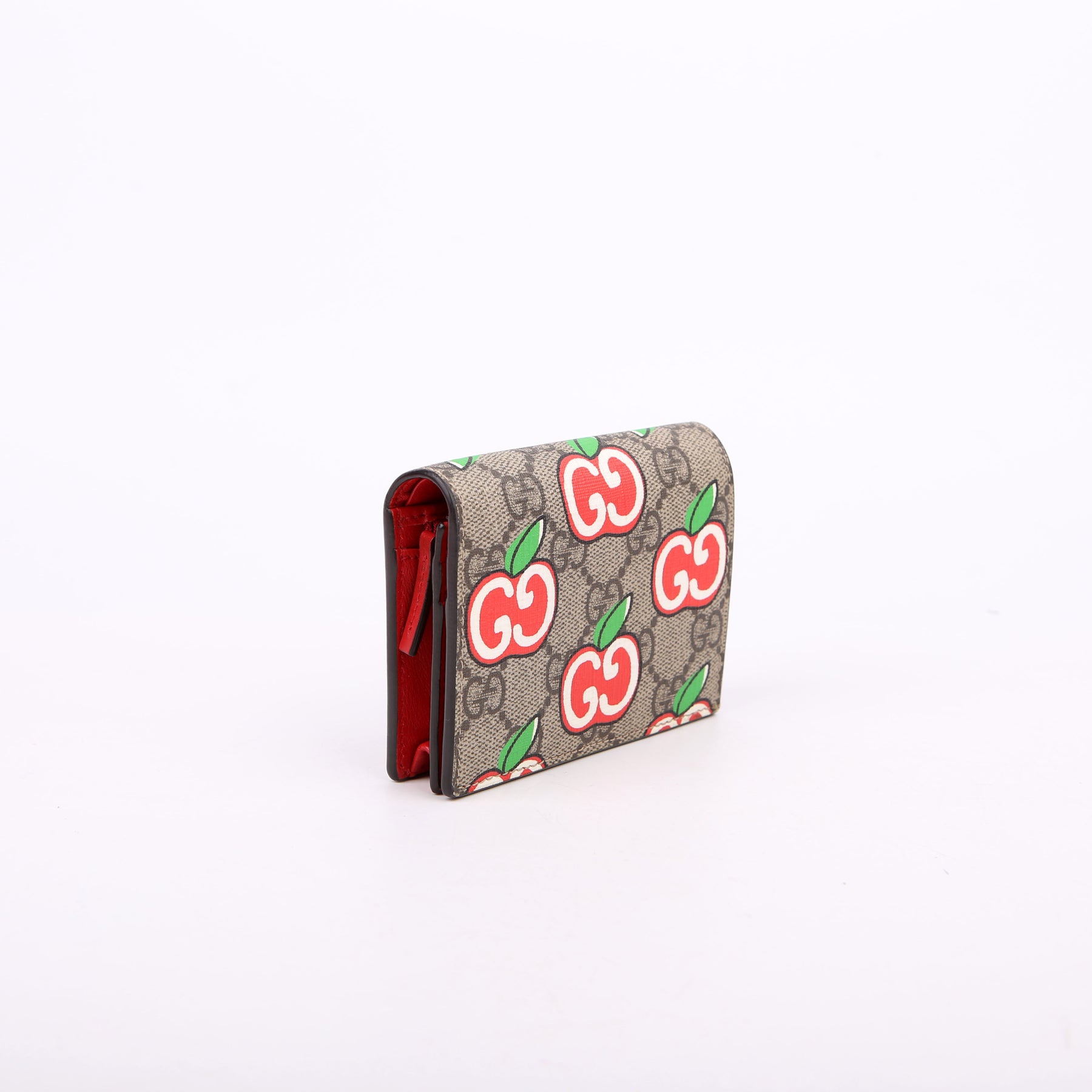 This pre-owned Gucci GG Apple Card Case is guaranteed 100% authentic. The exterior is in the classic Gucci GG Supreme coated canvas.