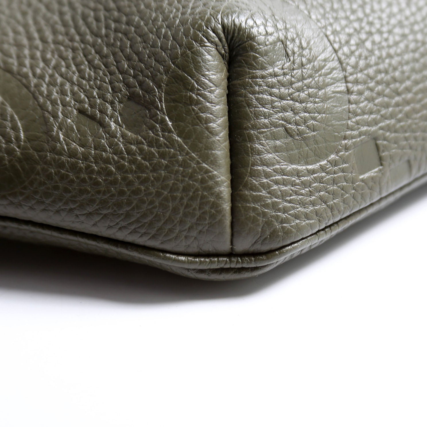 Exterior: The exterior leather is free from wear. The corners and leather piping shows light rubbing and scuffs.