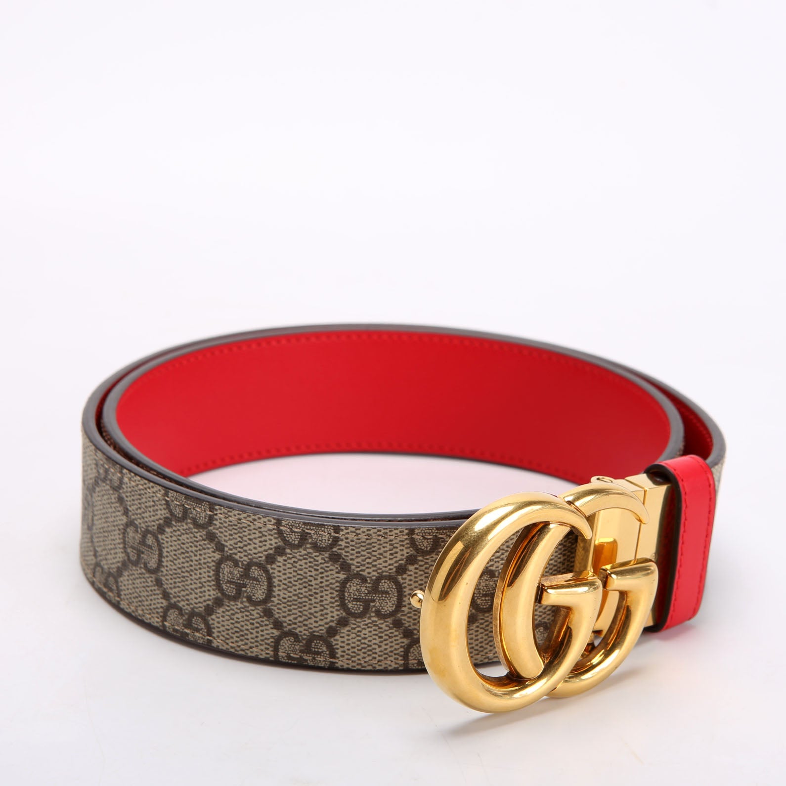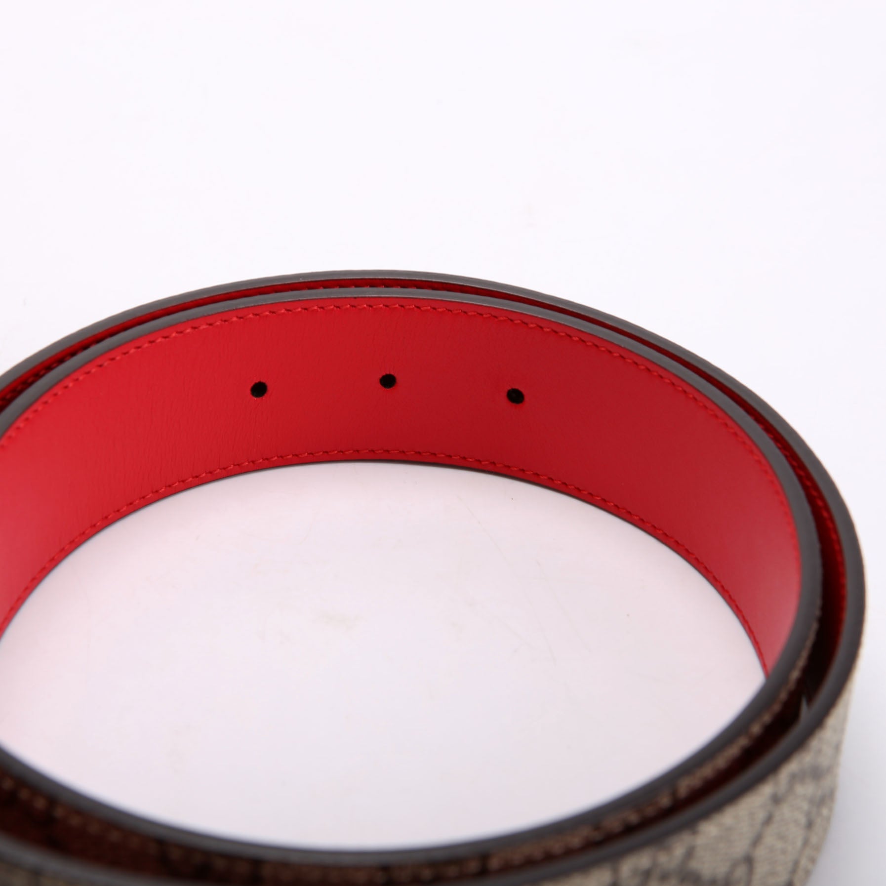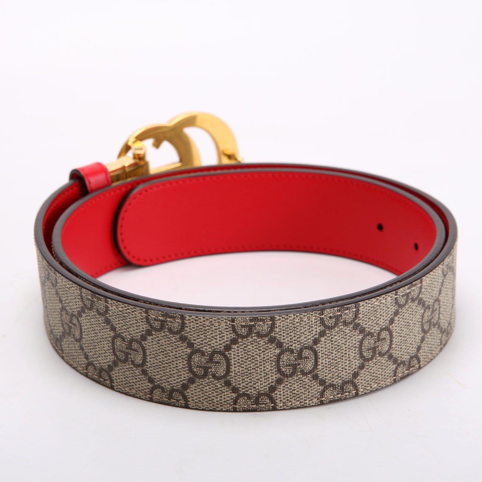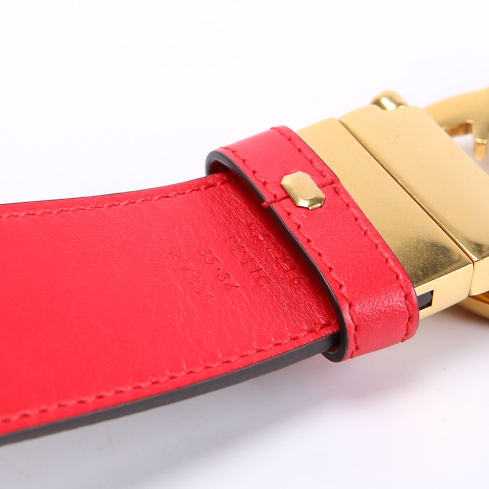 659416 GG Marmont Reversible Supreme/Leather Belt Size 85/34 Beige/Red