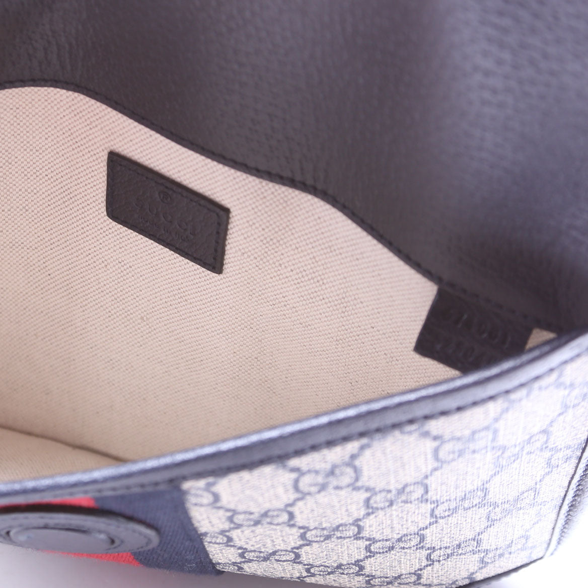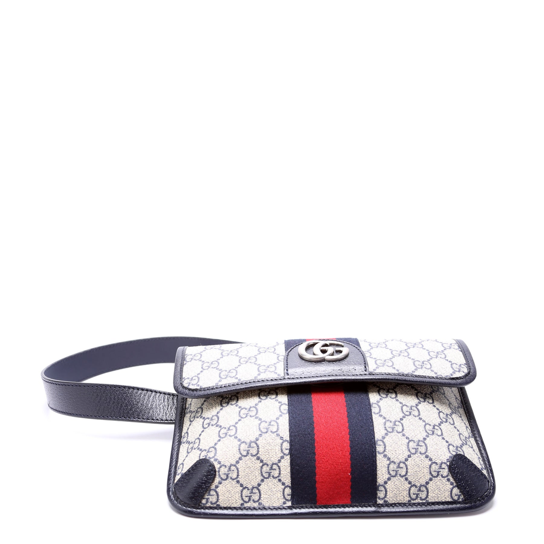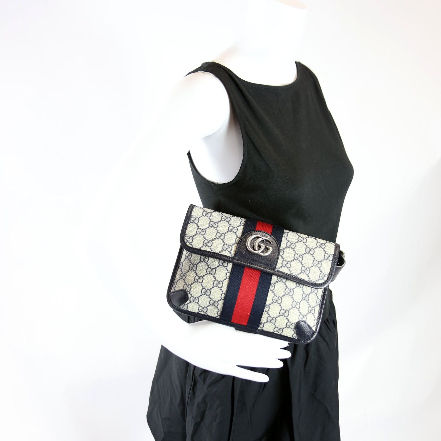 This pre-owned Gucci GG Supreme Ophidia Belt Bag is guaranteed 100% authentic. The exterior is in the classic Gucci GG Supreme coated canvas.