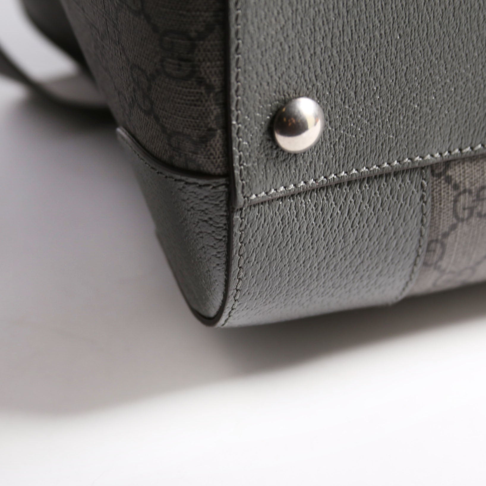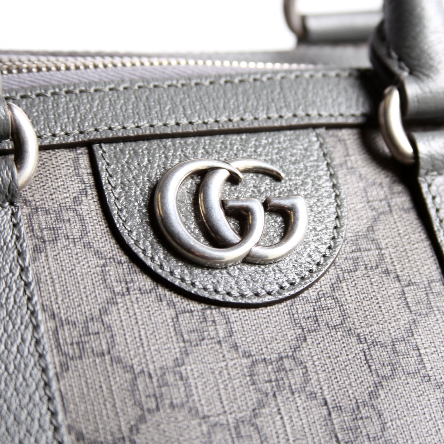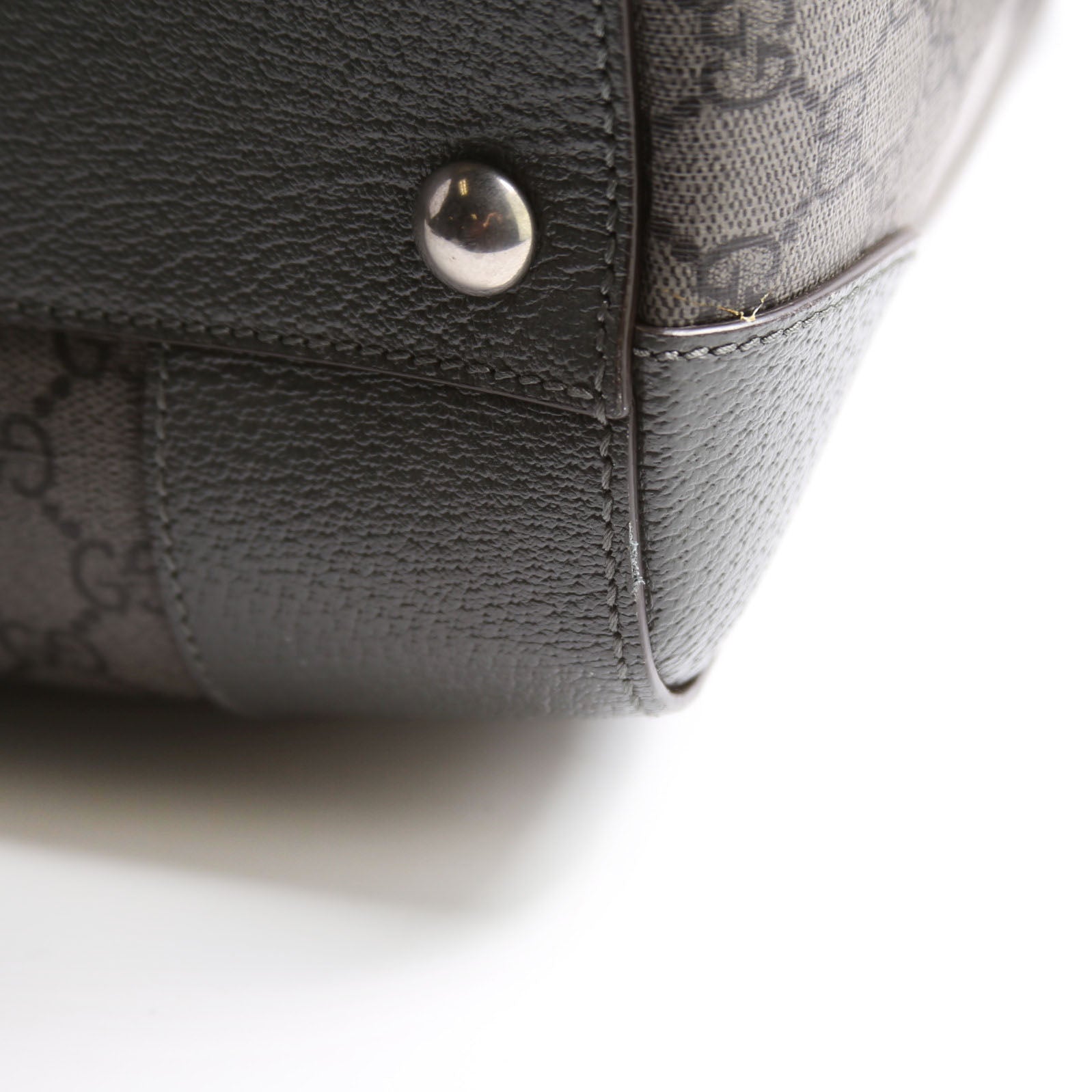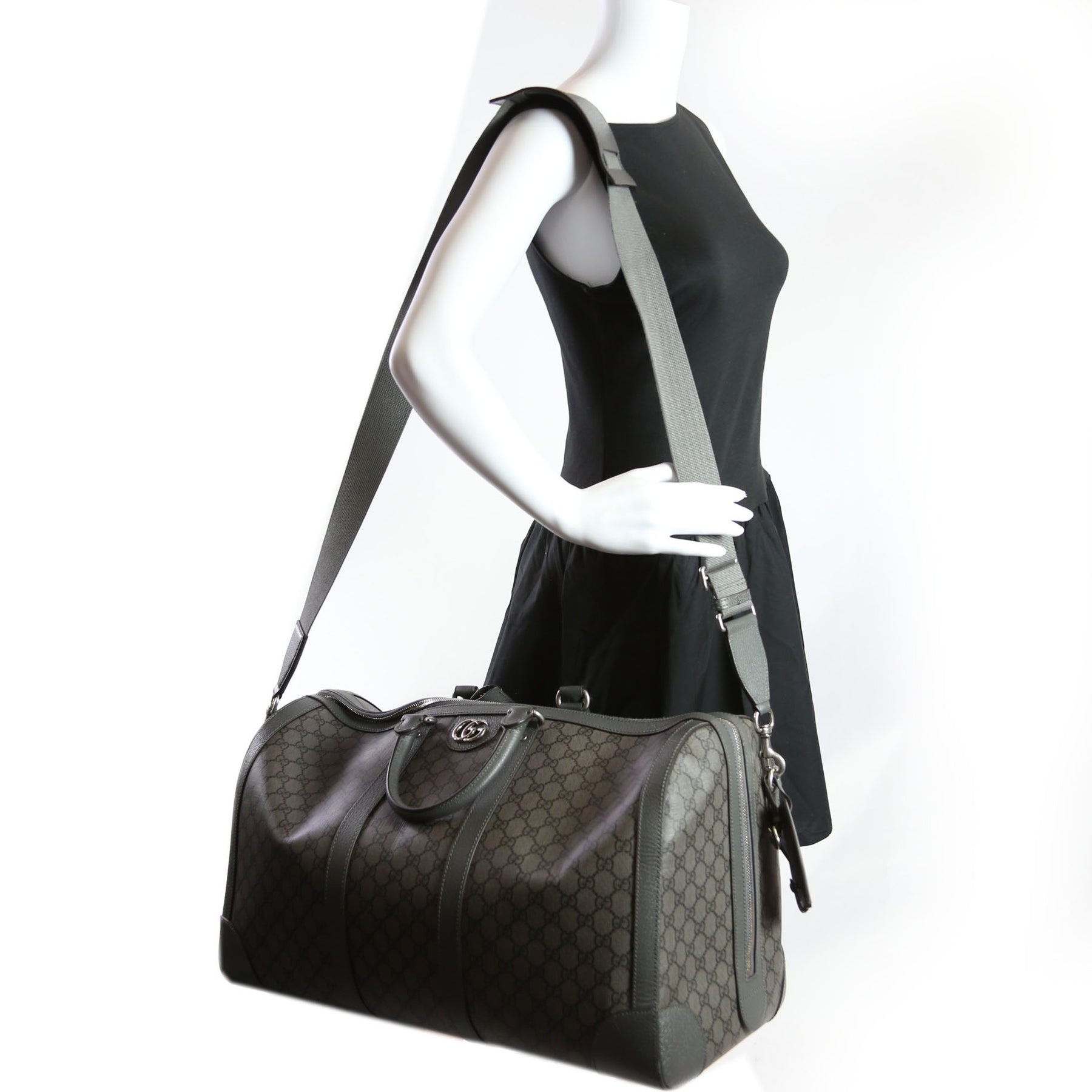This pre-owned Gucci Savoy Large Duffle Bag is guaranteed 100% authentic. The exterior is in the classic Gucci GG Supreme Coated Canvas.