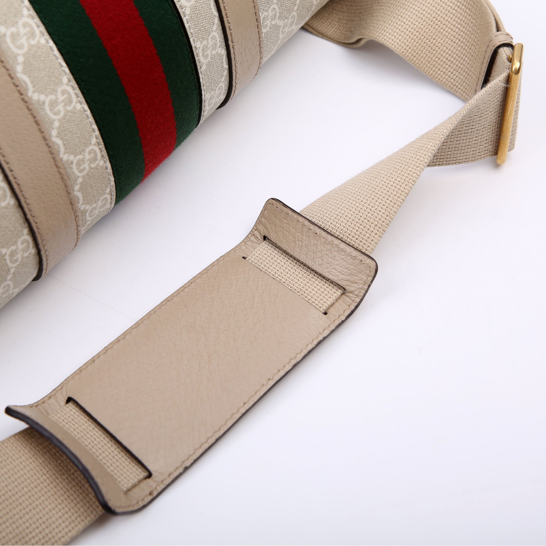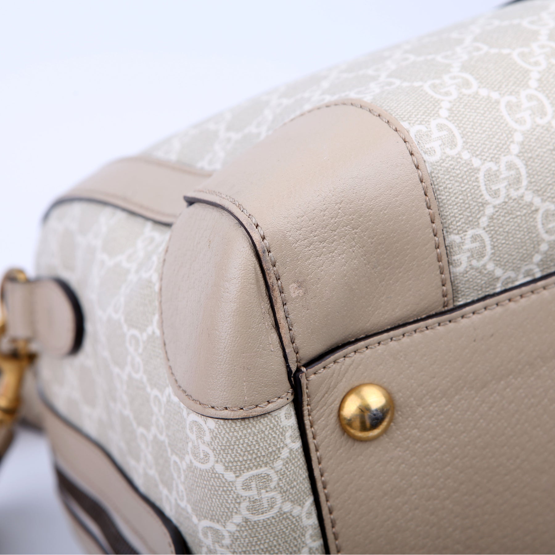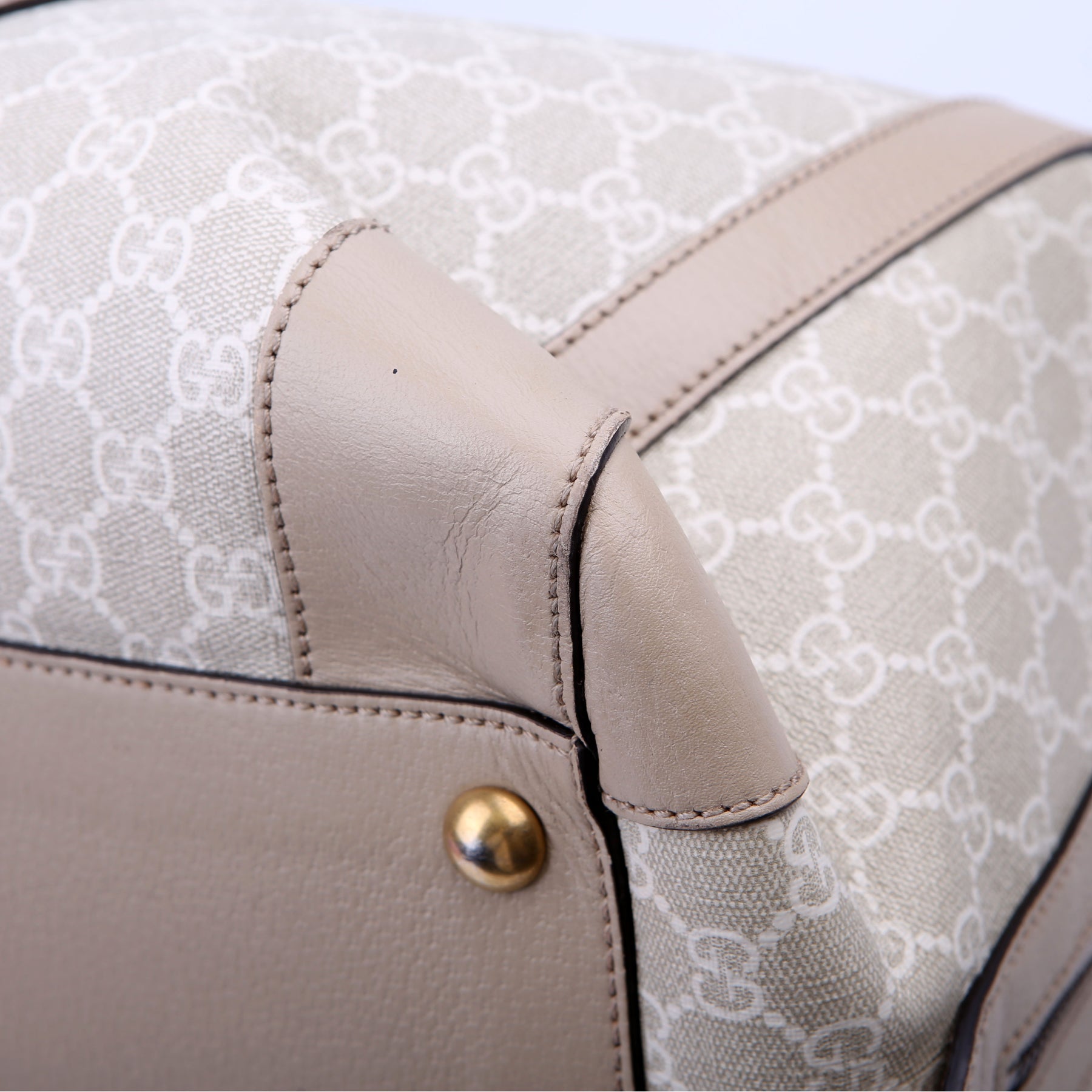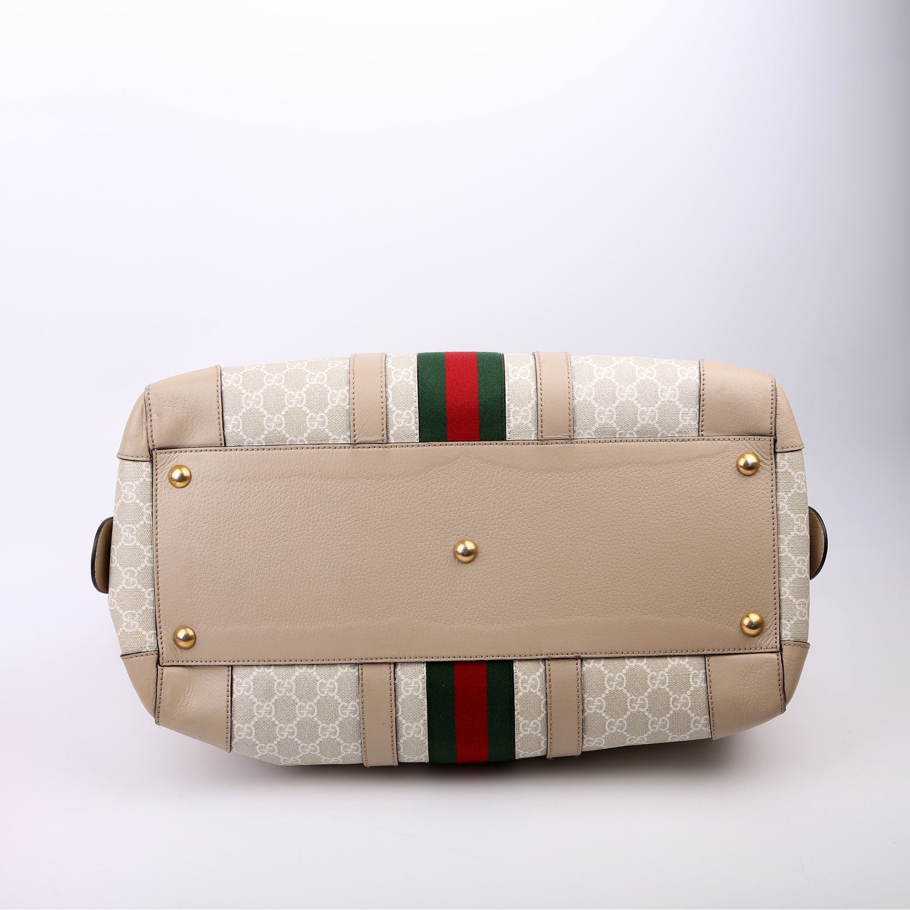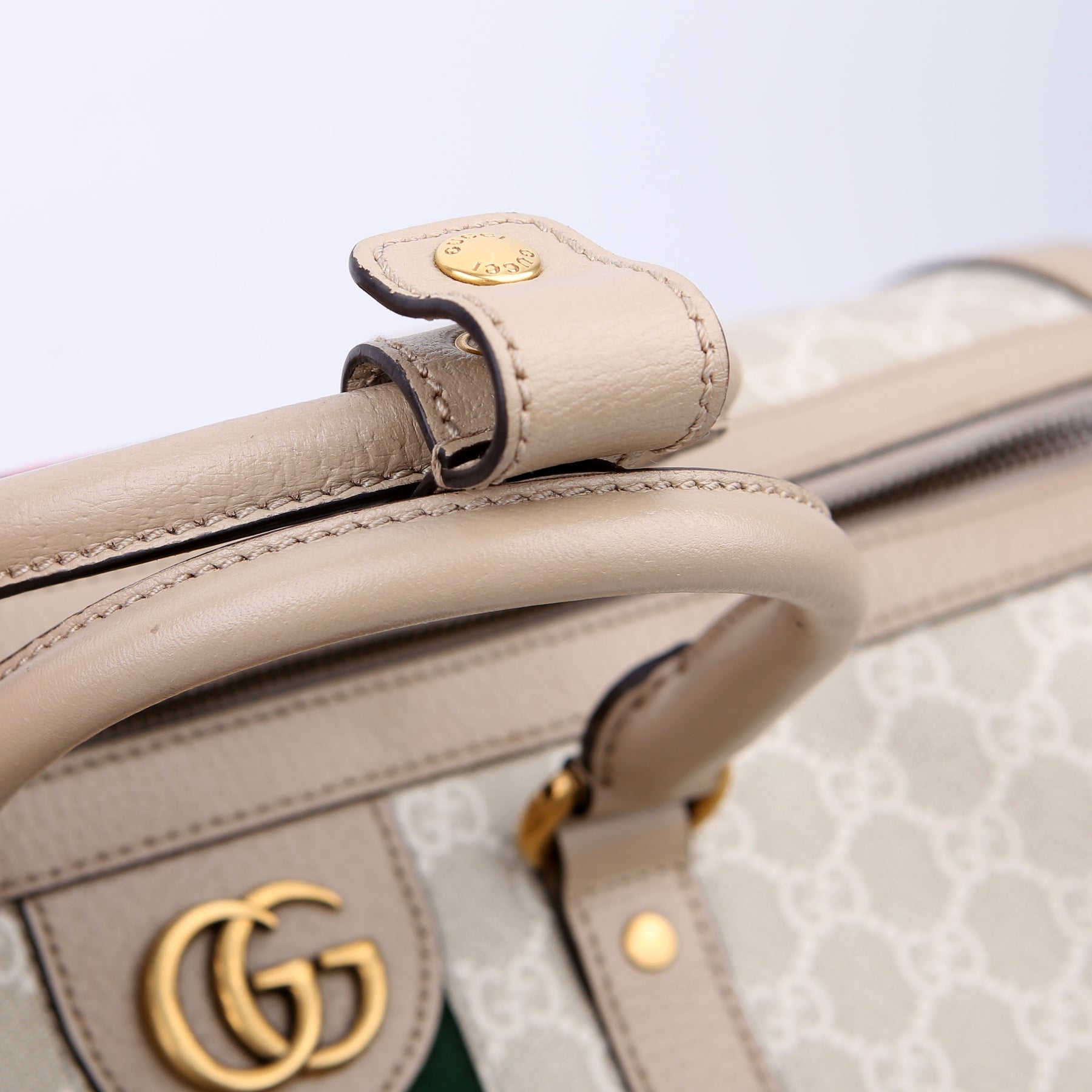 This pre-owned Gucci Savoy Medium Duffle is guaranteed 100% authentic. The exterior is in the classic Gucci GG Supreme coated canvas.