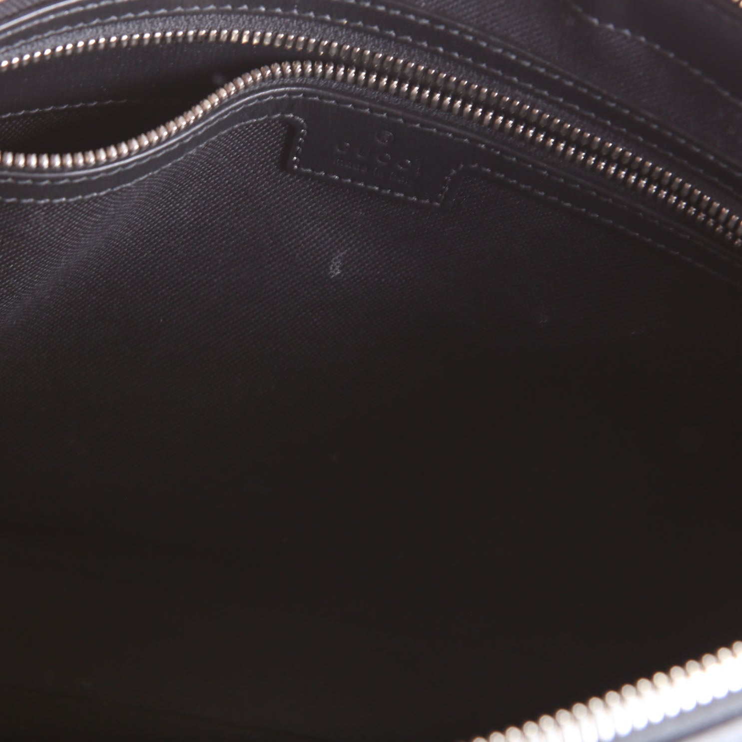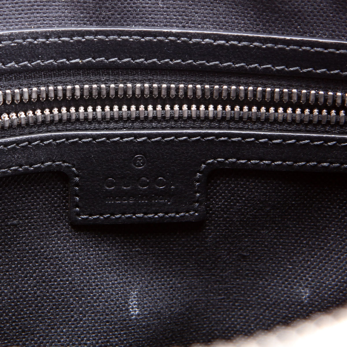 Interior: The interior shows light staining. It features one zip closure pocket.