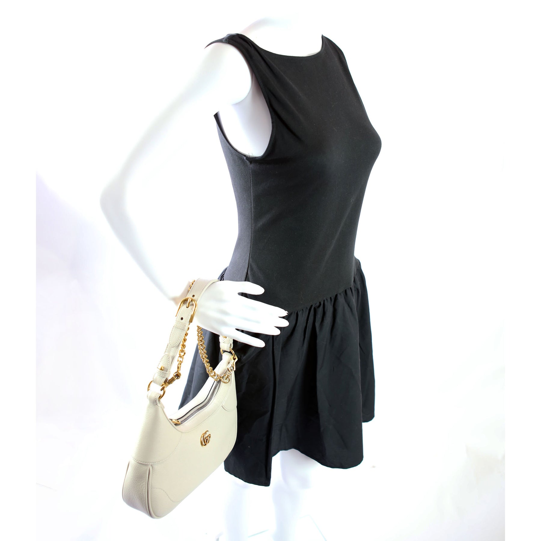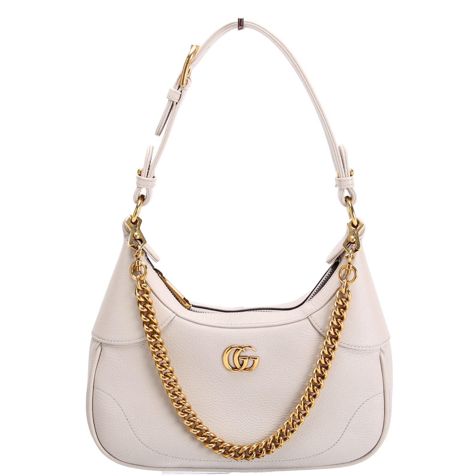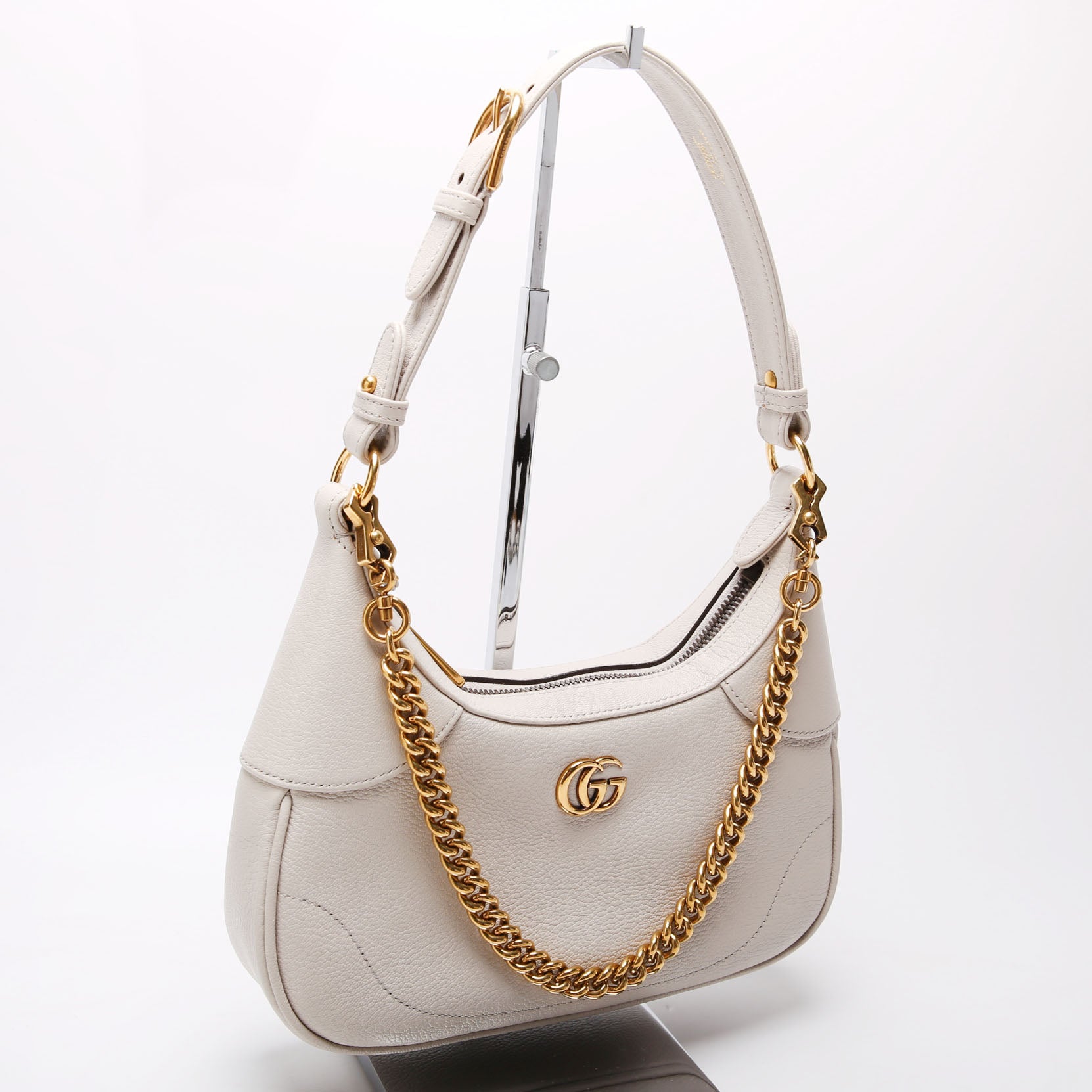 This pre-owned Gucci Aphrodite Leather Small Shoulder Bag  is guaranteed 100% authentic. The exterior is in the classic Gucci Calfskin Leather.