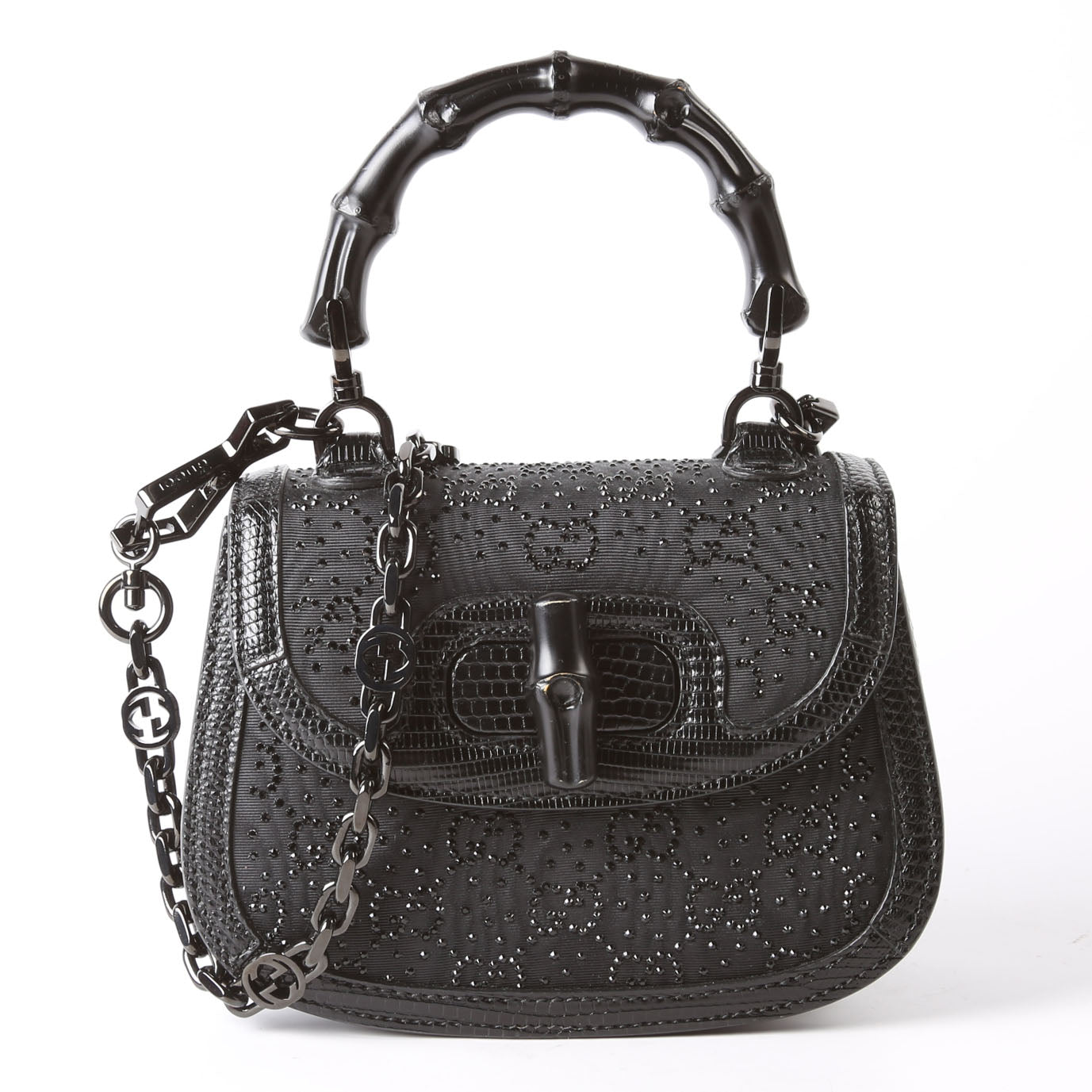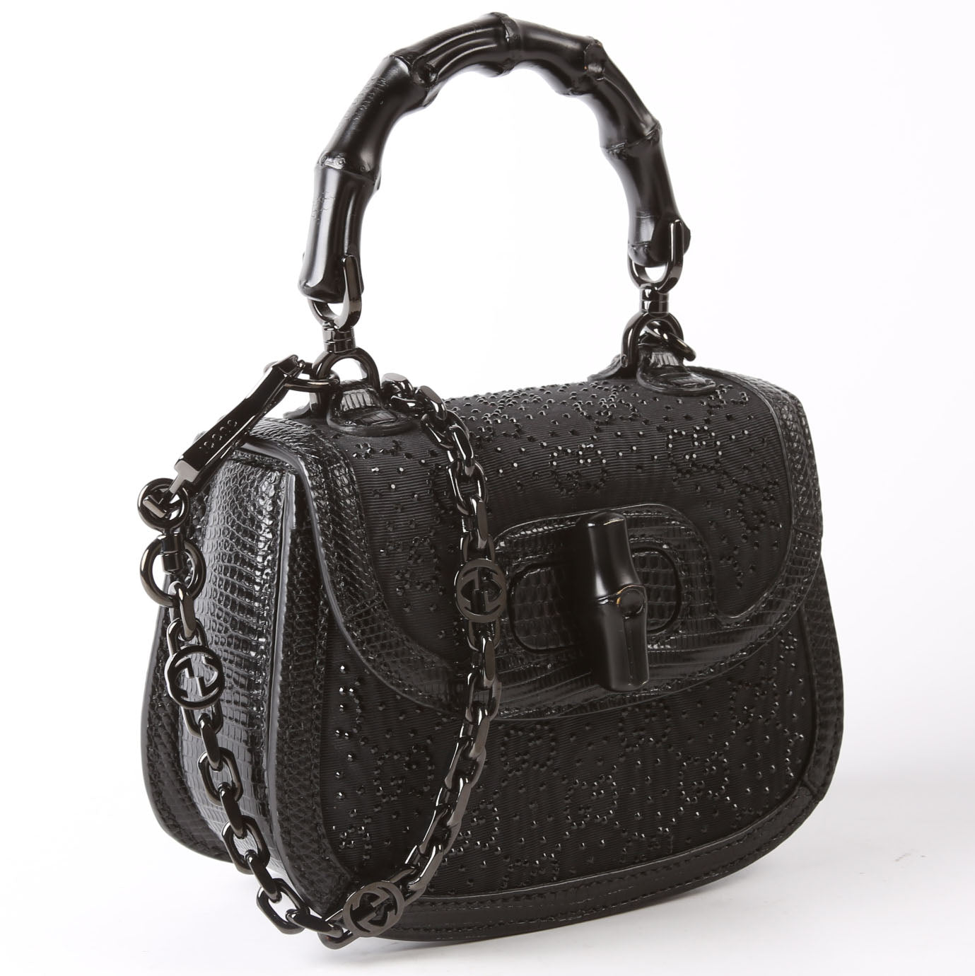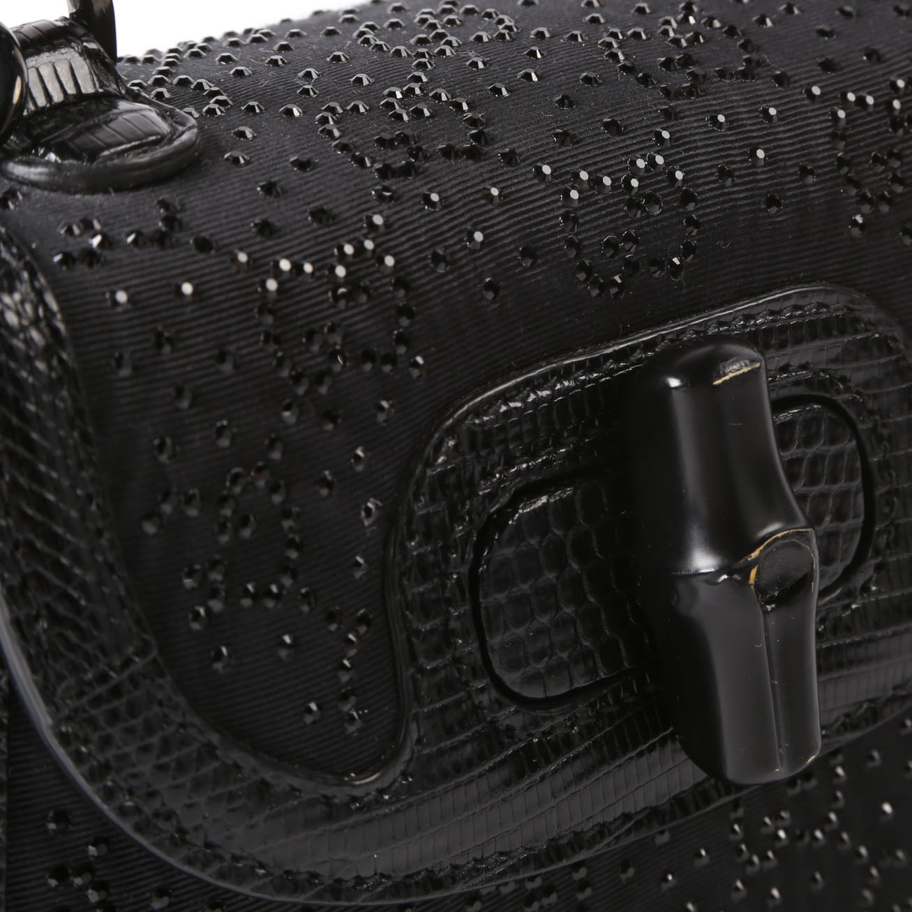 This pre-owned Gucci Bamboo 1947 Top Handle Mini Moire is guaranteed 100% authentic.