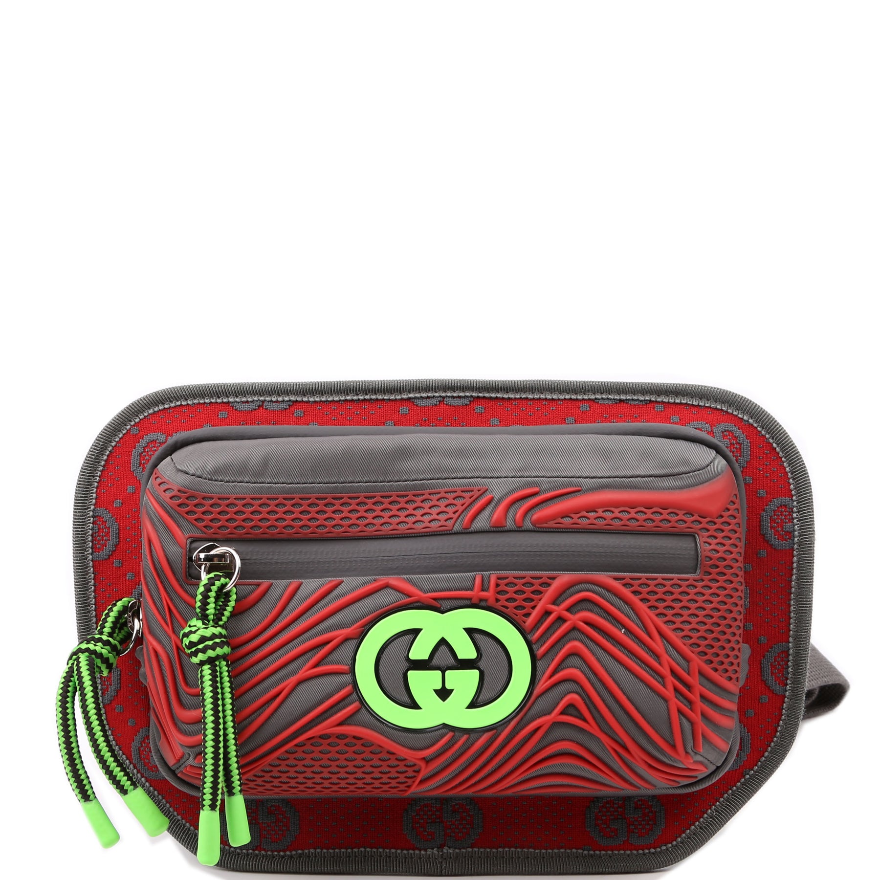 This pre-owned Gucci GG Nylon/Rubber Belt Bag is guaranteed 100% authentic.