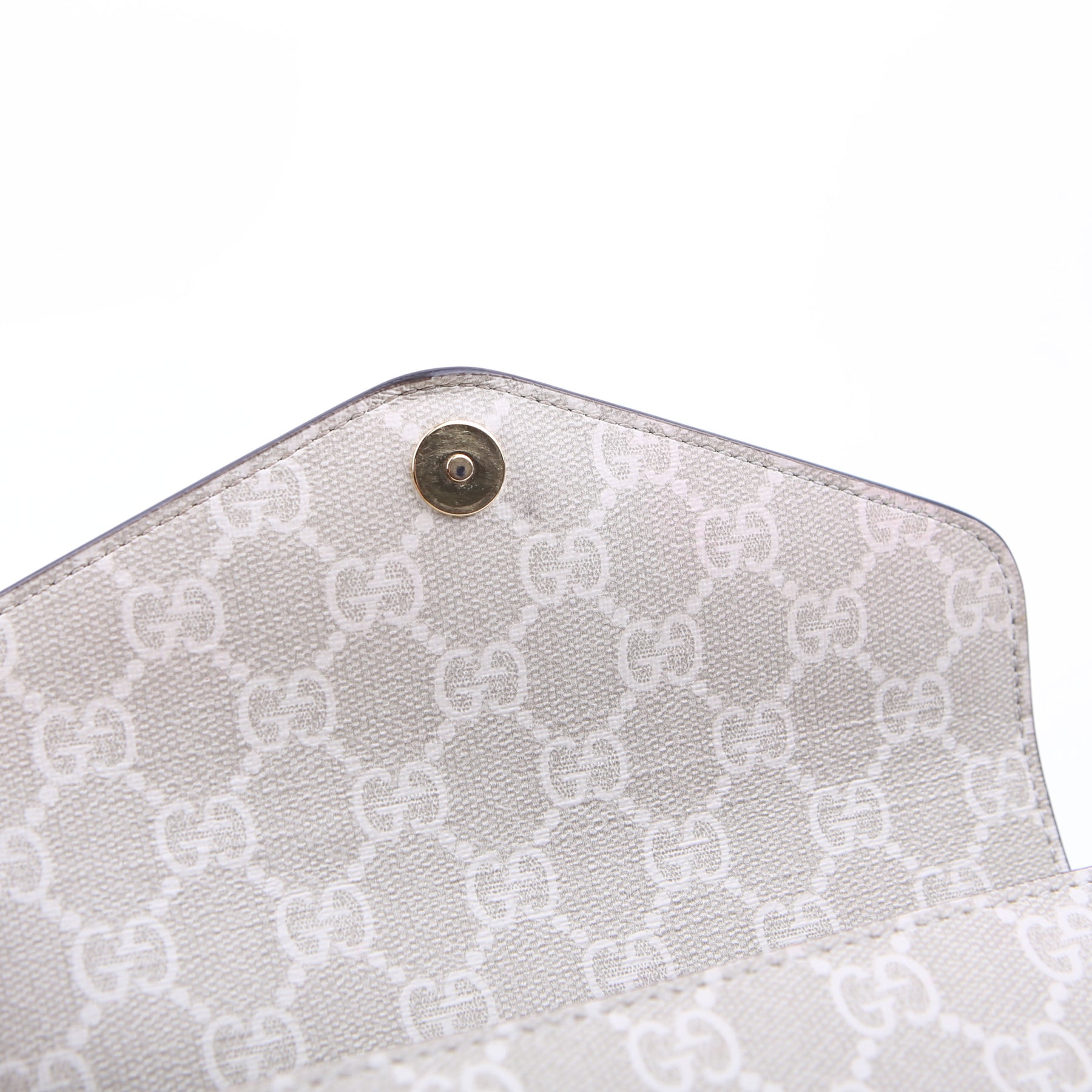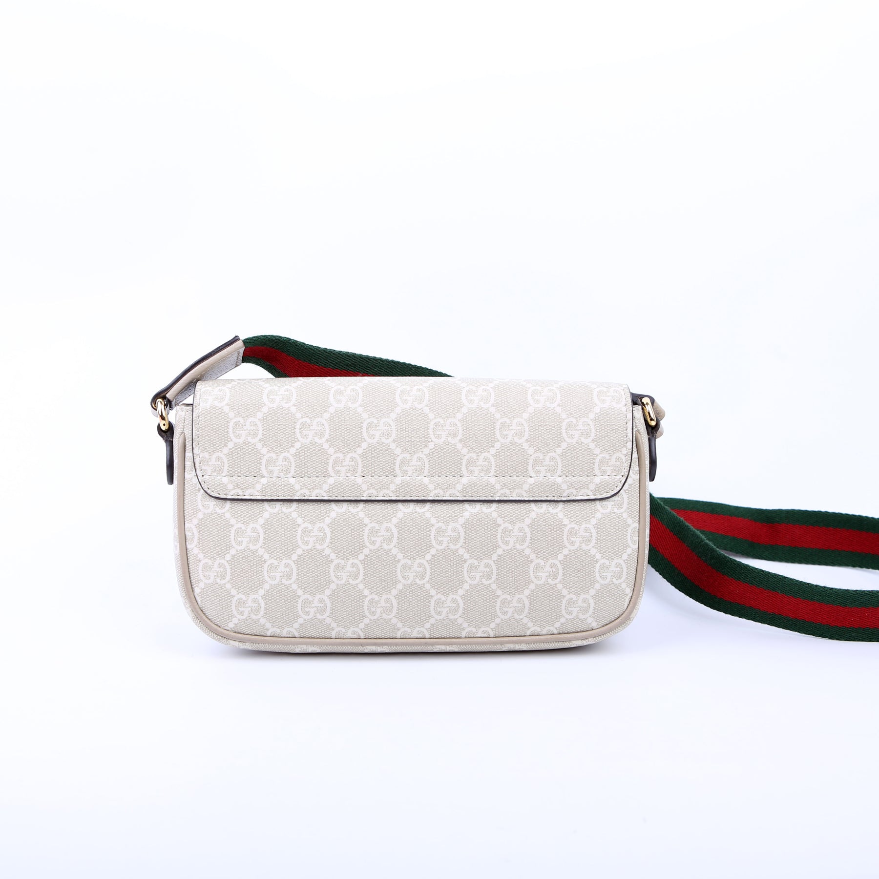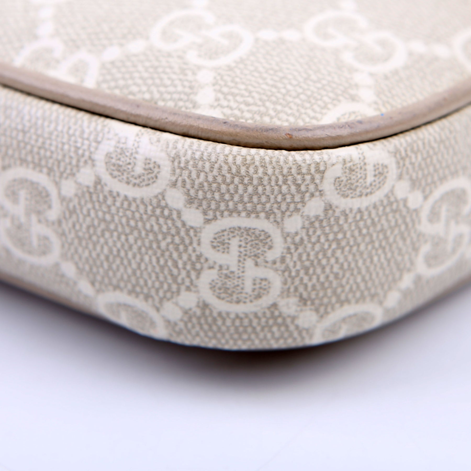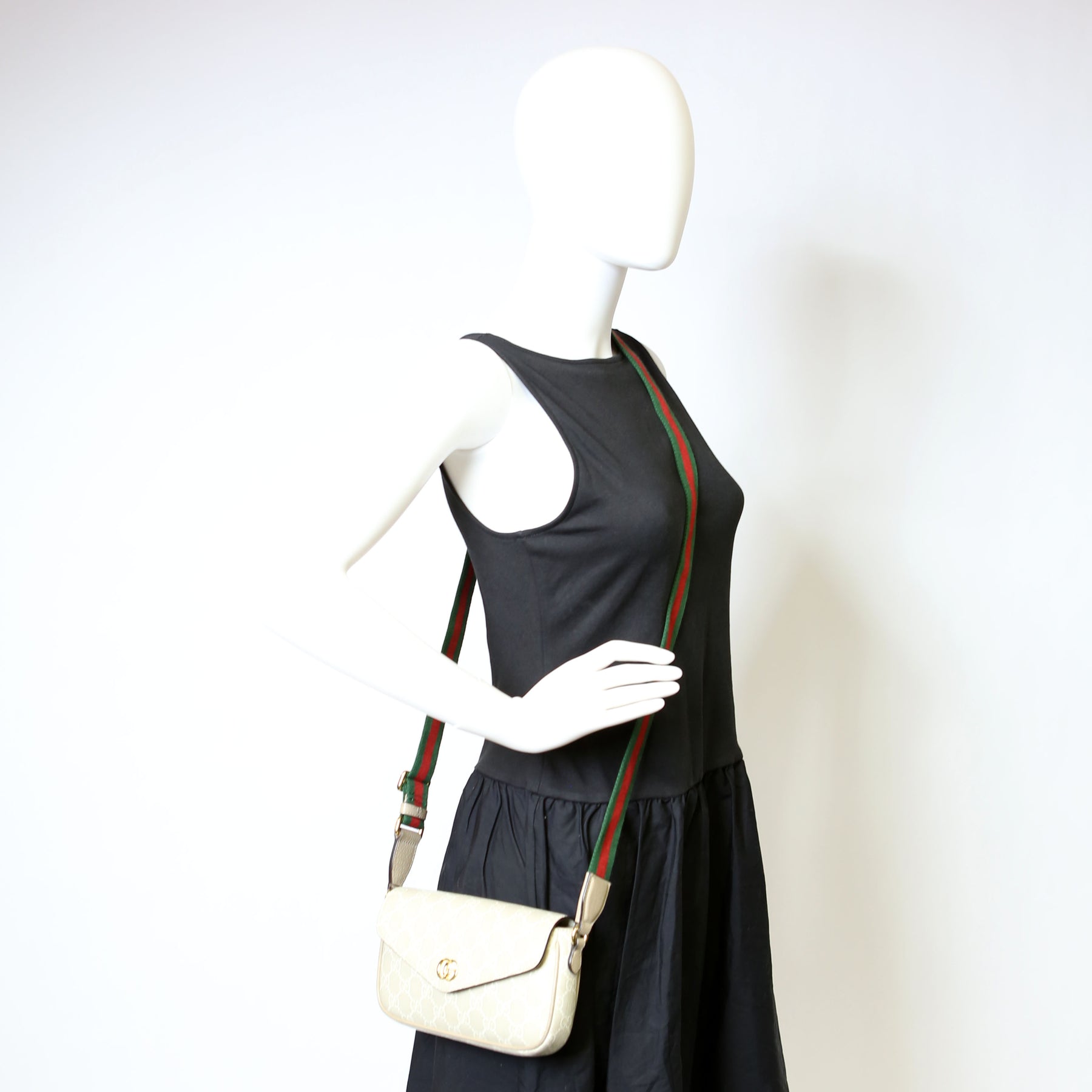 This pre-owned Gucci GG Supreme Ophidia Mini Bag is guaranteed 100% authentic. The exterior is in the classic Gucci GG Supreme coated canvas.
