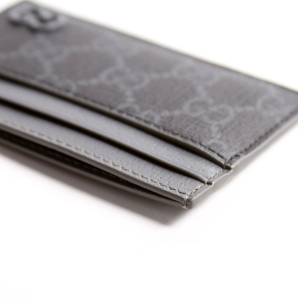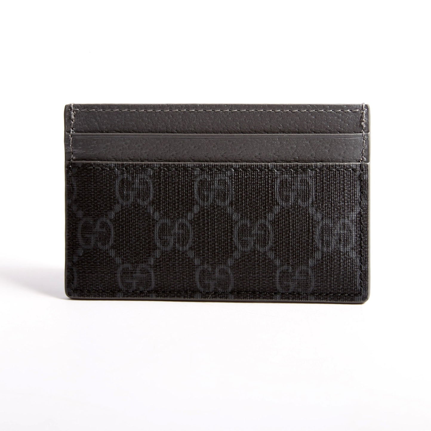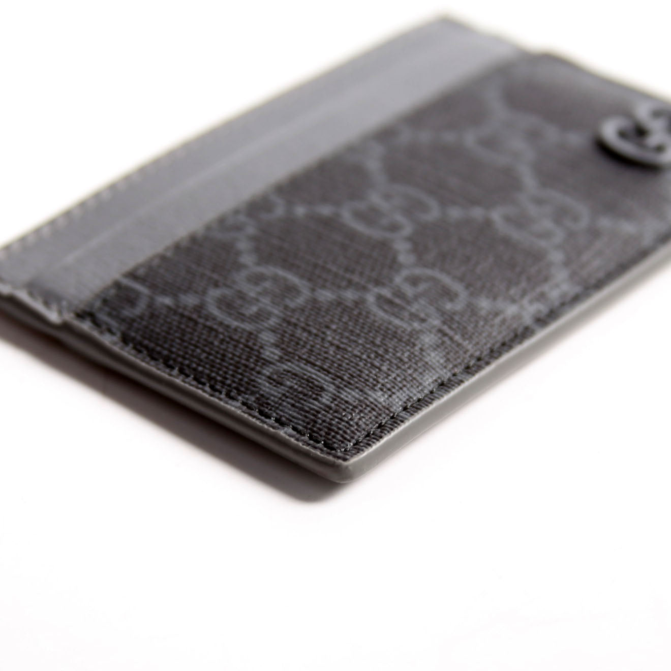 This pre-owned Gucci Card Case is guaranteed 100% authentic. The exterior is in the classic Gucci GG Supreme coated canvas.