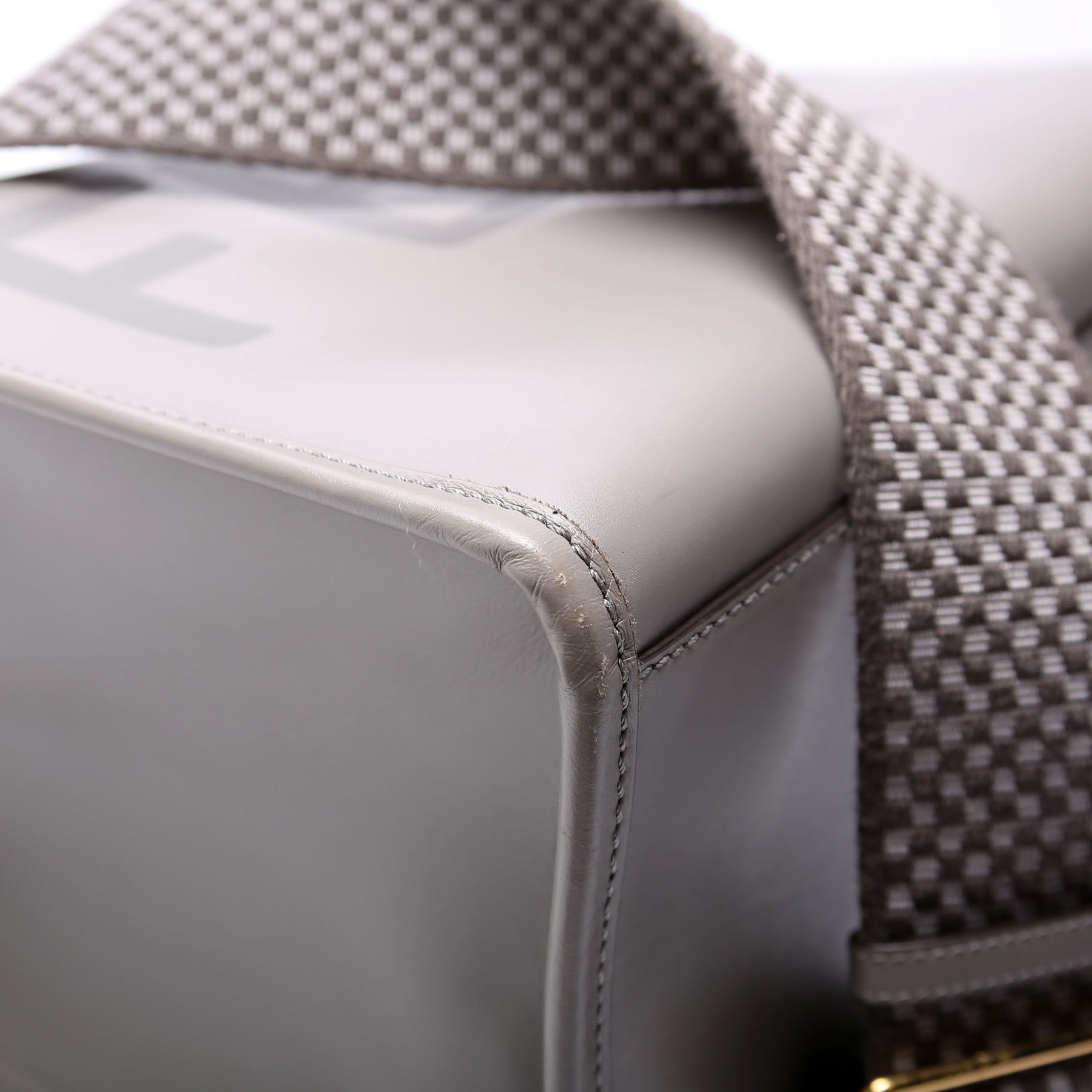Exterior: The exterior leather has light scratches throughout but is free of any rips or tears. The corners and edges show minor wear.
