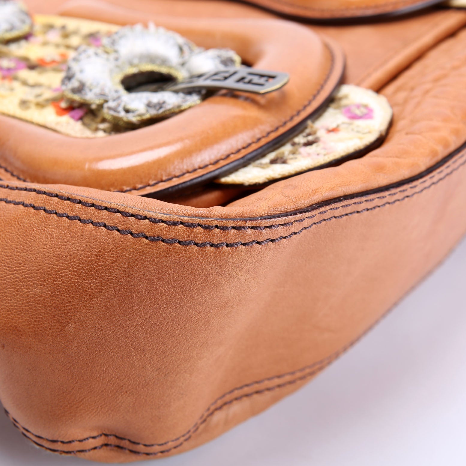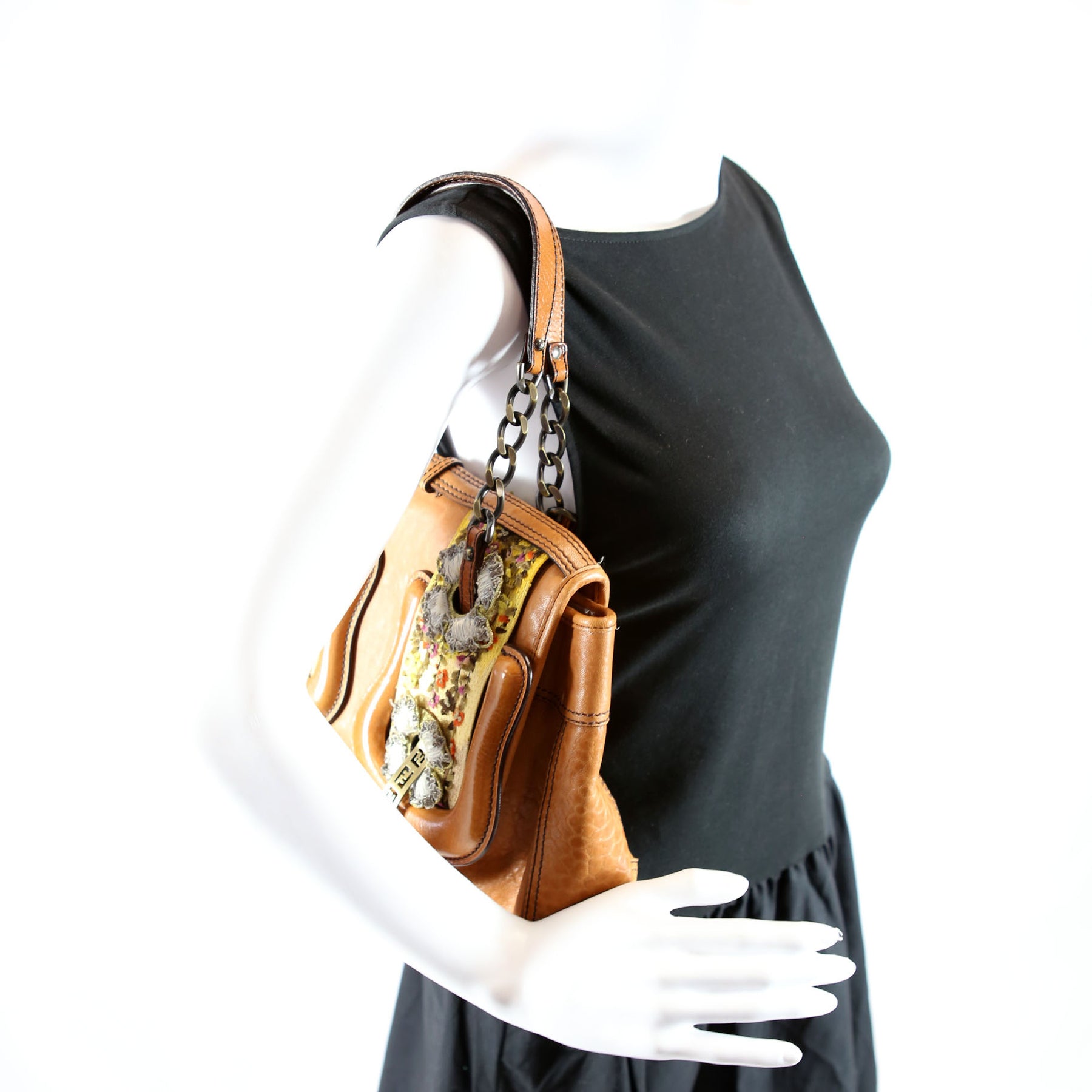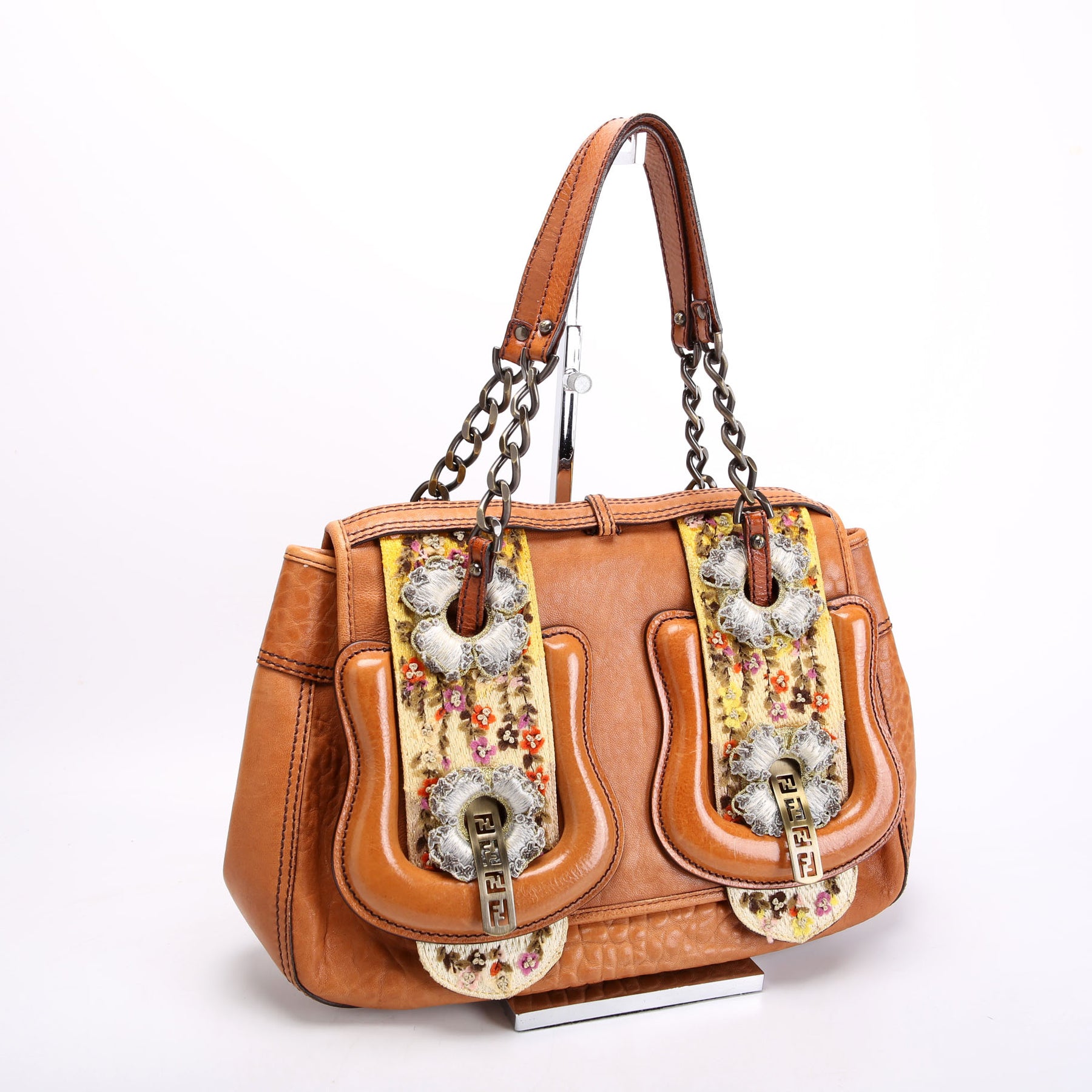 This pre-owned Fendi B Bag Leather Embroidered is guaranteed 100% authentic. The exterior is in the classic Fendi Leather.