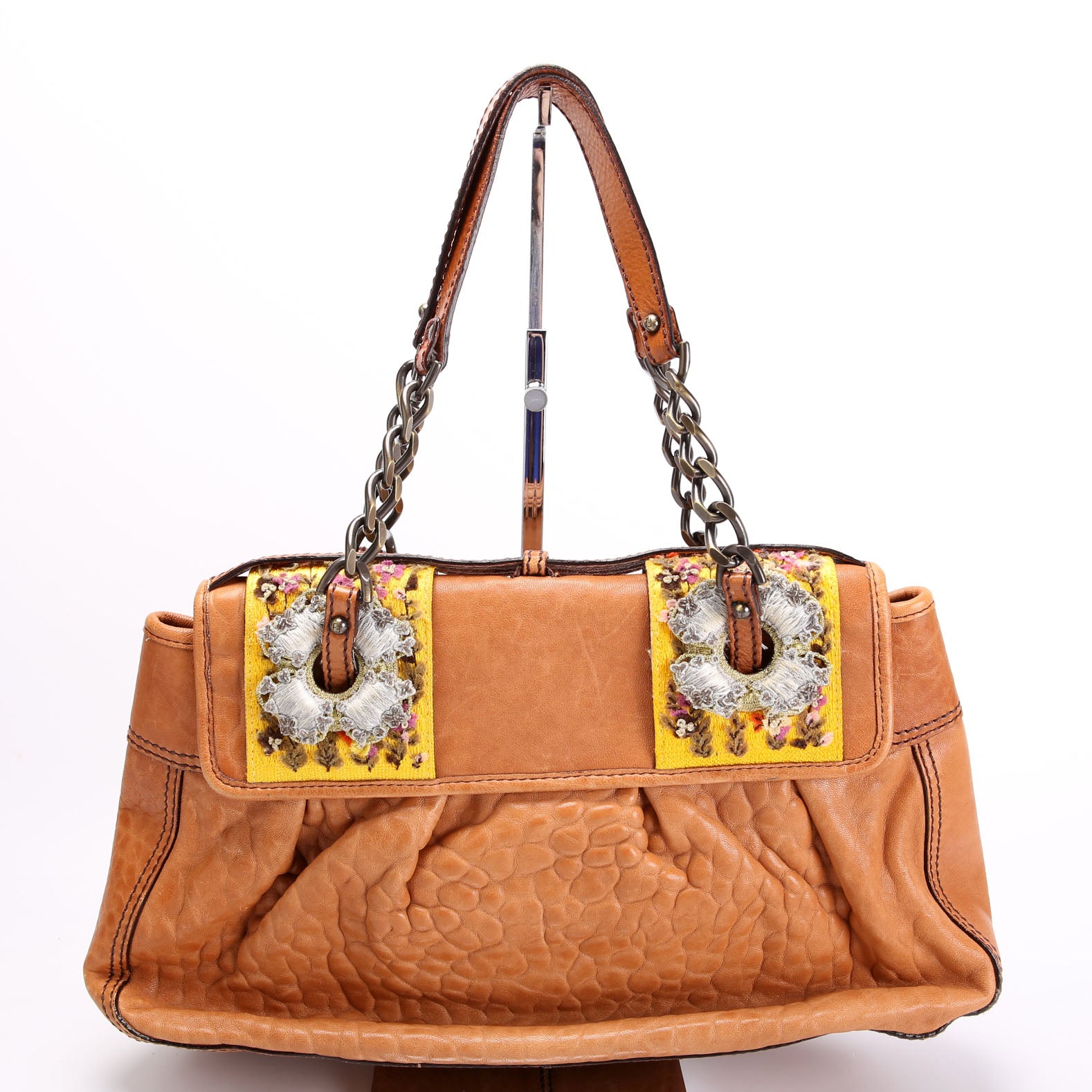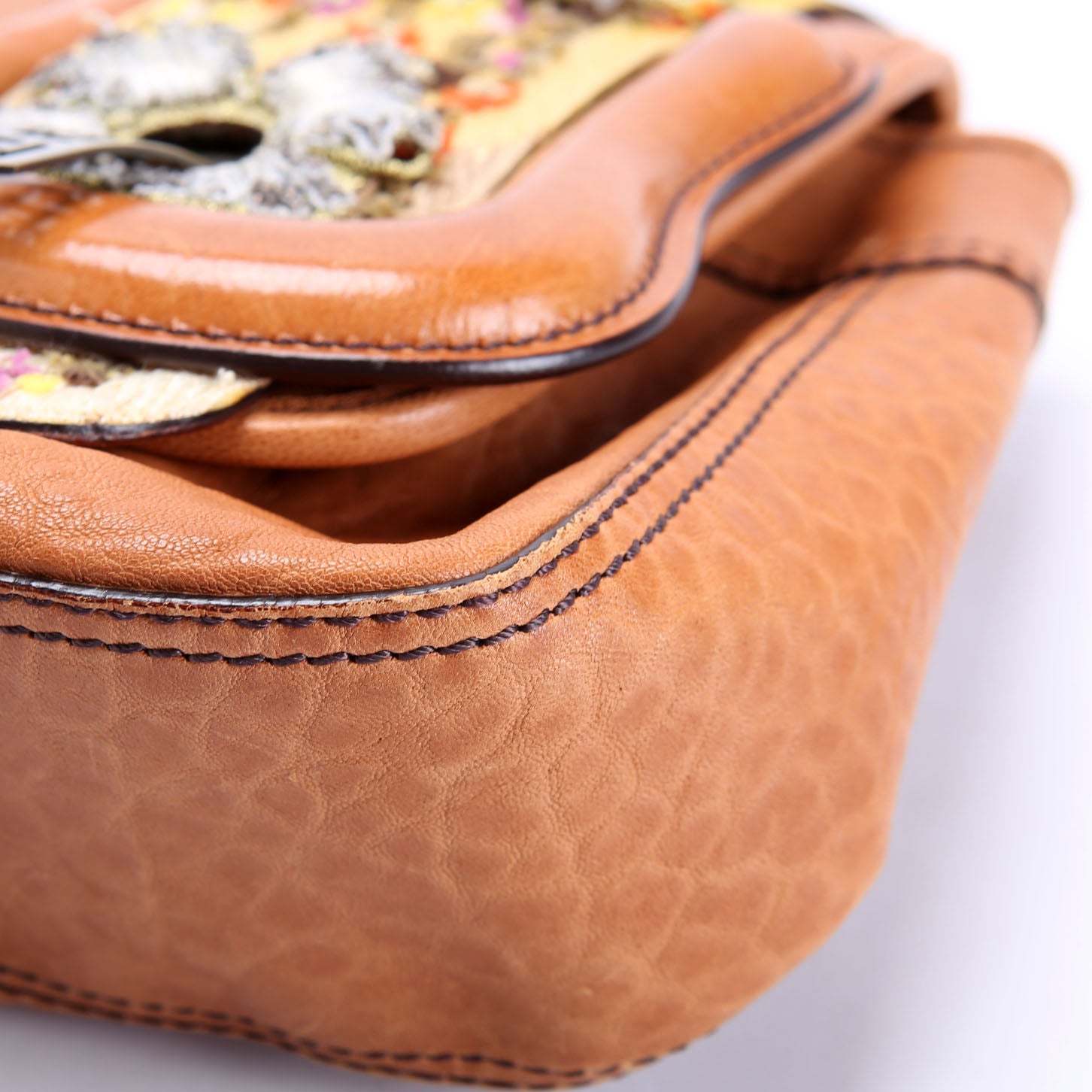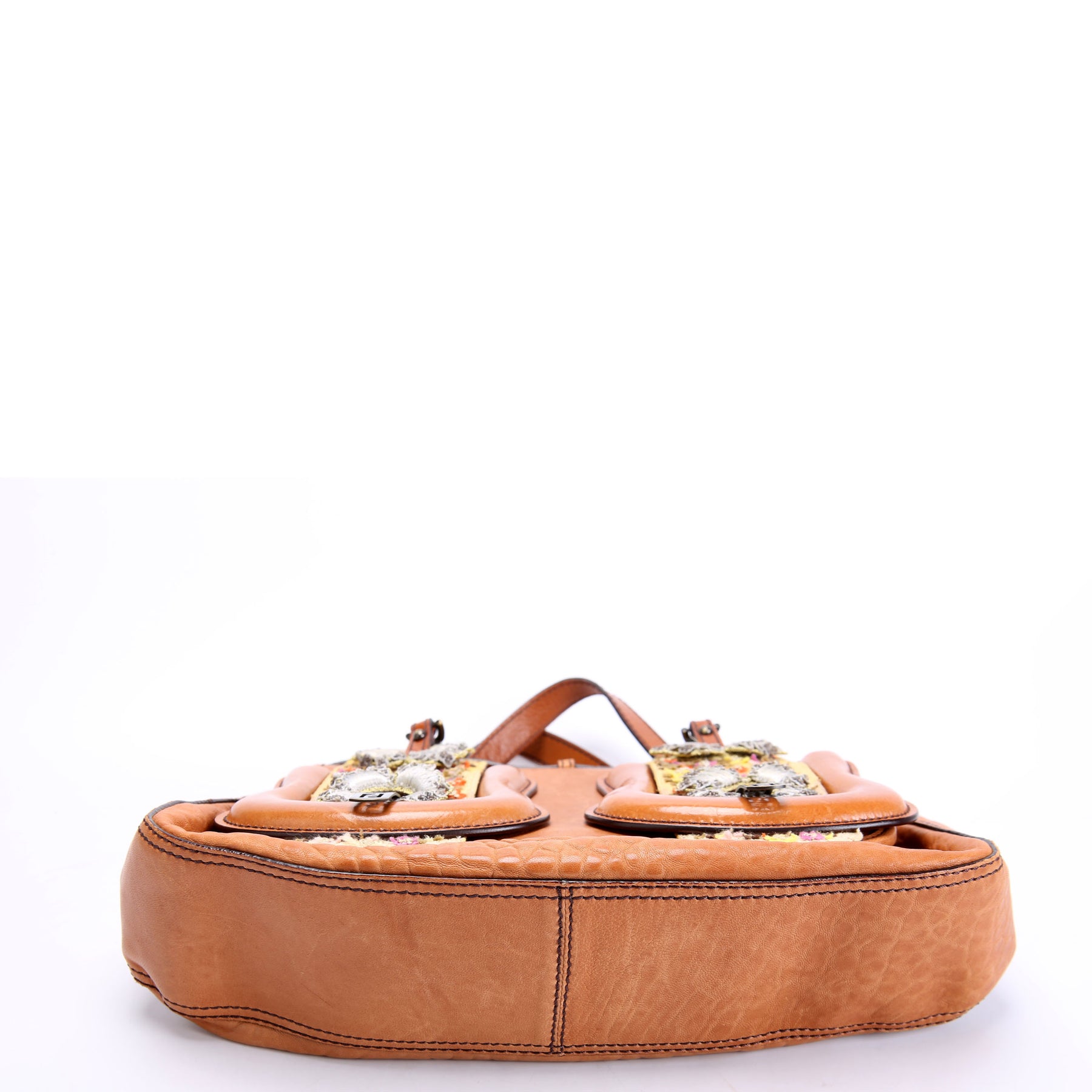 8BN165 B Bag Leather Embroidered Brown